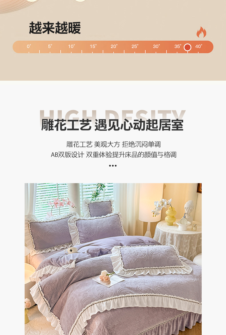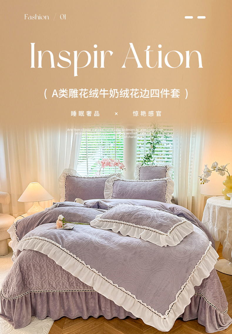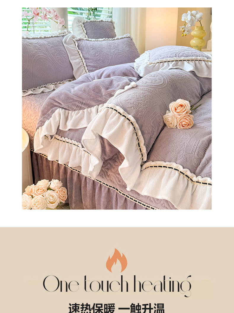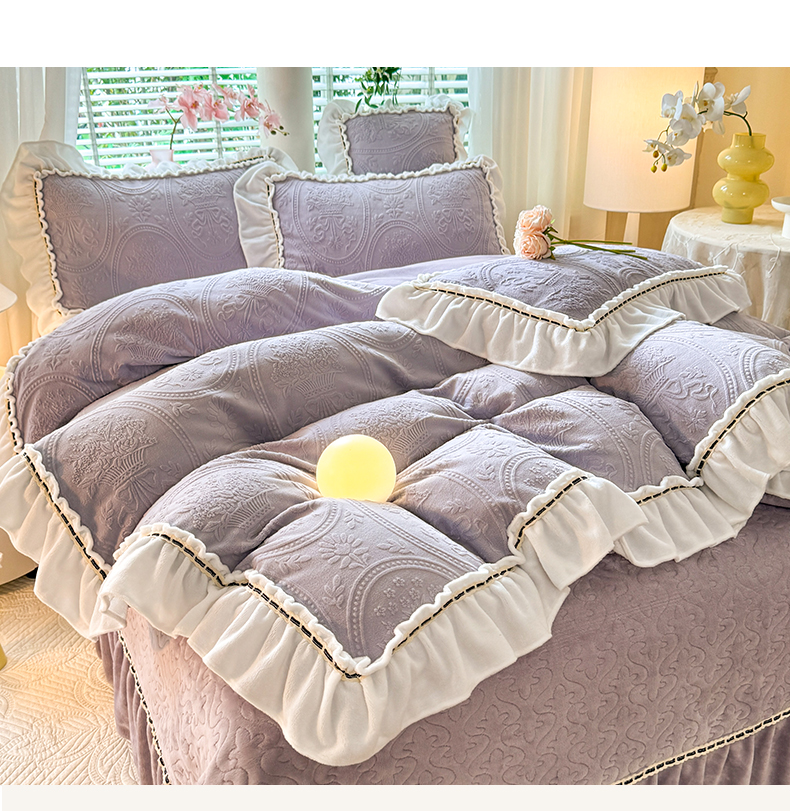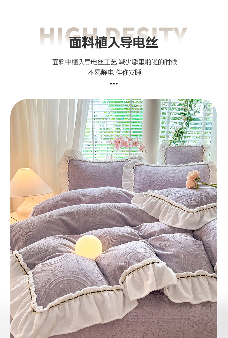 商品名称:花香四季家纺 2025新款A类雕花绒夹棉床盖款四件套-浪漫花语 浪漫花语-优雅紫