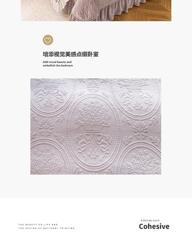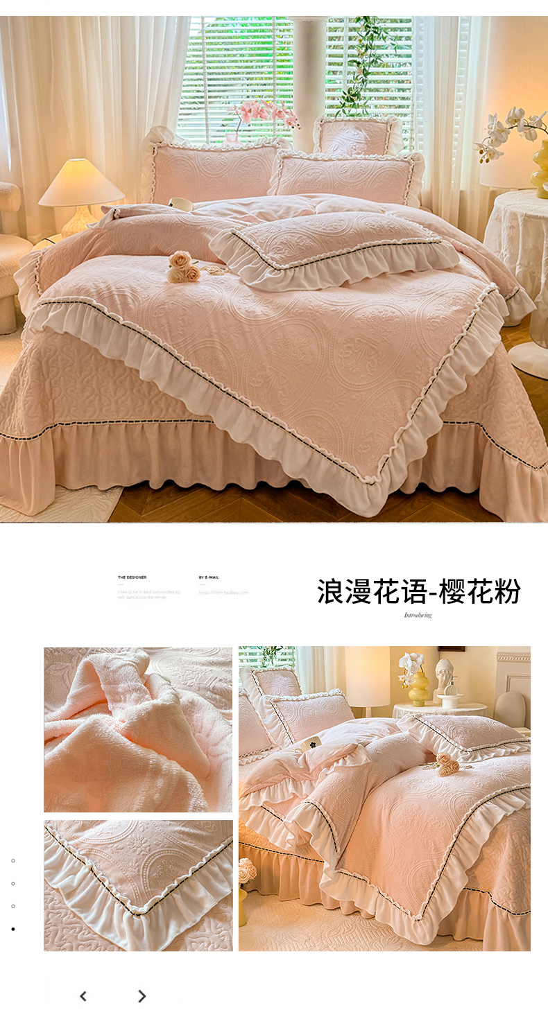 (总)花香四季家纺 2025新款雕花绒牛奶绒夹棉床盖款四件套系列-浪漫情缘,浪漫情缘-粉色,浪漫情缘-米白