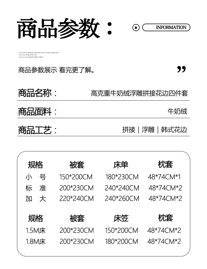 商品名称:艾米家居 2025秋冬新款浮雕牛奶绒花边四件套 白色