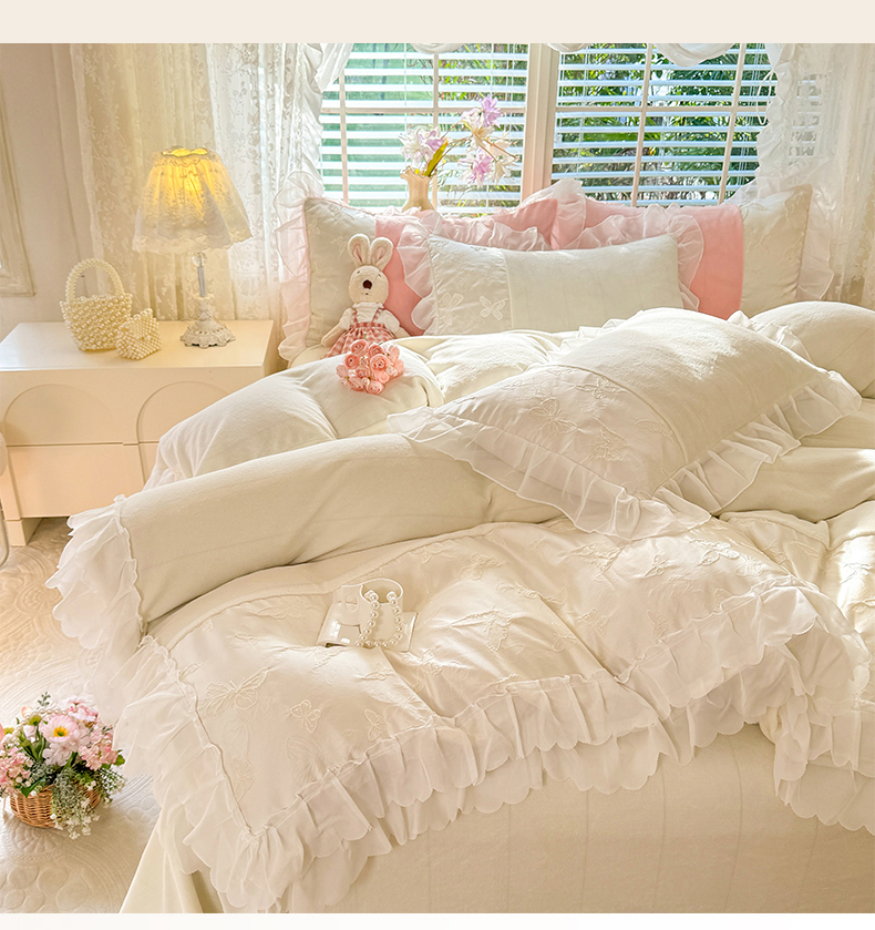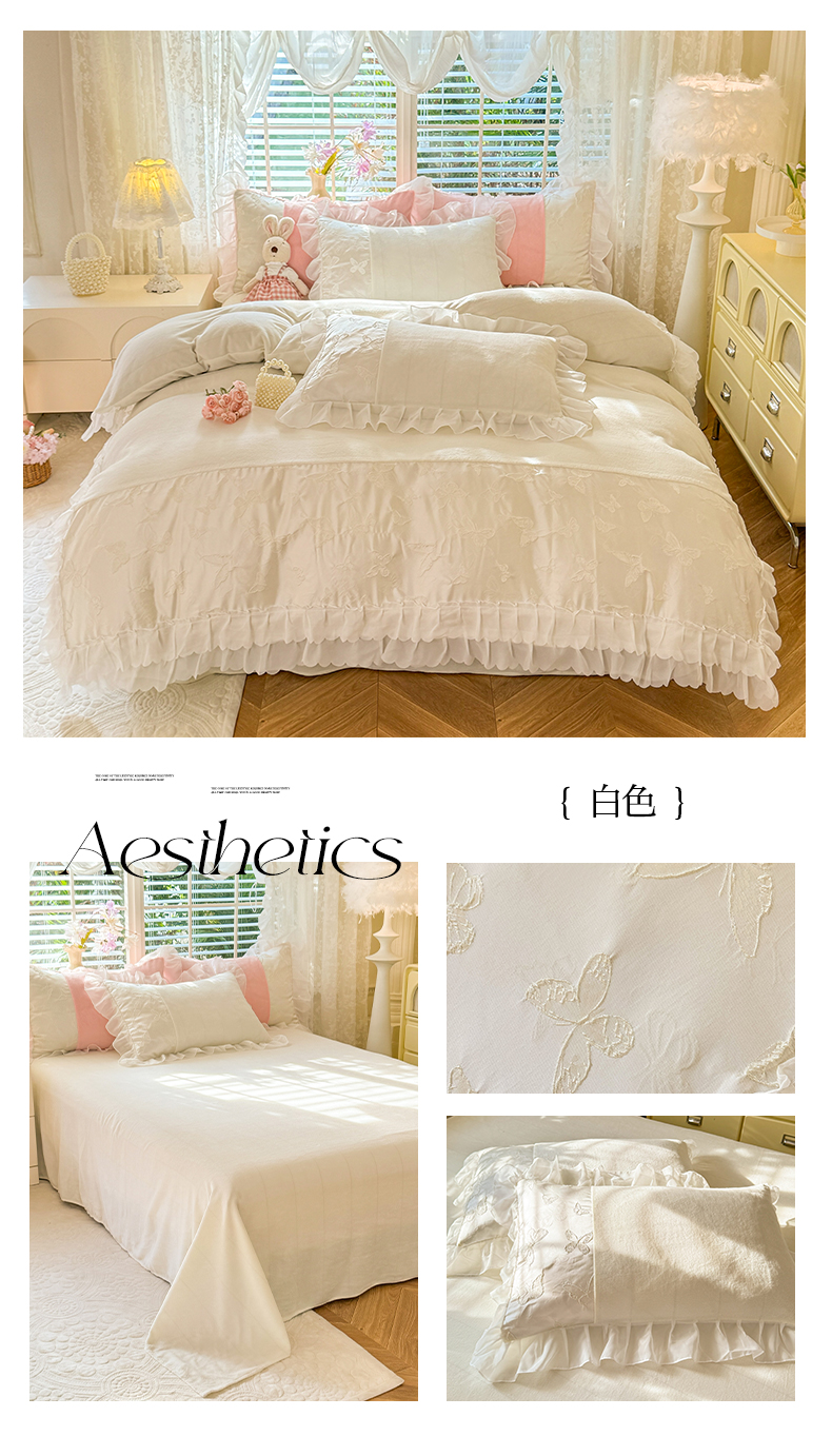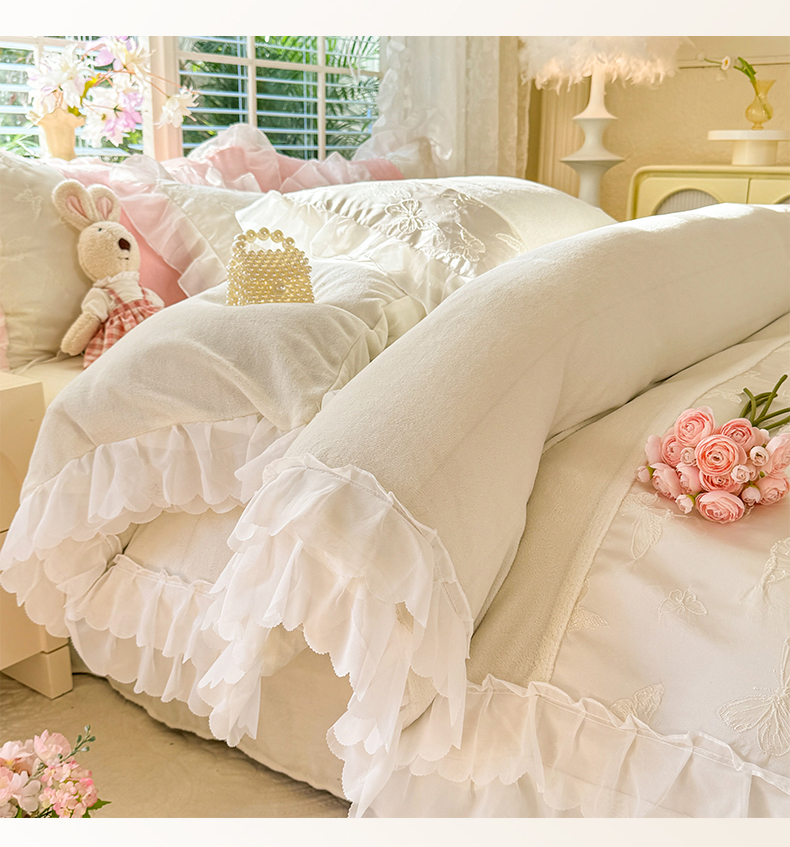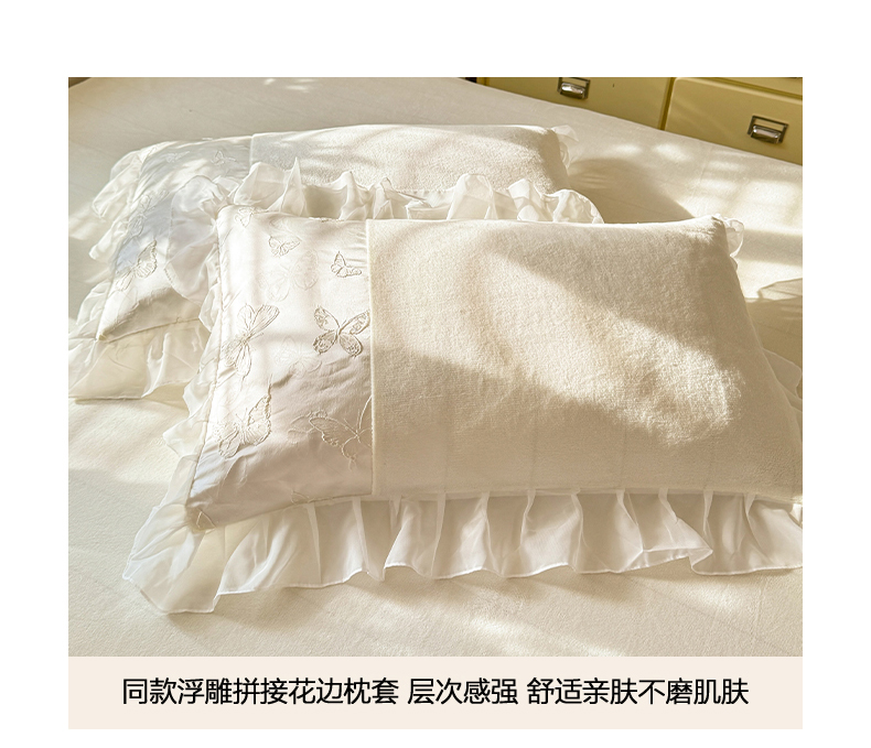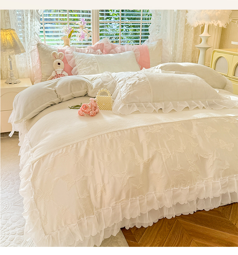 艾米家居 2025秋冬新款浮雕牛奶绒花边四件套 白色