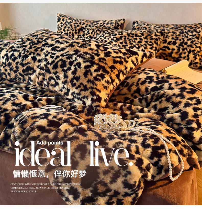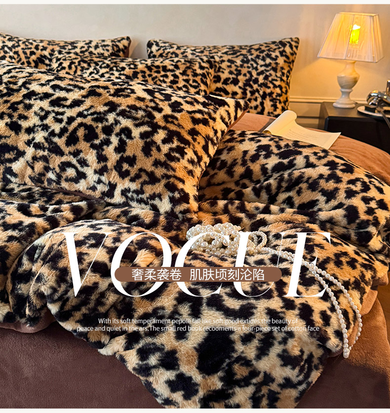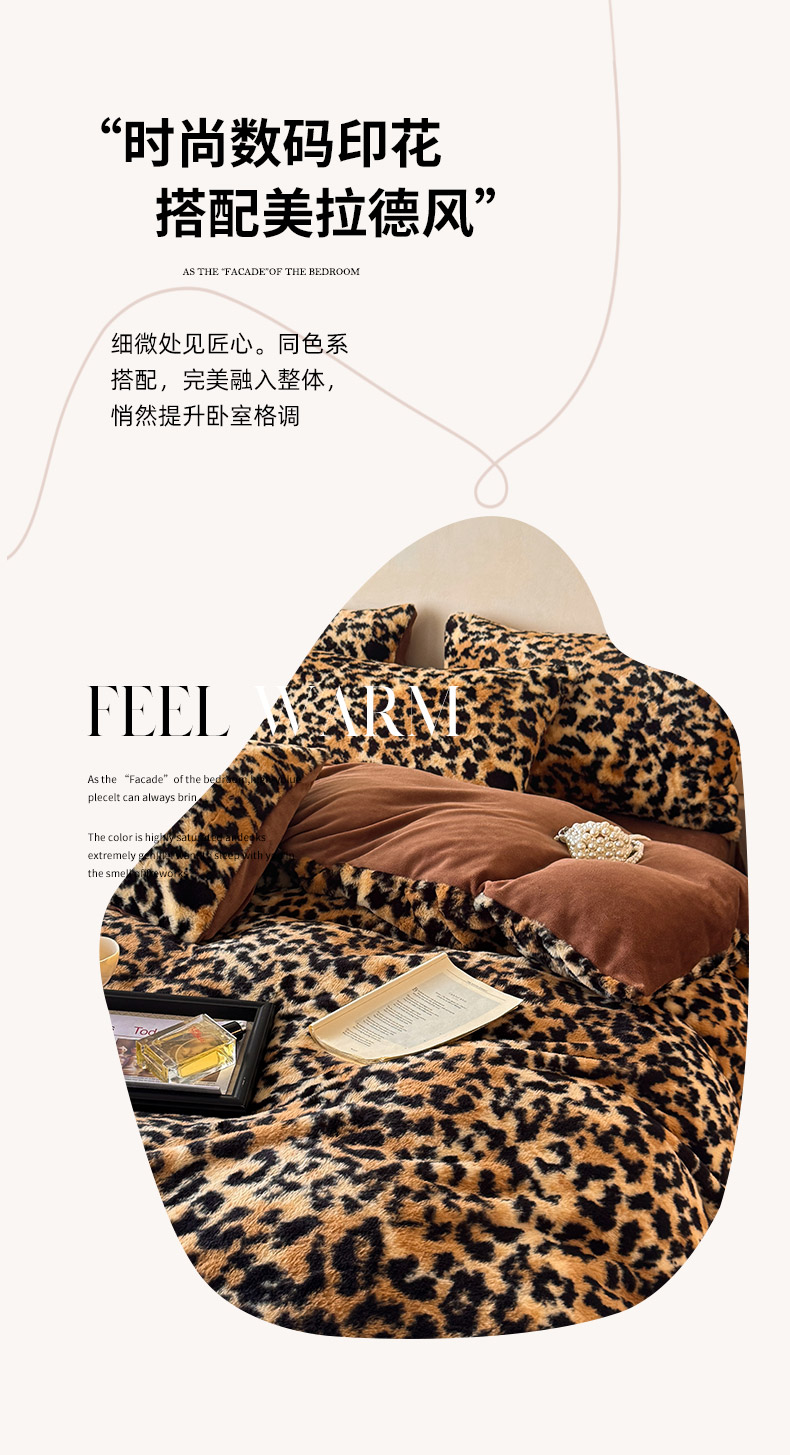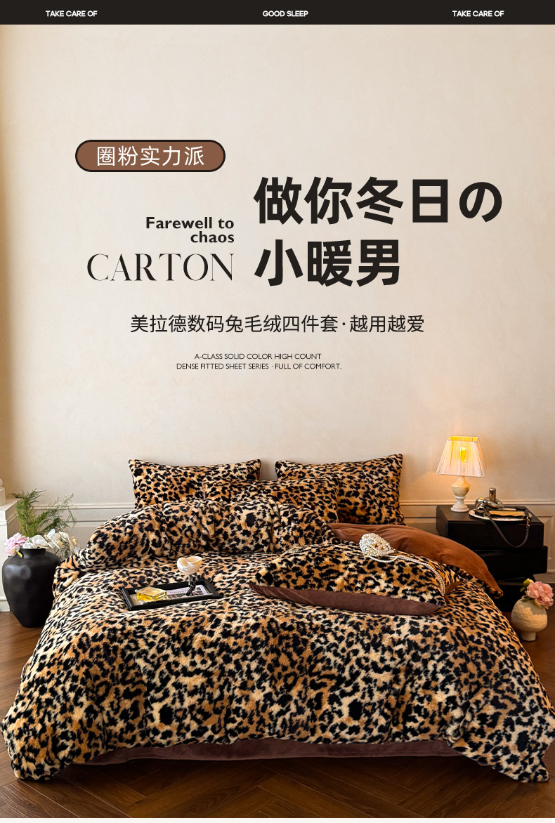 商品名称:吾诺家居2025新款美拉德260克兔毛四件套数码四件套牛奶绒四件套 经典豹纹