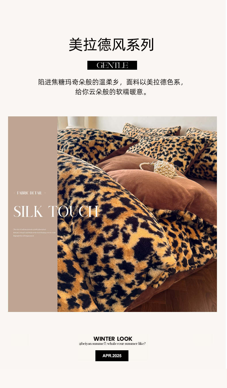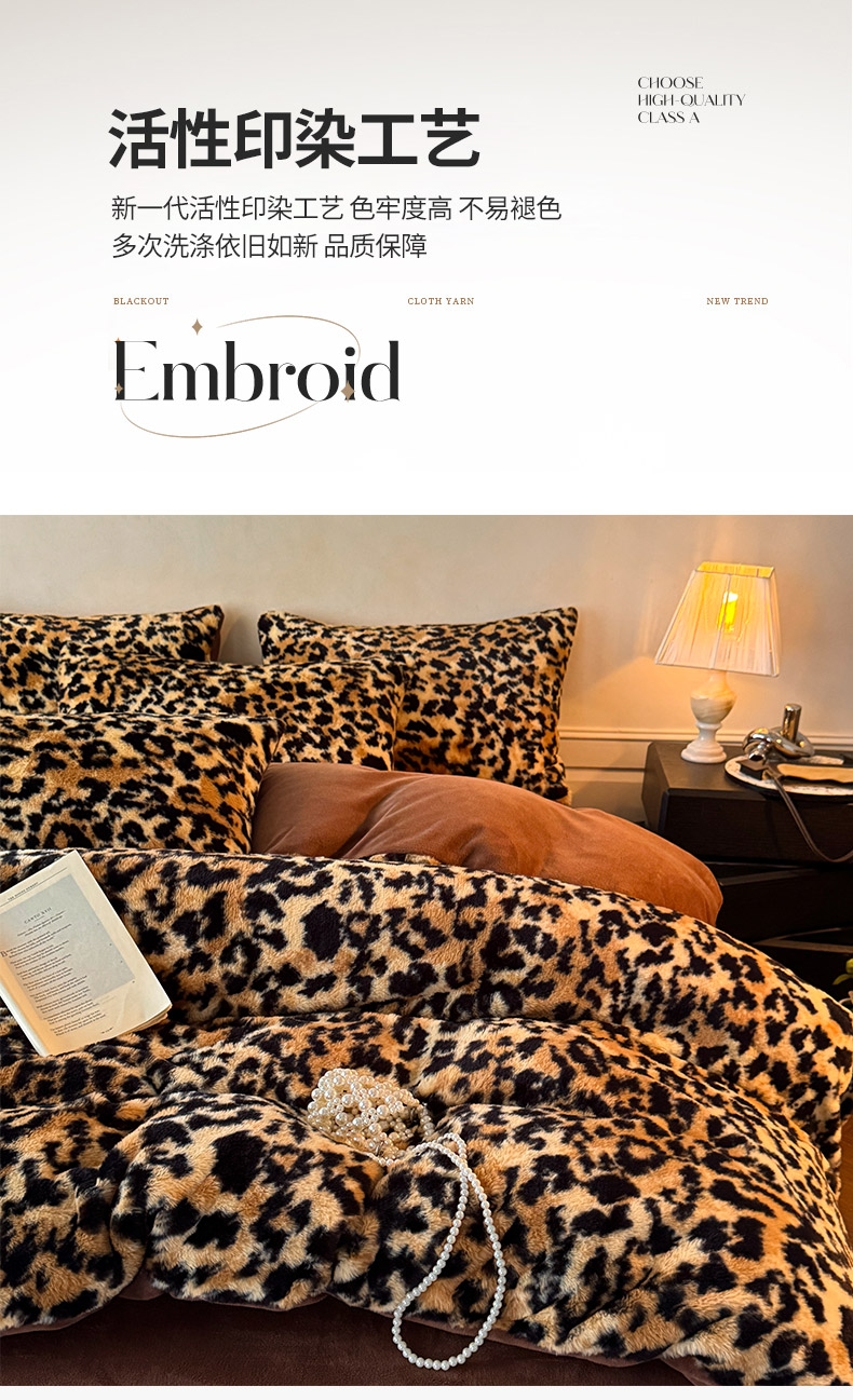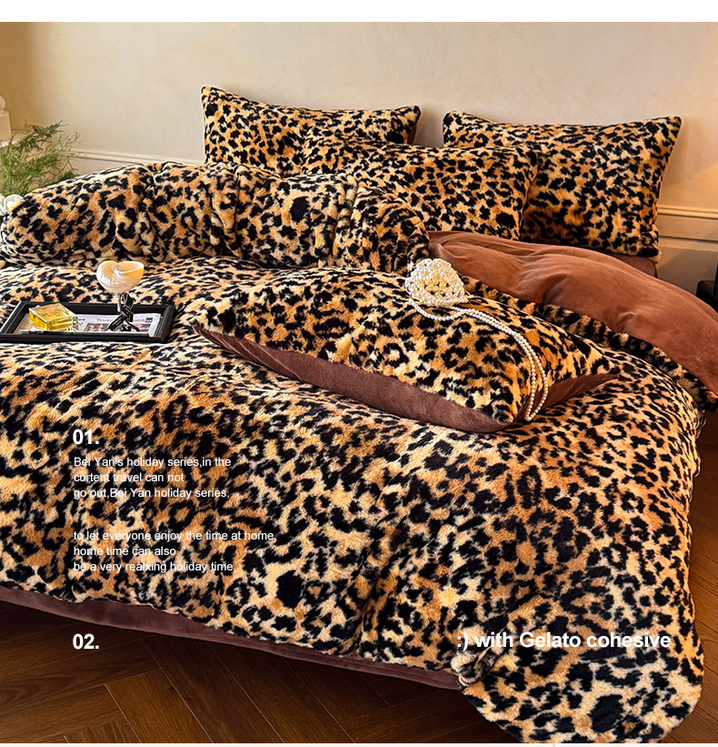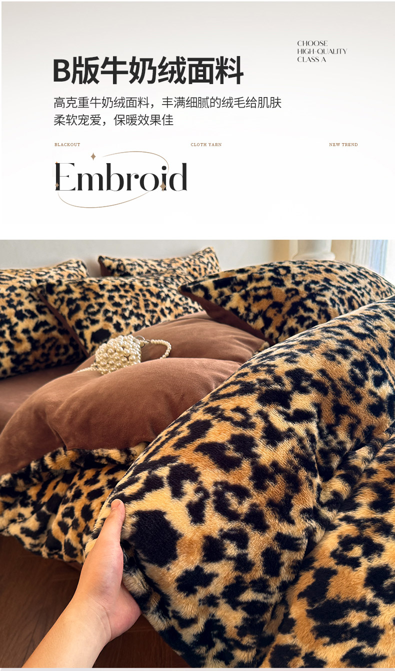 商品名称:吾诺家居2025新款美拉德260克兔毛四件套数码四件套牛奶绒四件套 经典豹纹