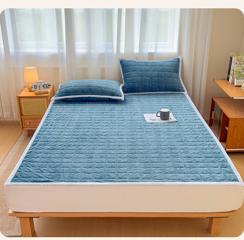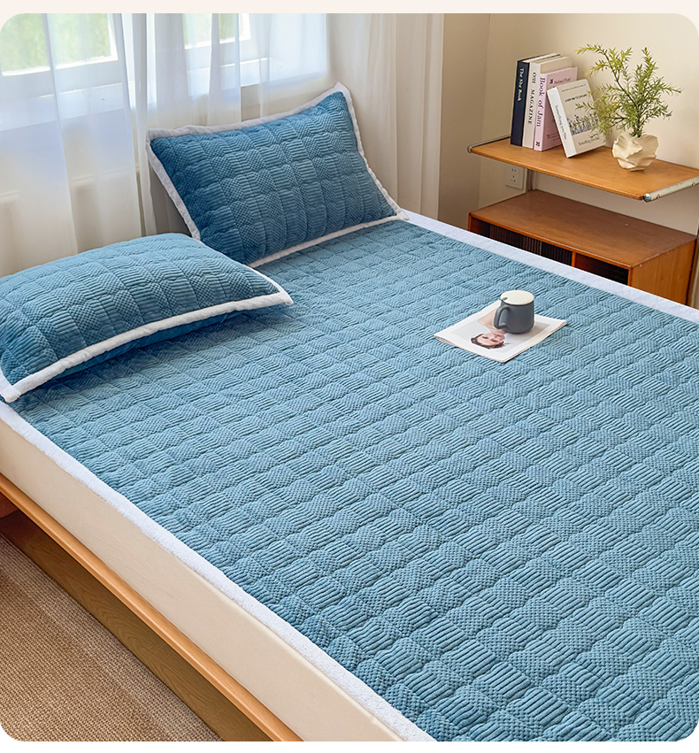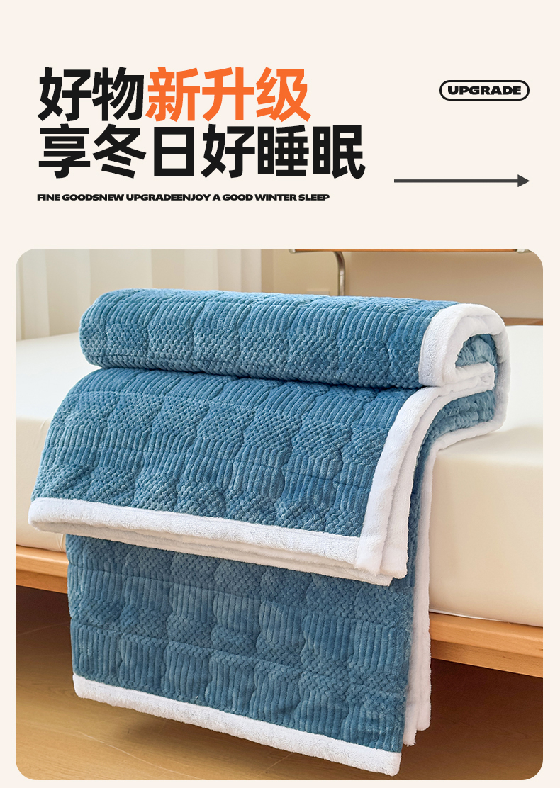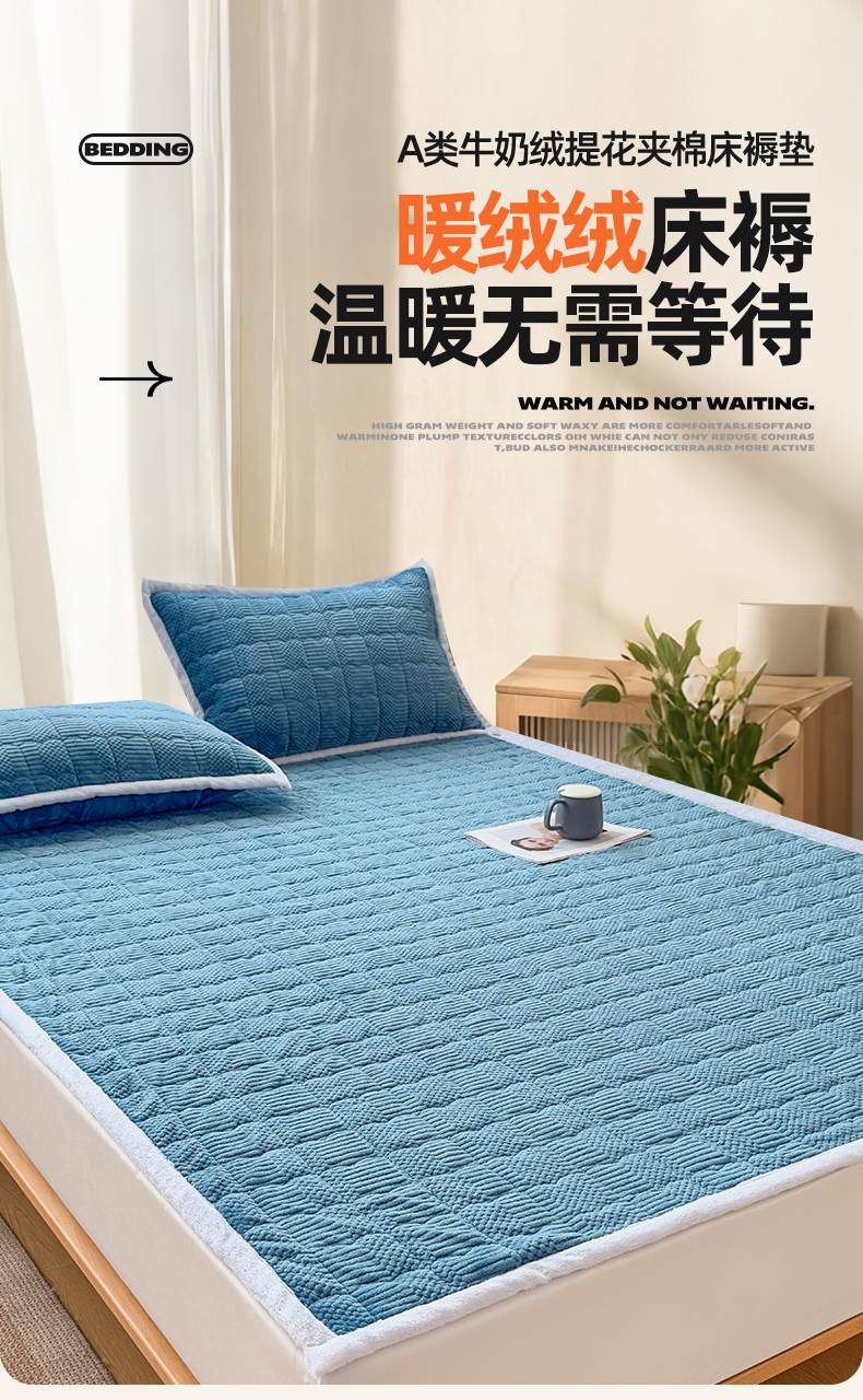 • 91家纺网 家纺一手货源 找家纺 恒爱家纺 2025新款牛奶绒提花床垫床褥 宾利蓝