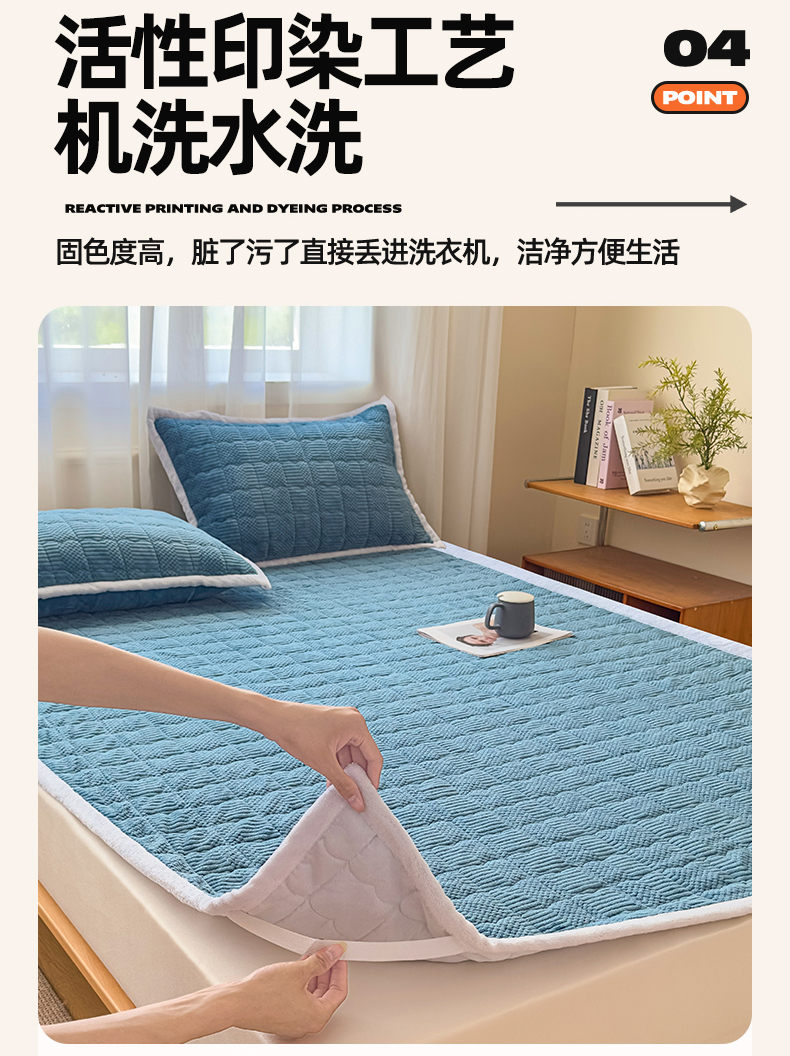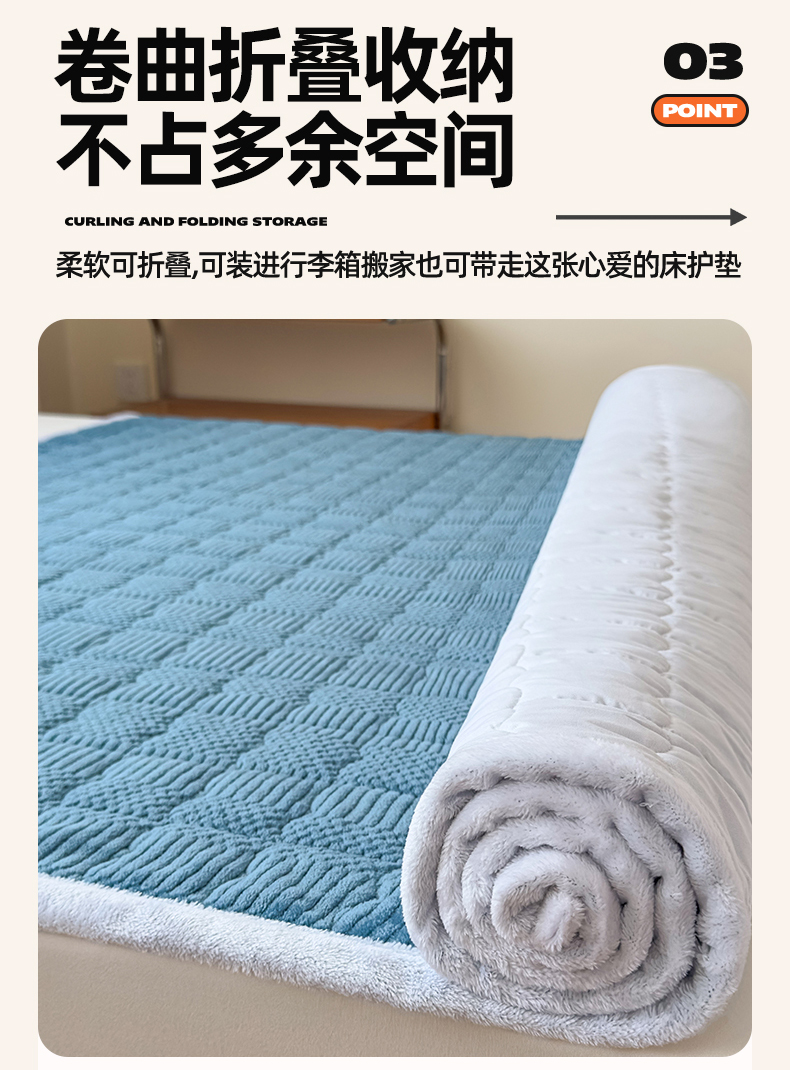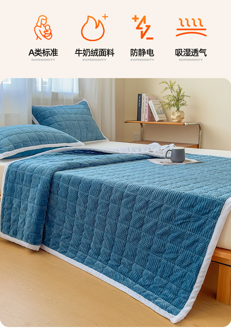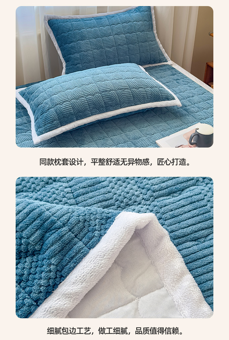 • 91家纺网 家纺一手货源 找家纺 恒爱家纺 2025新款牛奶绒提花床垫床褥 宾利蓝