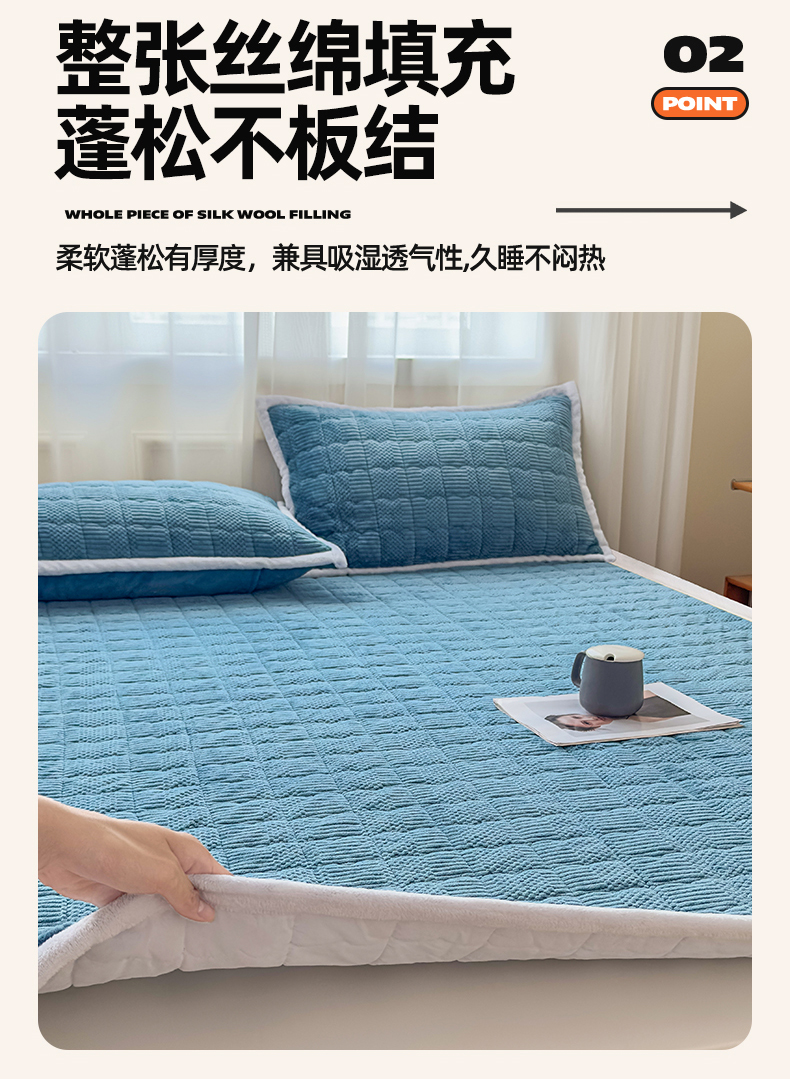 恒爱家纺 2025新款牛奶绒提花床垫床褥 宾利蓝
