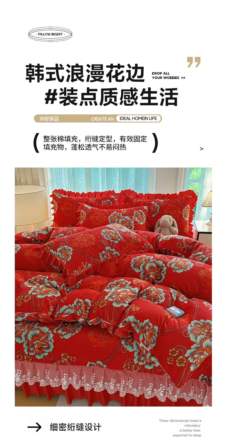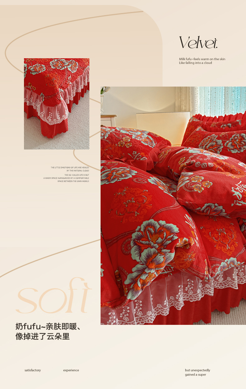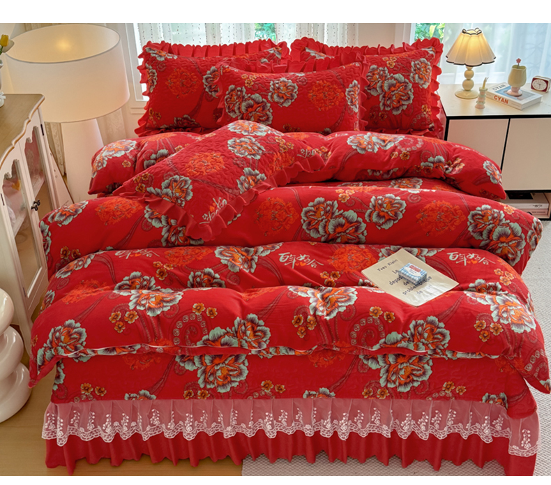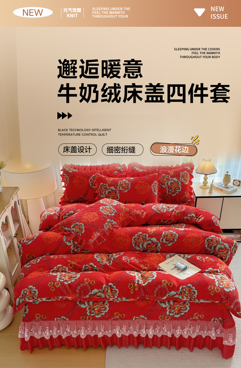 当前位置: 91家纺网 > 商品网购 > 床品套件 > 四件套 > 牛奶绒四件套 > 绒耀 2025新款直播爆款双层蕾丝花边牛奶绒印花床盖四件套床盖单件三件套 喜上眉梢