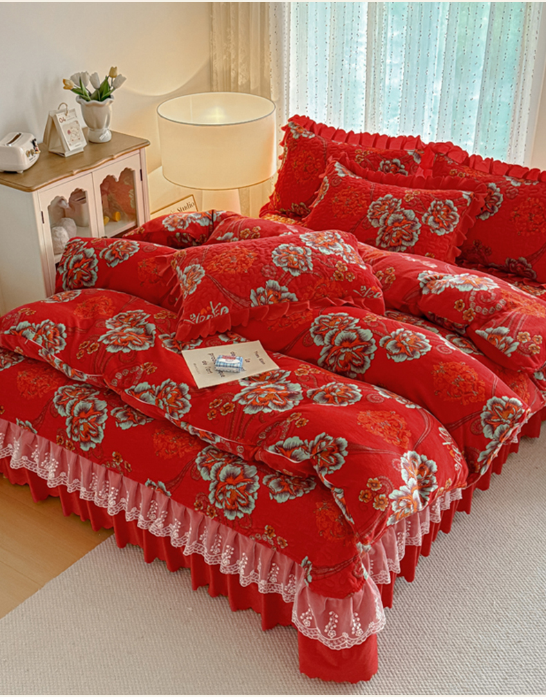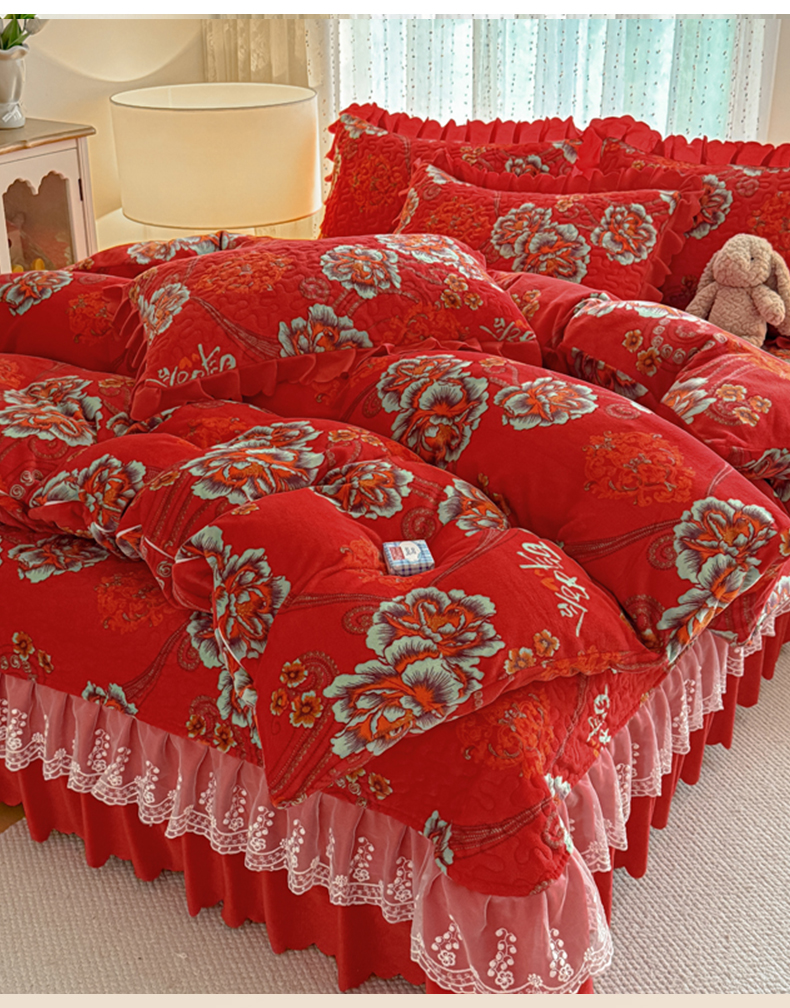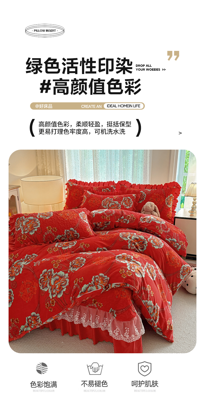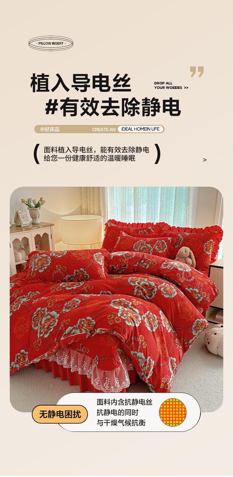 当前位置: 91家纺网 > 商品网购 > 床品套件 > 四件套 > 牛奶绒四件套 > 绒耀 2025新款直播爆款双层蕾丝花边牛奶绒印花床盖四件套床盖单件三件套 喜上眉梢