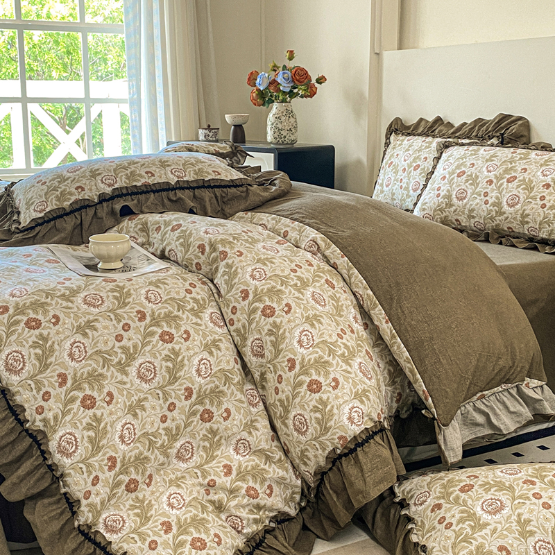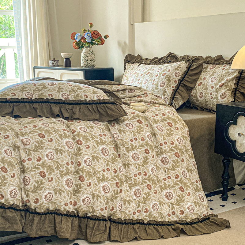 (总)梦纤绒 2026新款高克重法式复古亚麻花边款四件套,雾影,花梦,森屿,时光紫,晚风,雾漫