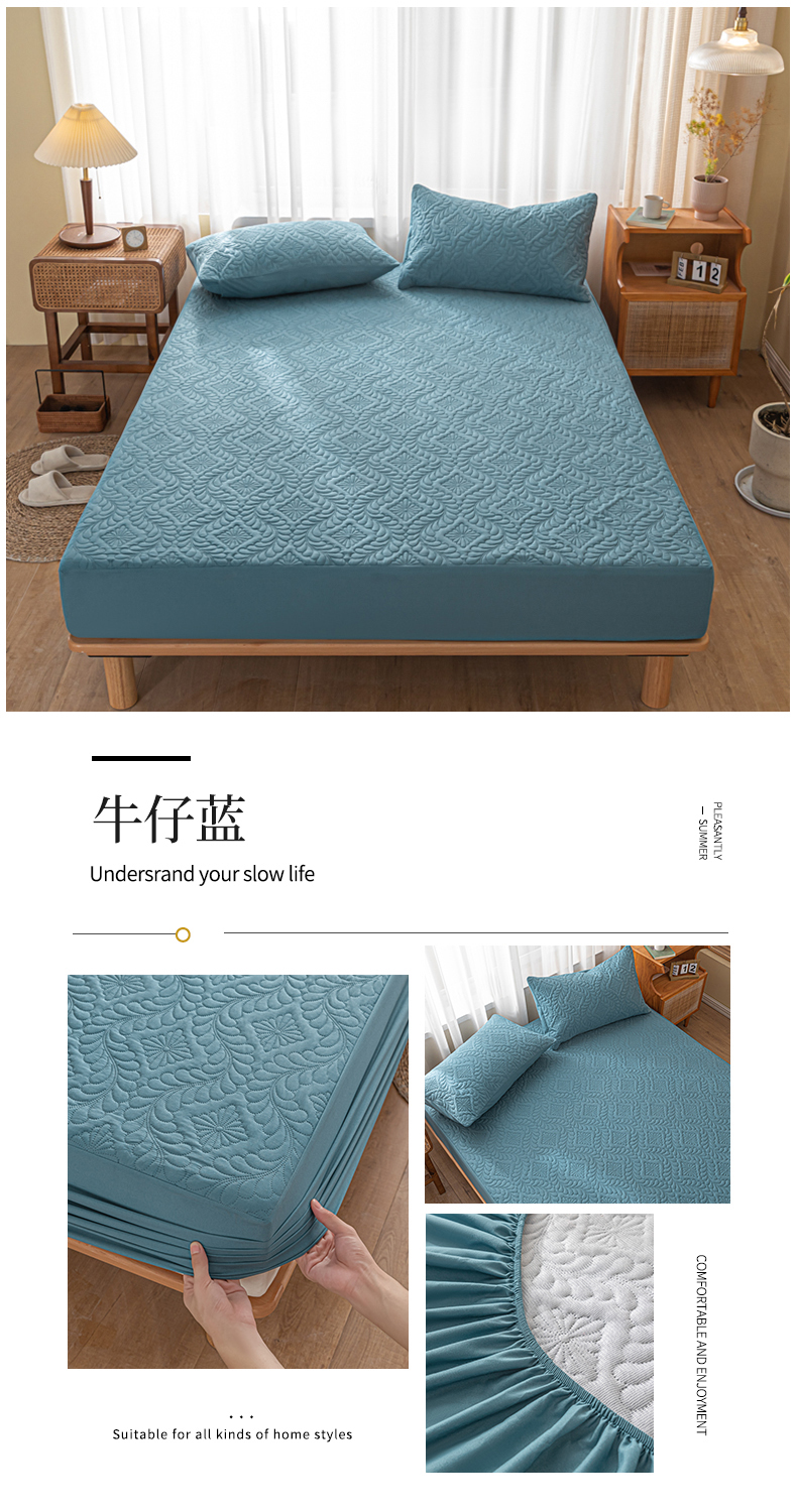 商品名称:梵克保罗 2025新款简约纯色水洗棉防水夹棉枕套 小草绿