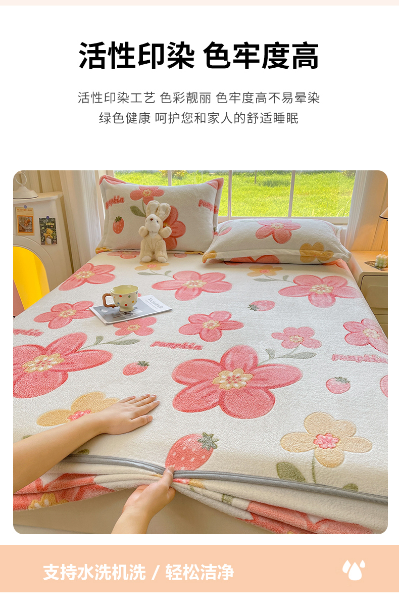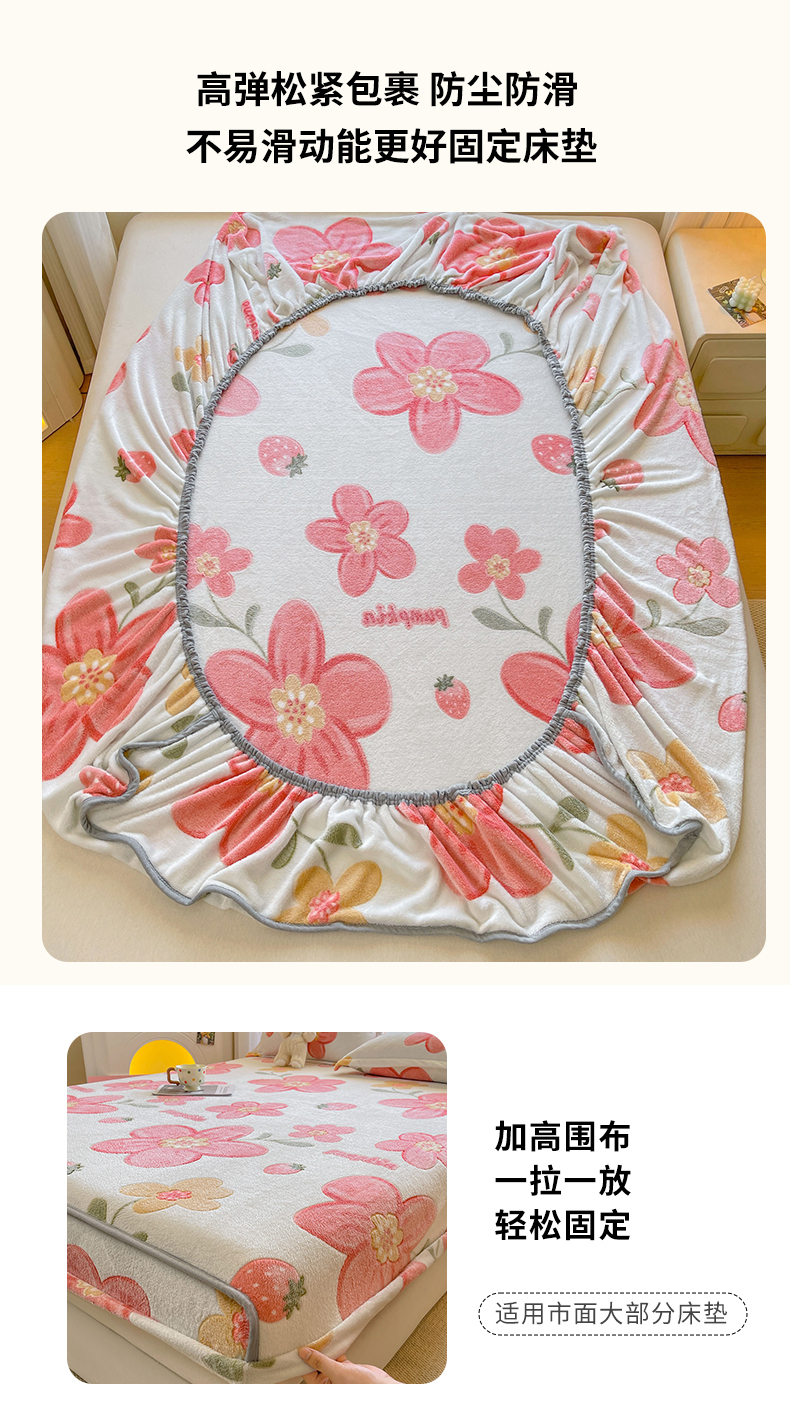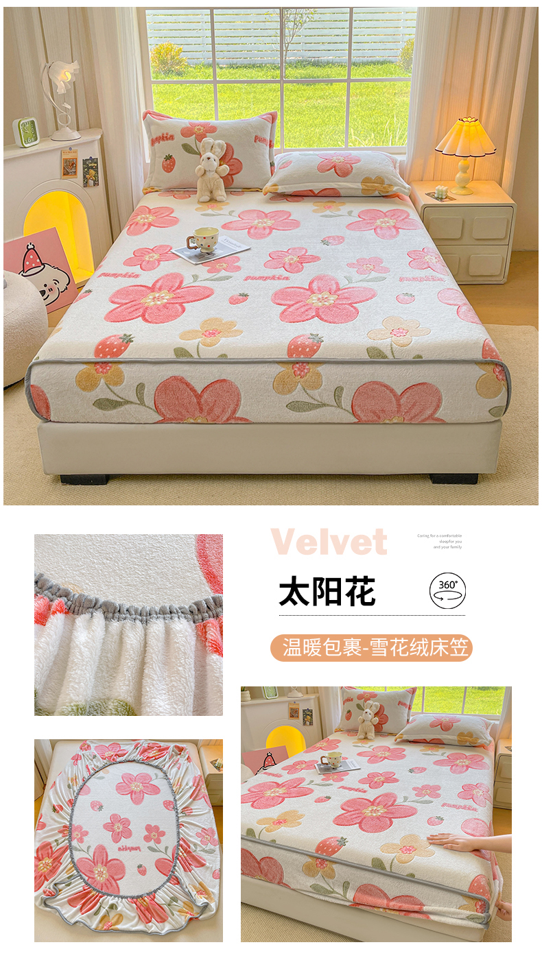 牵梦萦家纺 2025新款雪花绒立体包边床笠 太阳花
