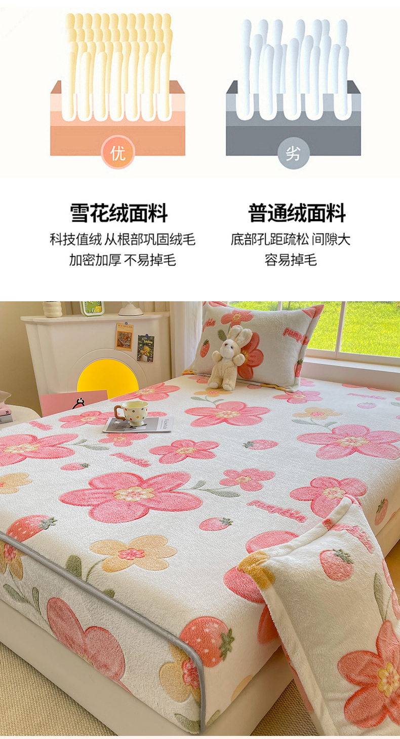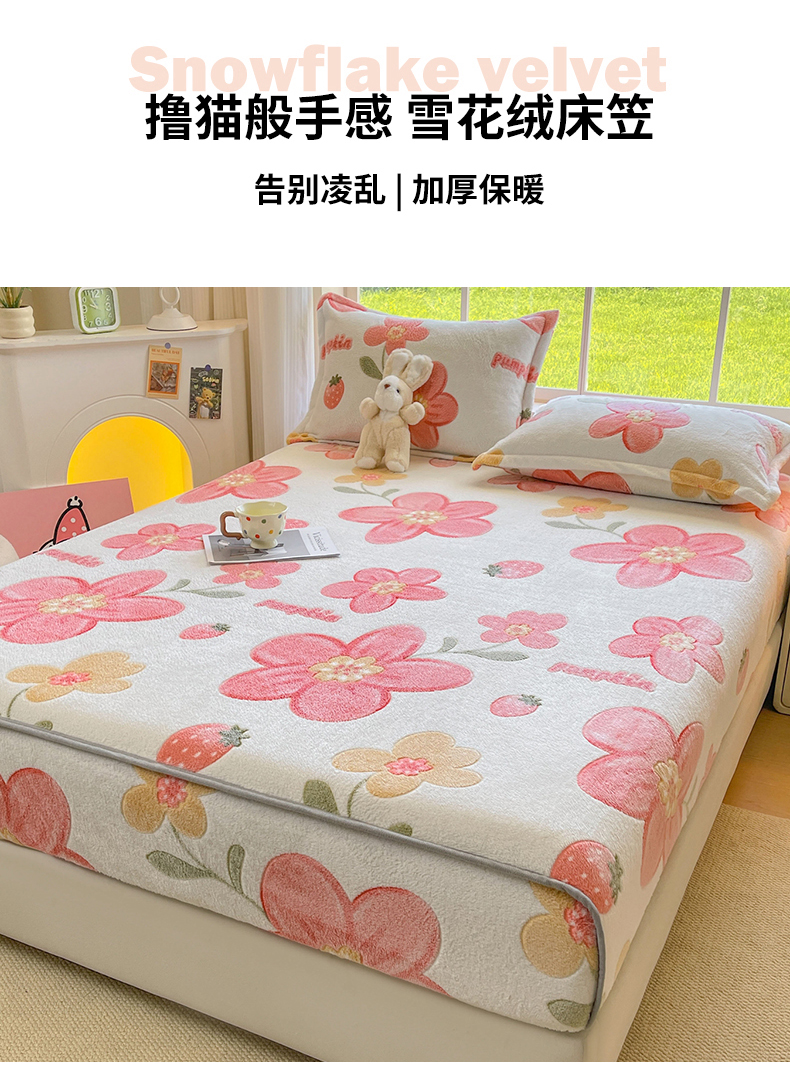 商品名称:牵梦萦家纺 2025新款雪花绒立体包边床笠 太阳花