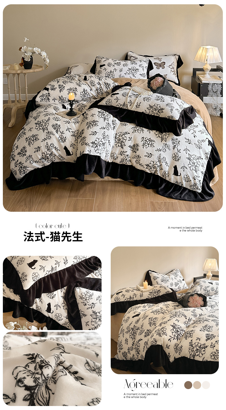 当前位置: 91家纺网 > 商品网购 > 床品套件 > 四件套 > 牛奶绒四件套 > 安哆啦家纺 2025新款法式赫本风牛奶绒四件套 法式-蓝梦里