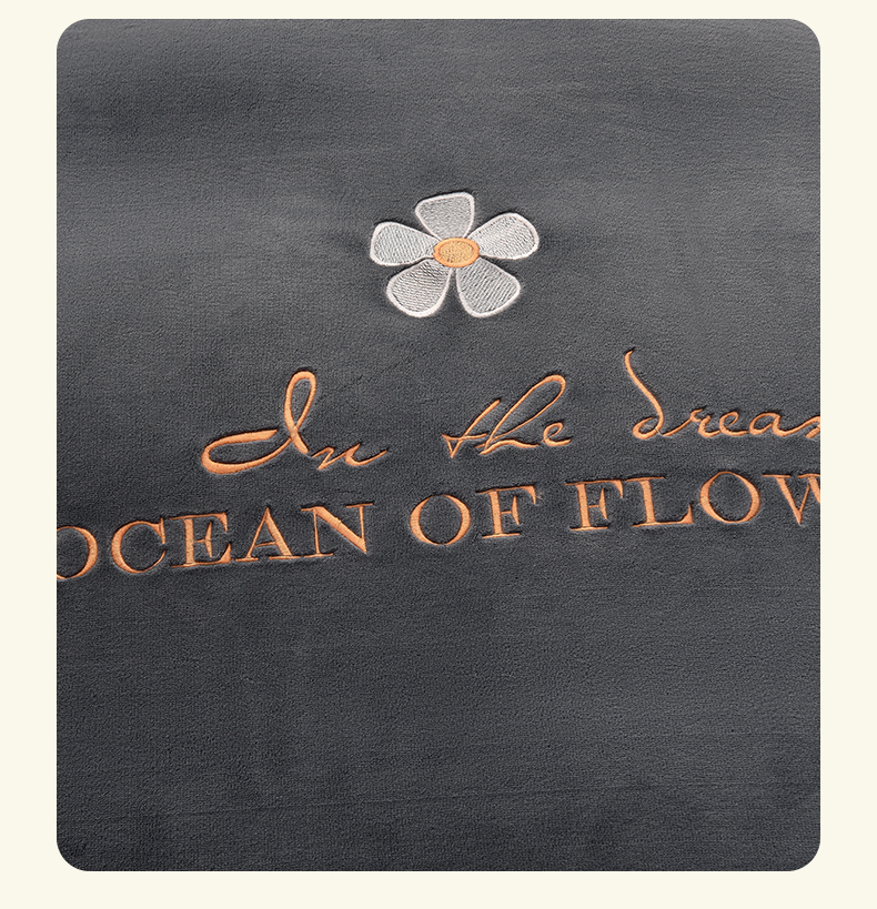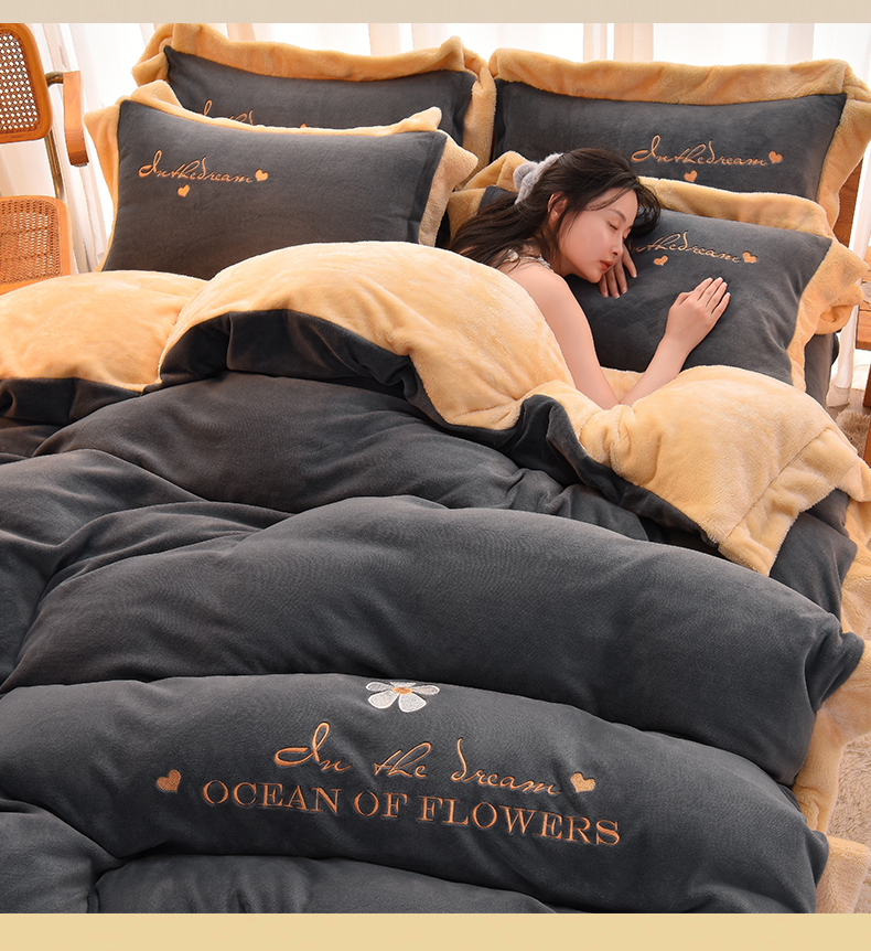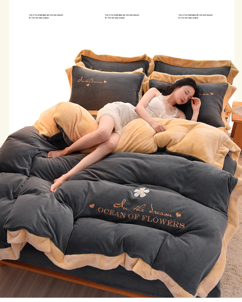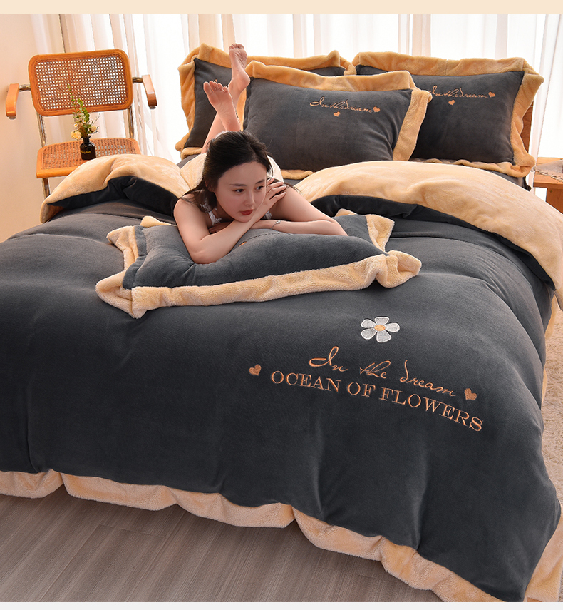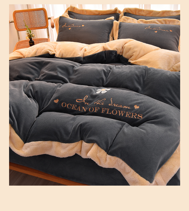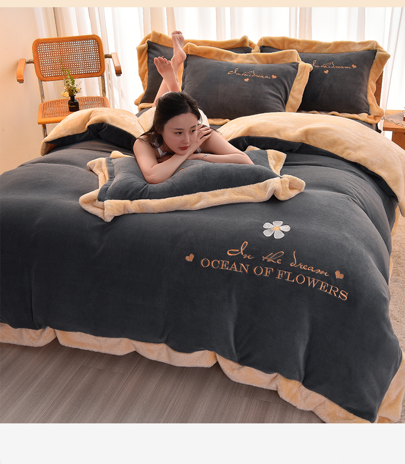 笙意 新款牛奶绒刺绣四件套-繁花系列 繁花-绅士灰