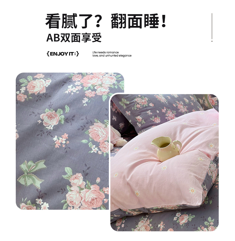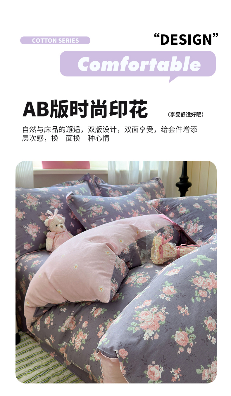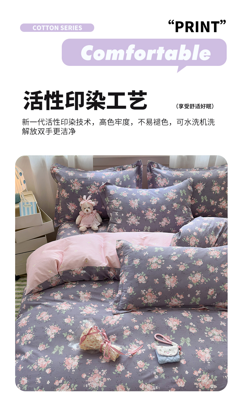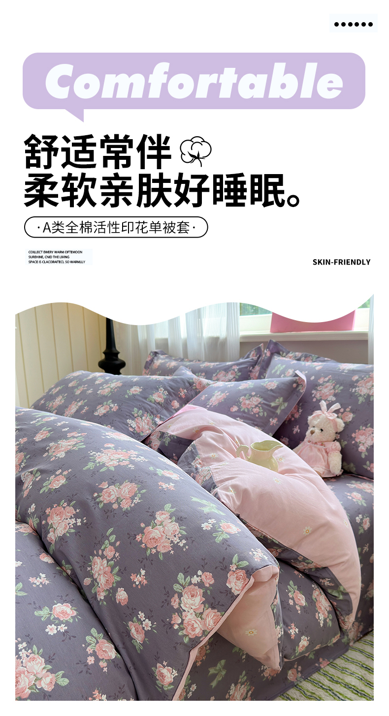 拾物记 2025新款A类12868全棉纯棉单被套被套单件-提供买家秀和质检报告 幸福花儿-紫