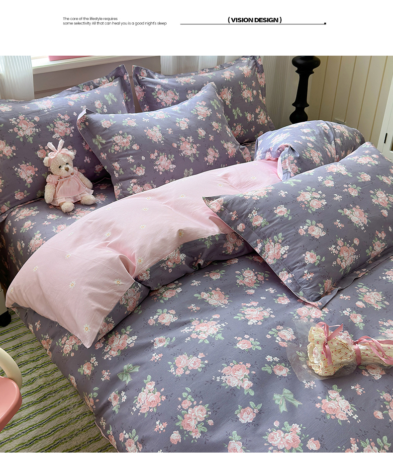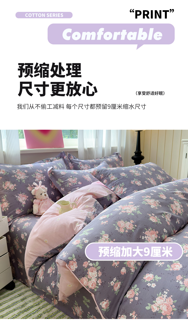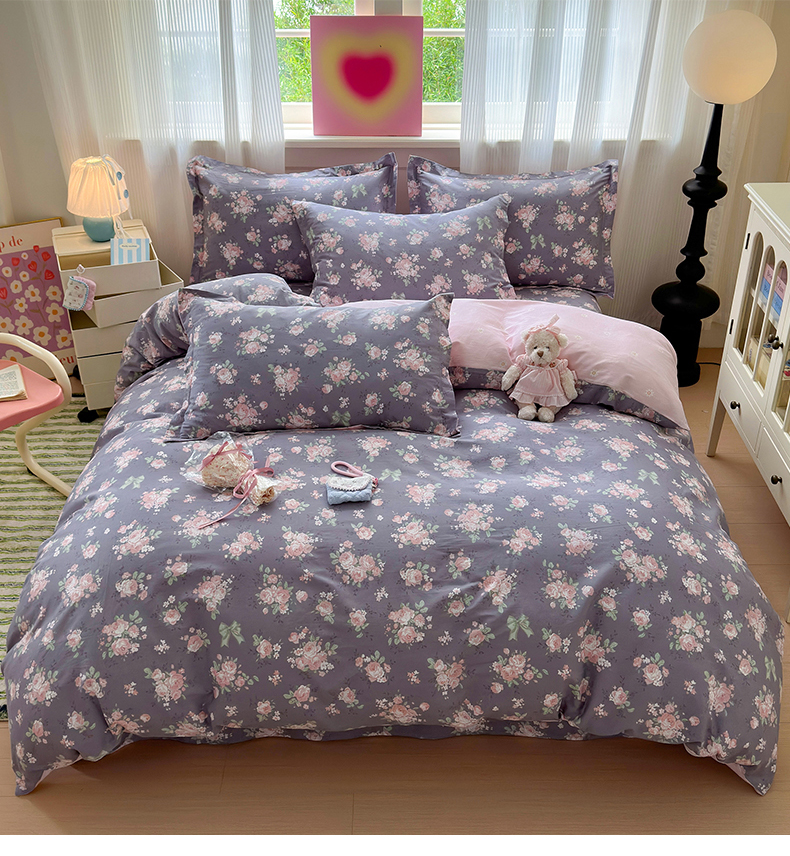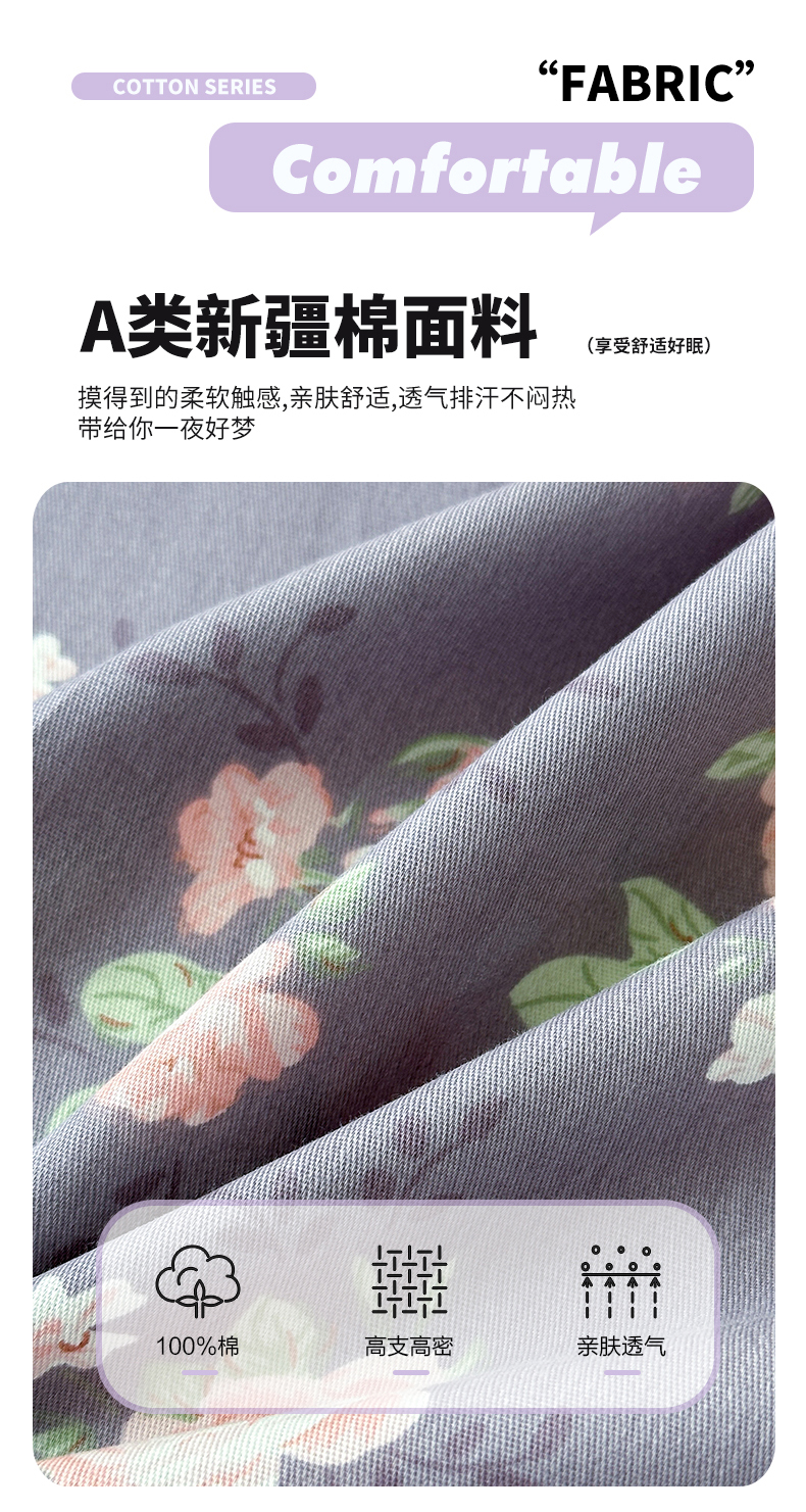 • 91家纺网 家纺一手货源 找家纺 拾物记 2025新款A类12868全棉纯棉单被套被套单件-提供买家秀和质检报告 幸福花儿-紫