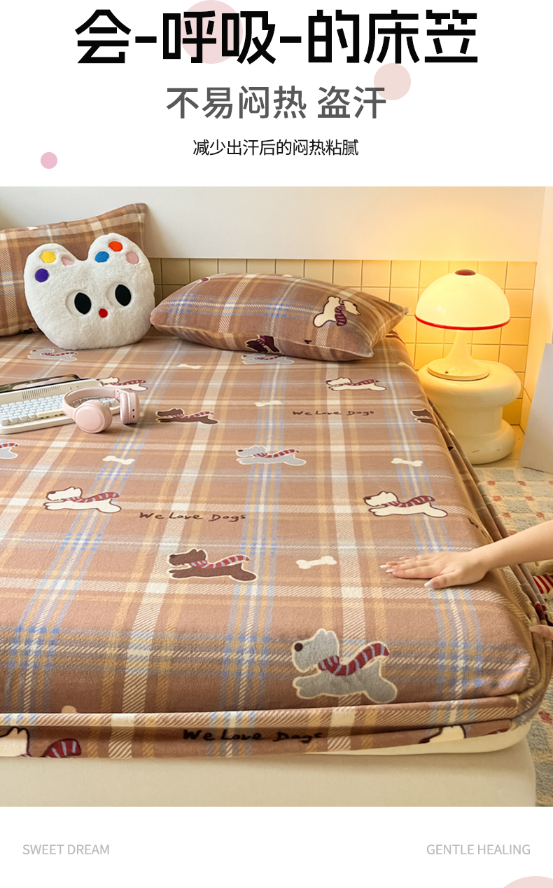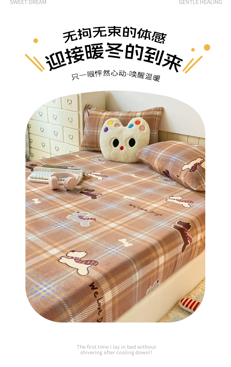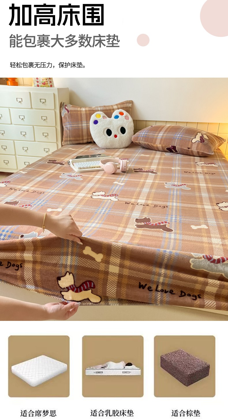 当前位置: 91家纺网 > 商品网购 > 床上用品 > 床笠 > 爱彼家纺 2025新款高克重牛奶绒卡通床笠单床笠单件 小狗格温