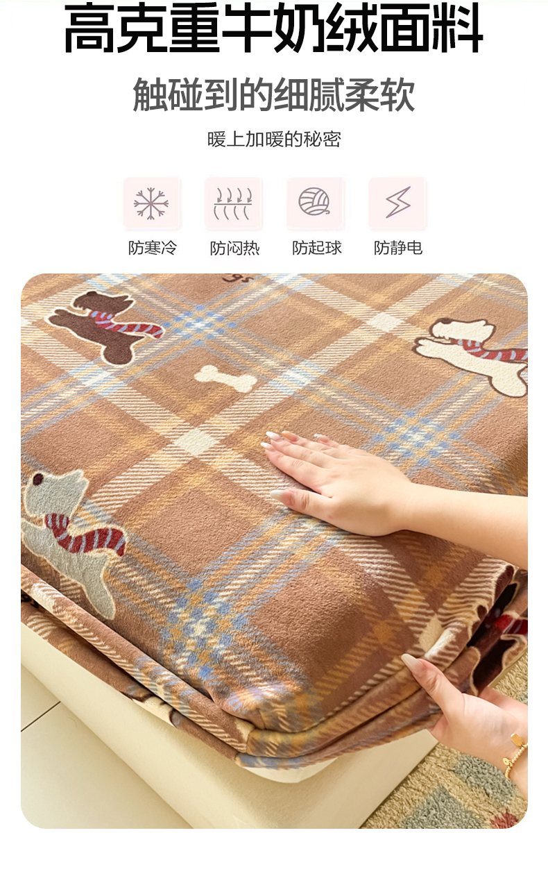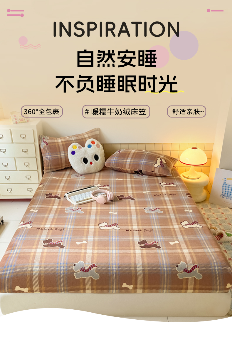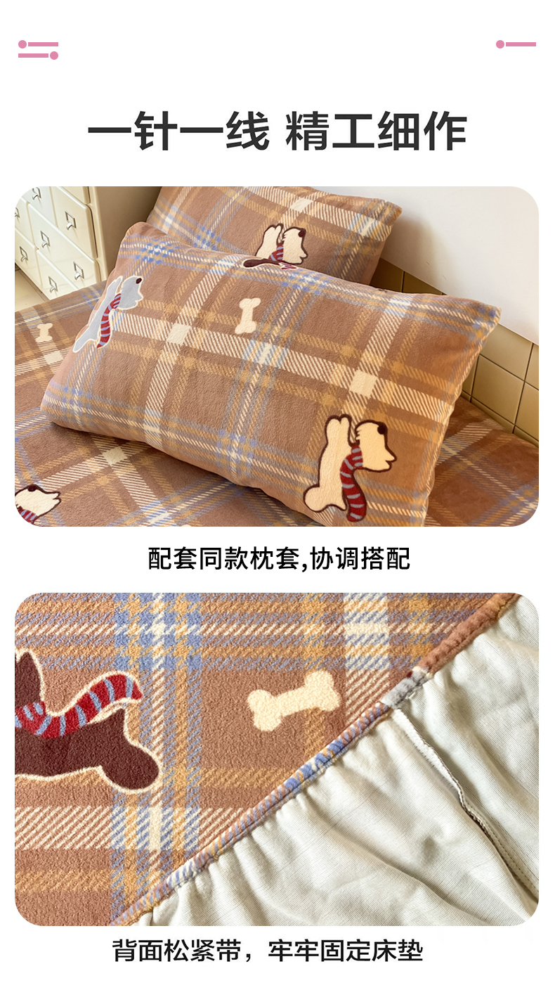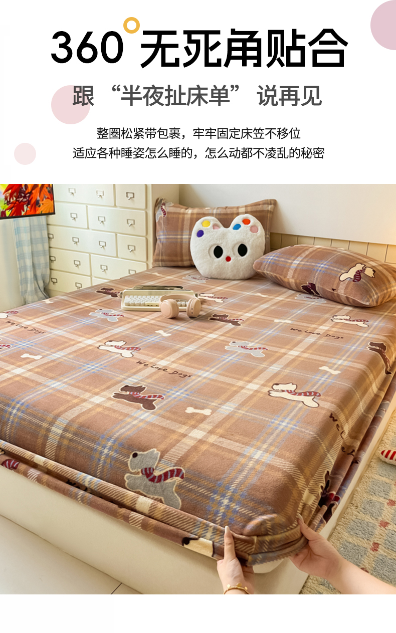 当前位置: 91家纺网 > 商品网购 > 床上用品 > 床笠 > 爱彼家纺 2025新款高克重牛奶绒卡通床笠单床笠单件 小狗格温