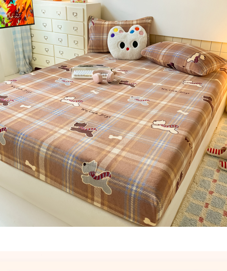 爱彼家纺 2025新款高克重牛奶绒卡通床笠单床笠单件 小狗格温