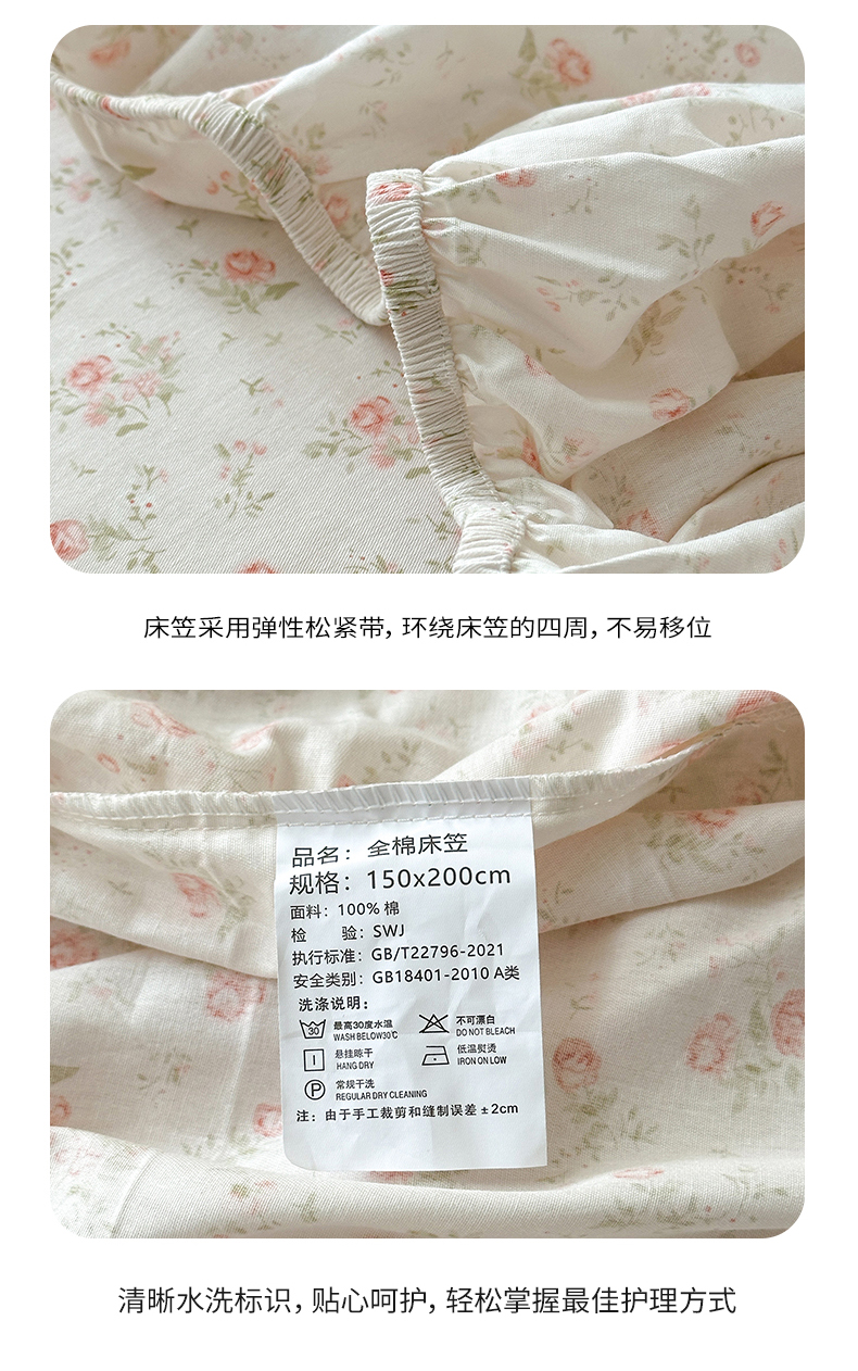 商品名称:拾物记 2025新款A类12868全棉纯棉单床笠床笠单件-提供买家秀和质检报告 幽兰时光-米