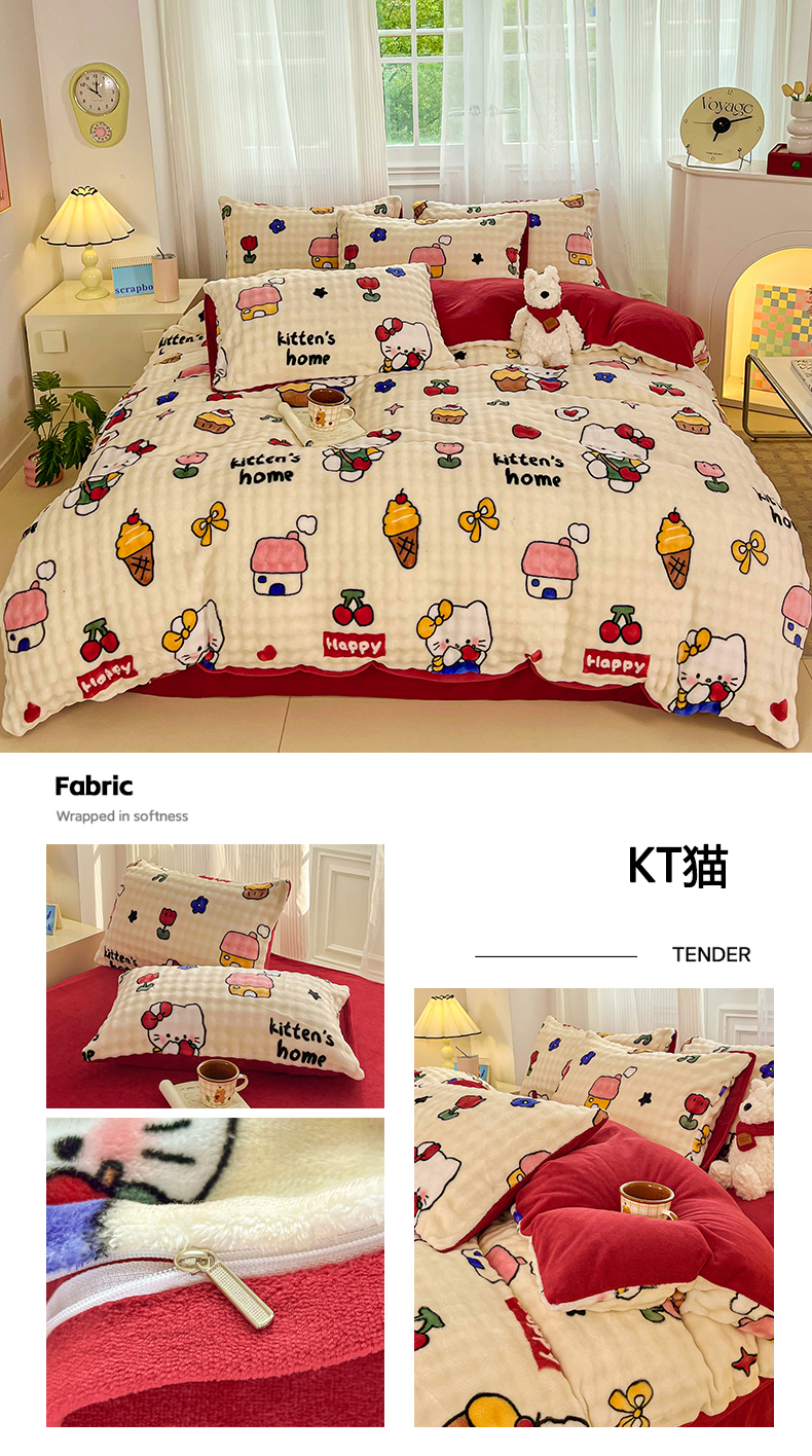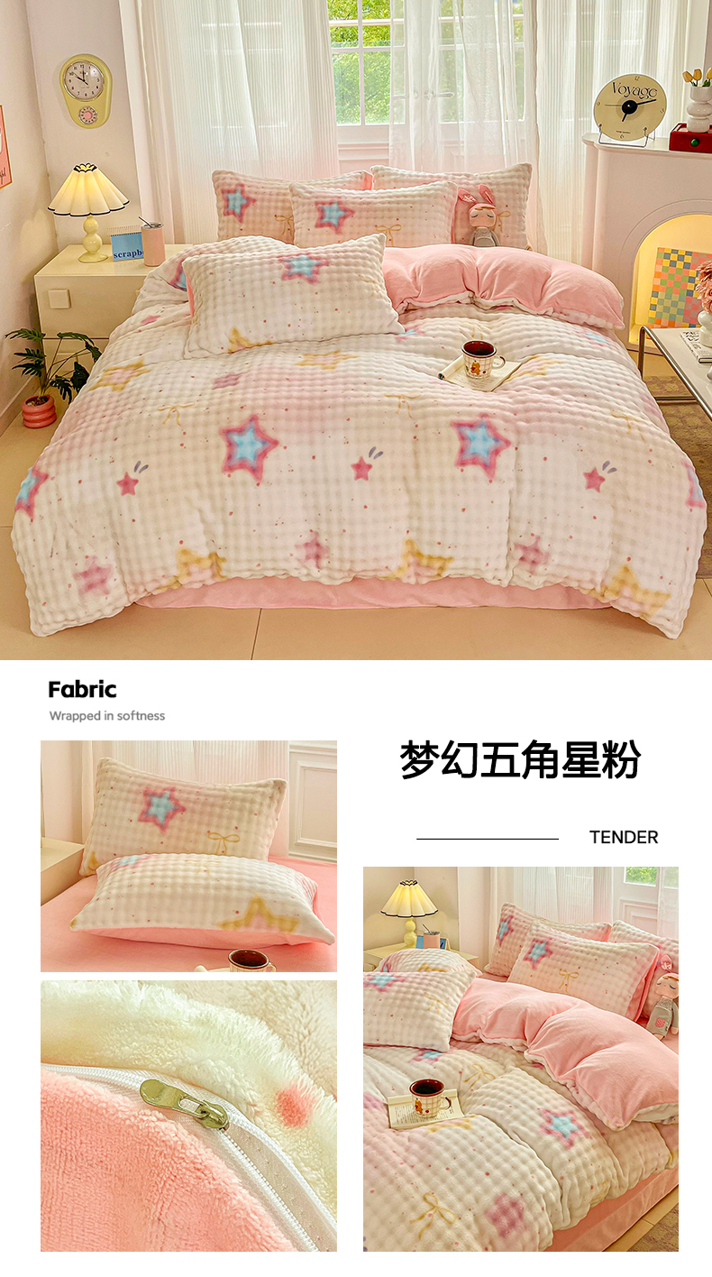 商品名称:梦纤绒 2025新款保暖舒适亲肤泡泡绒四件套 郁金香粉