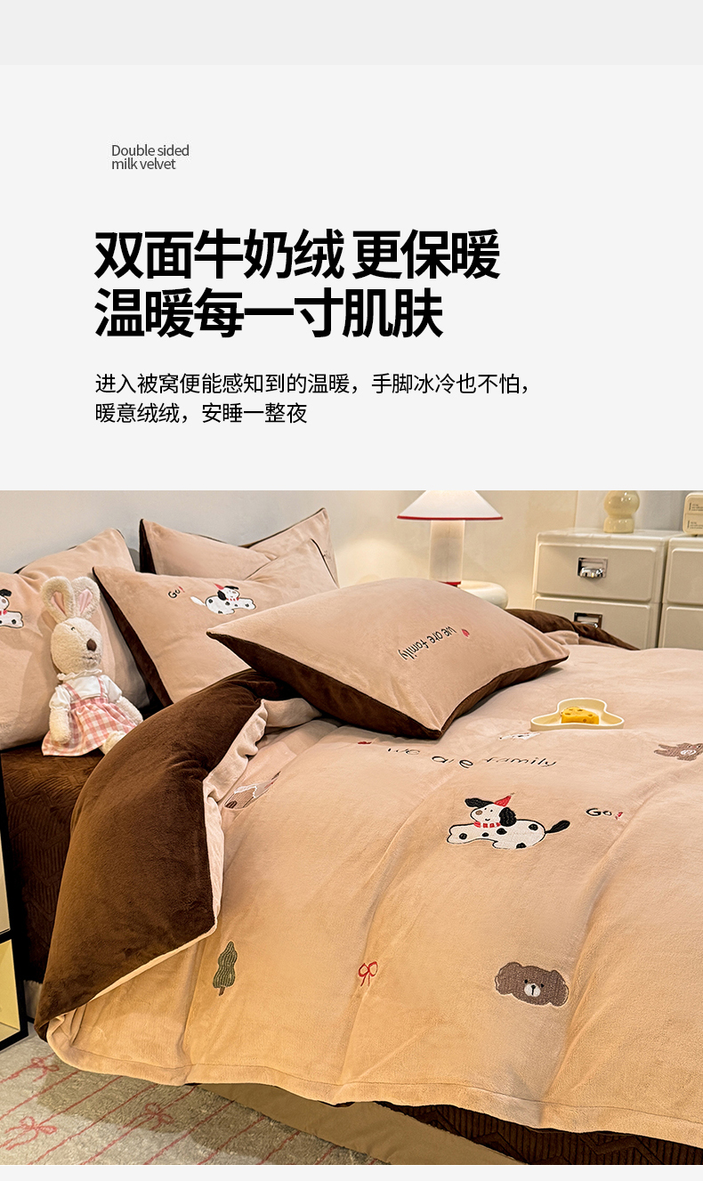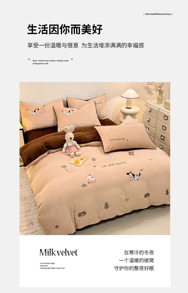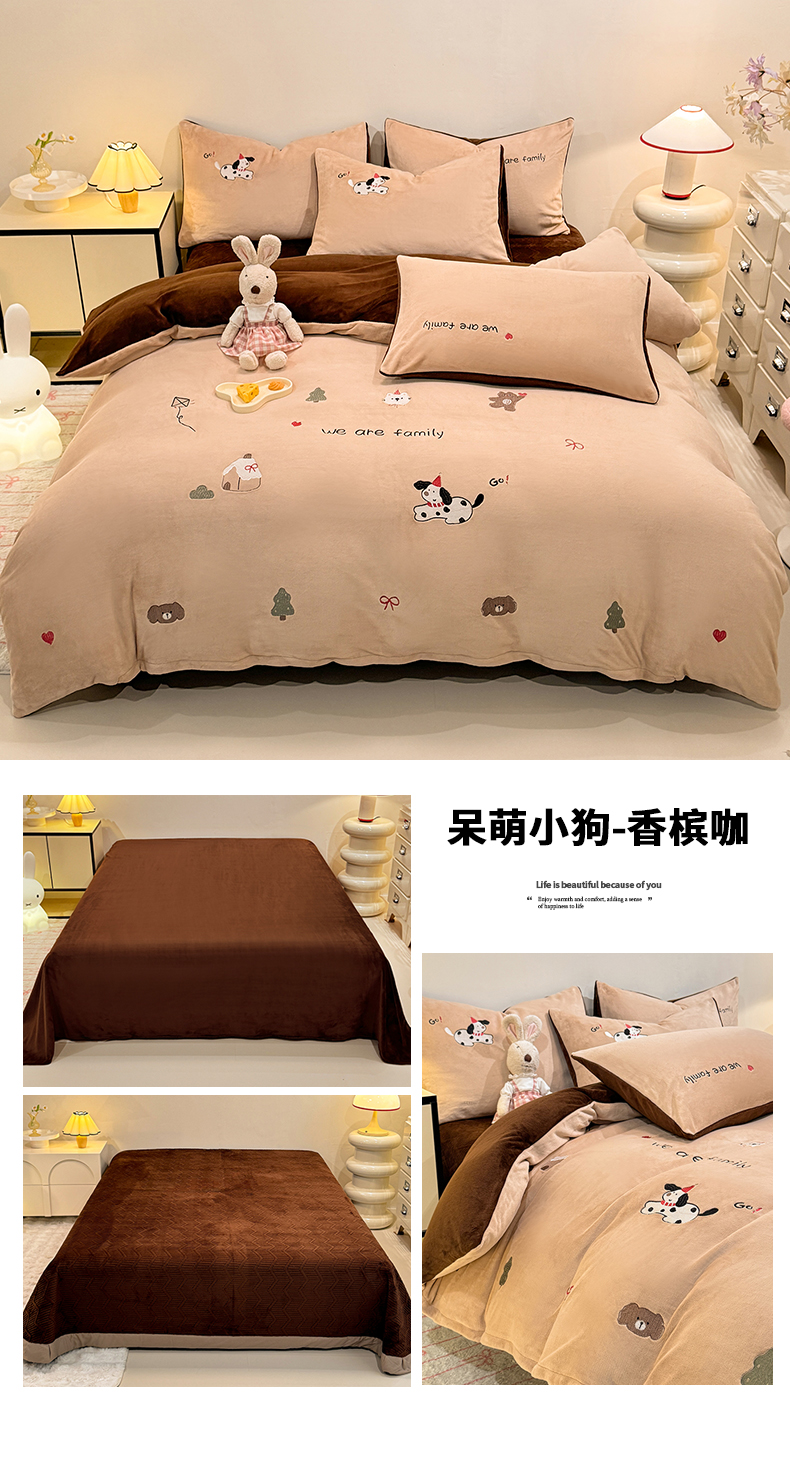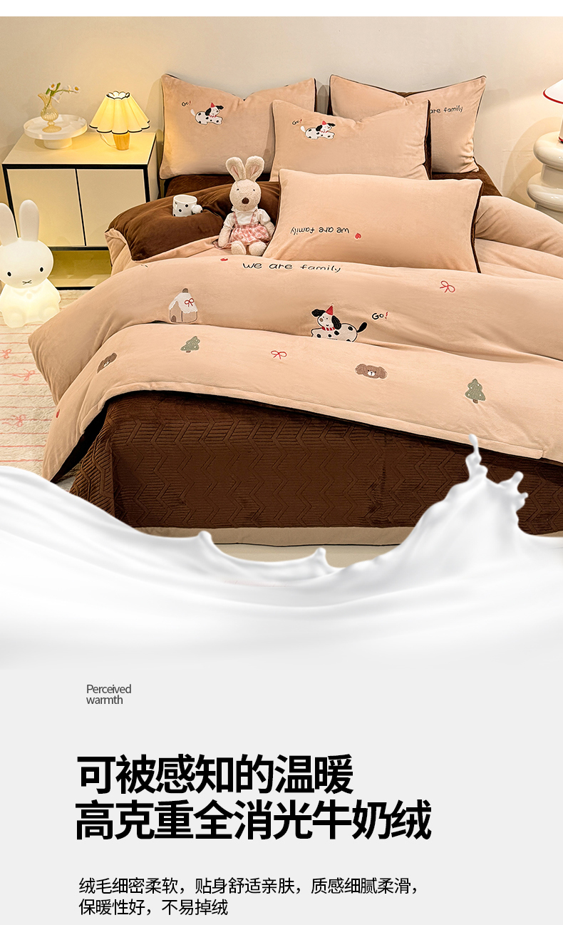 当前位置: 91家纺网 > 商品网购 > 床品套件 > 四件套 > 牛奶绒四件套 > 新方向 2025新款全消光A类刺绣牛奶绒四件套-呆萌小狗 呆萌小狗-香槟咖