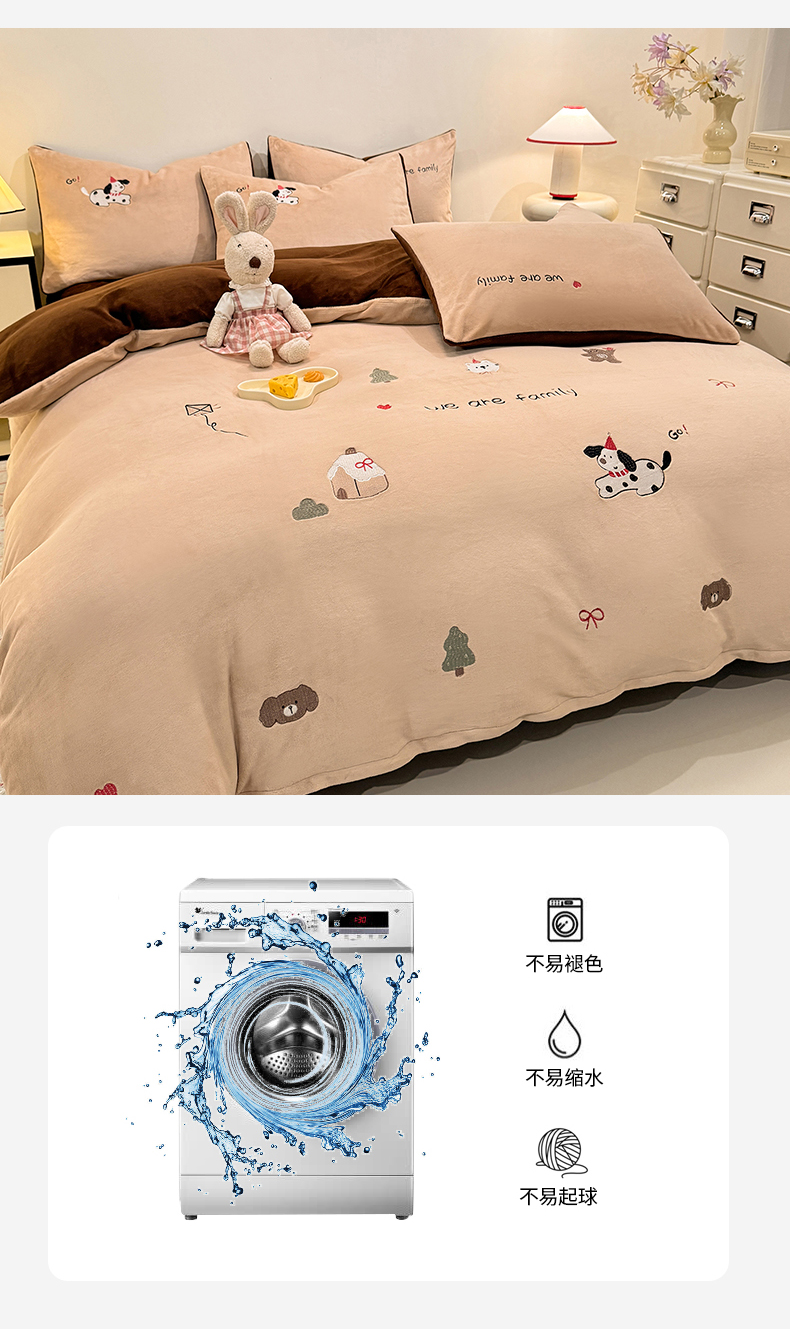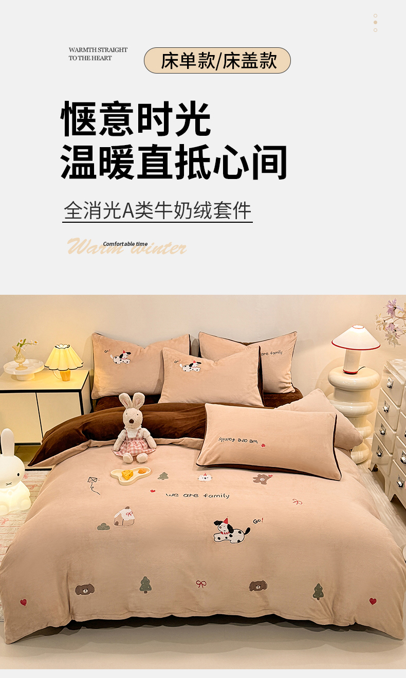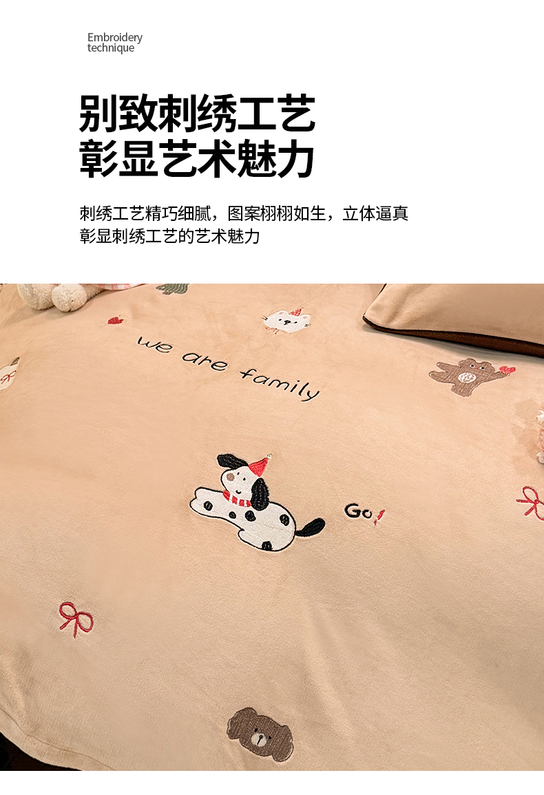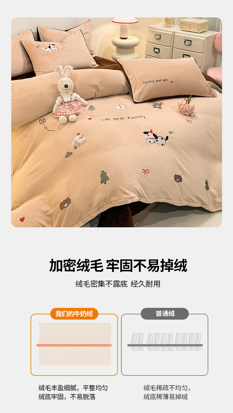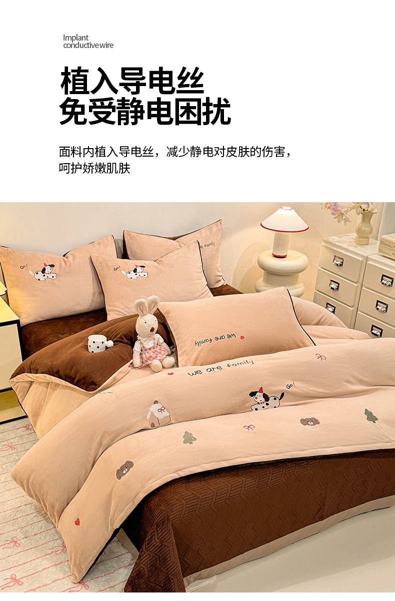 当前位置: 91家纺网 > 商品网购 > 床品套件 > 四件套 > 牛奶绒四件套 > 新方向 2025新款全消光A类刺绣牛奶绒四件套-呆萌小狗 呆萌小狗-香槟咖