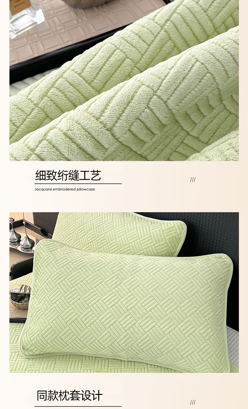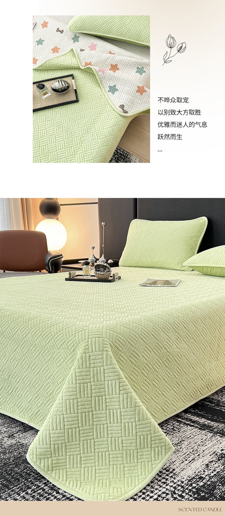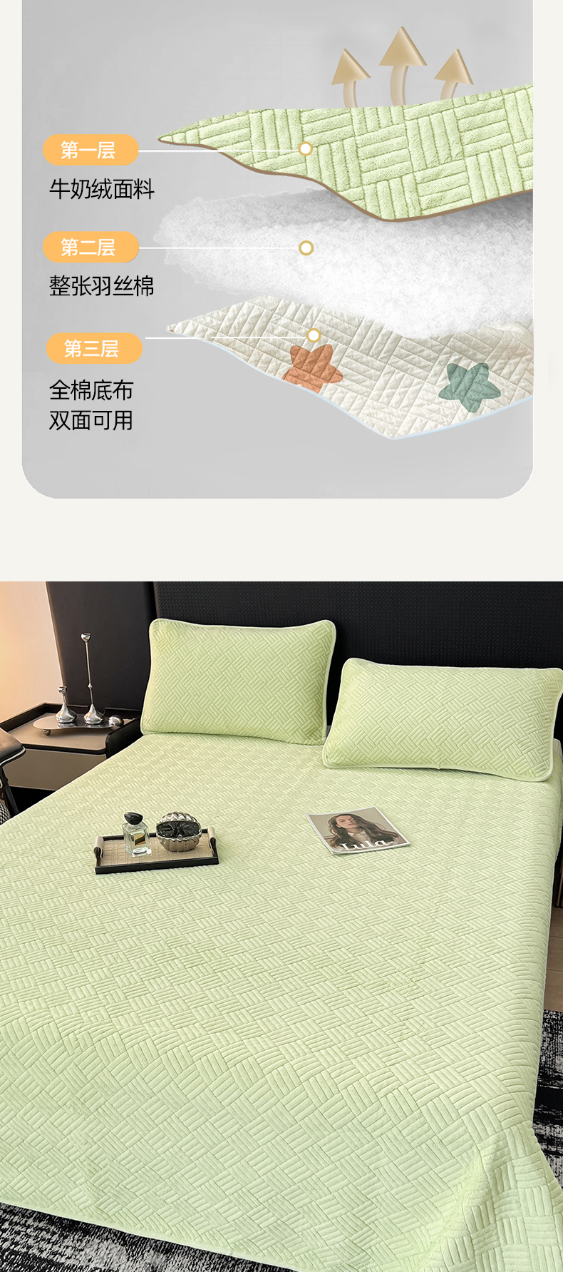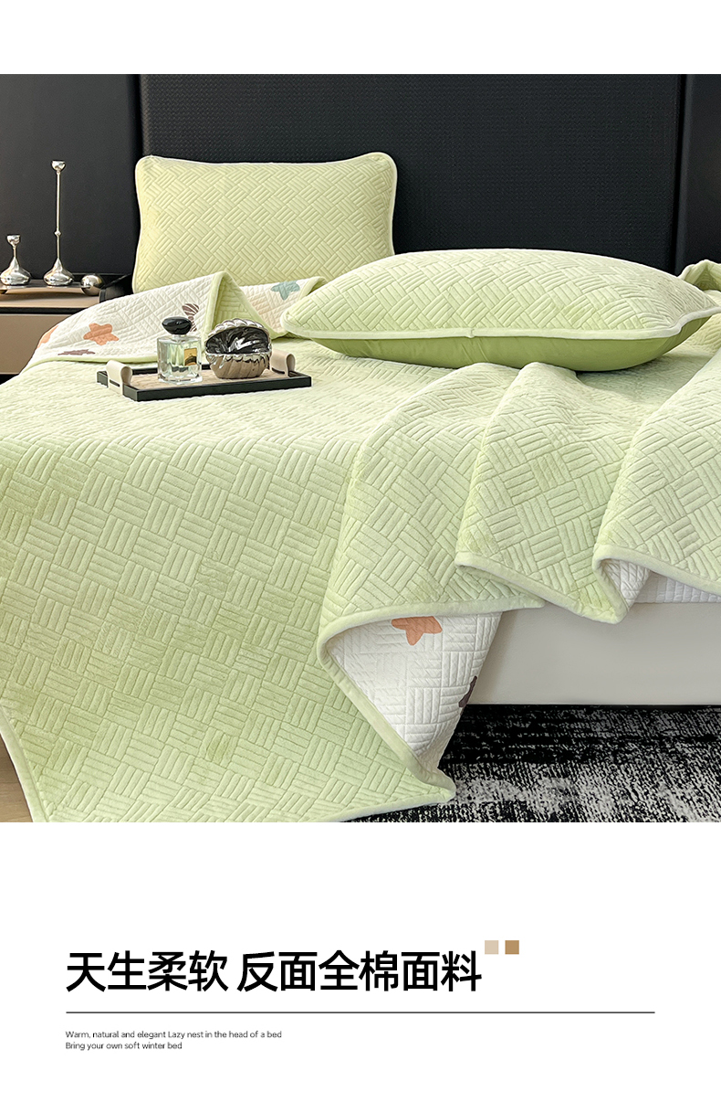 • 91家纺网 家纺一手货源 找家纺 茉夕家纺 2025新款云朵系列棉+牛奶绒单床盖 床盖单件 云朵-青果绿