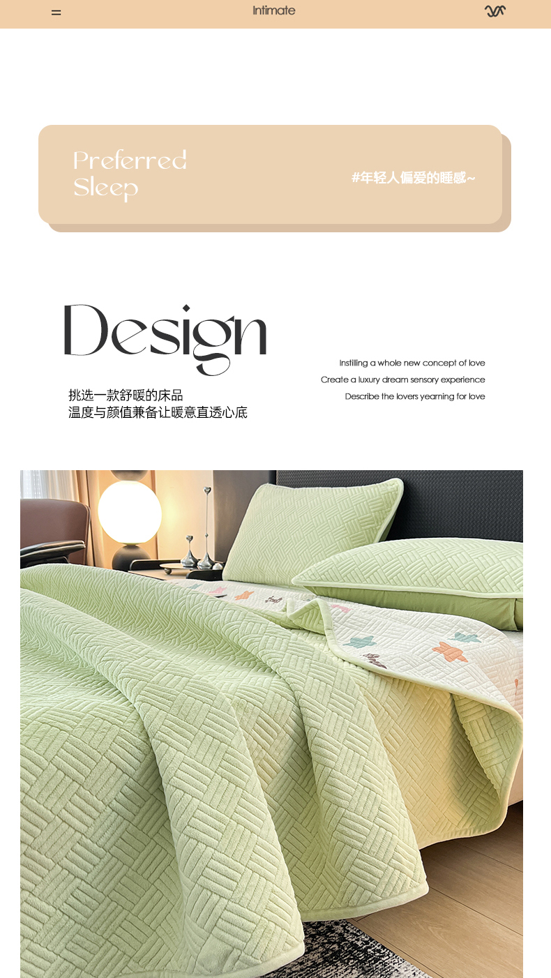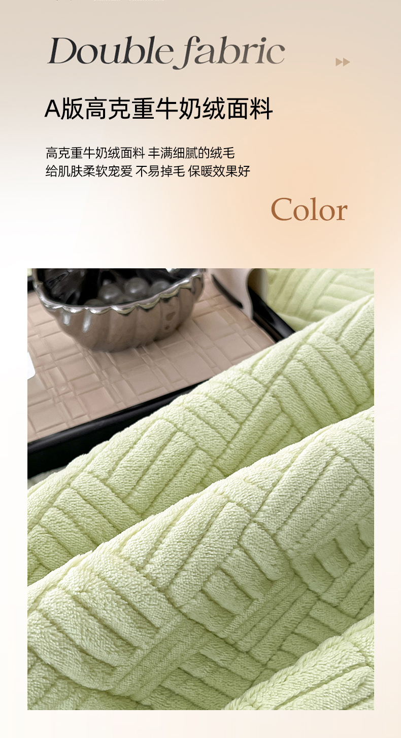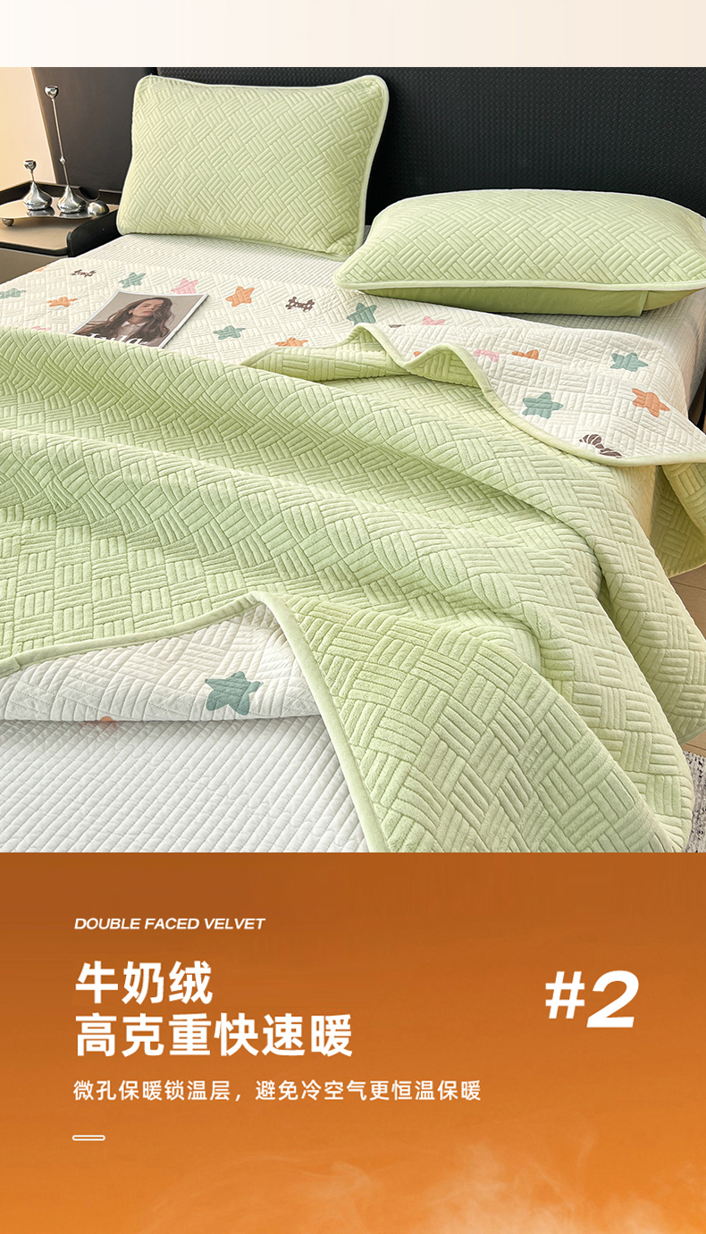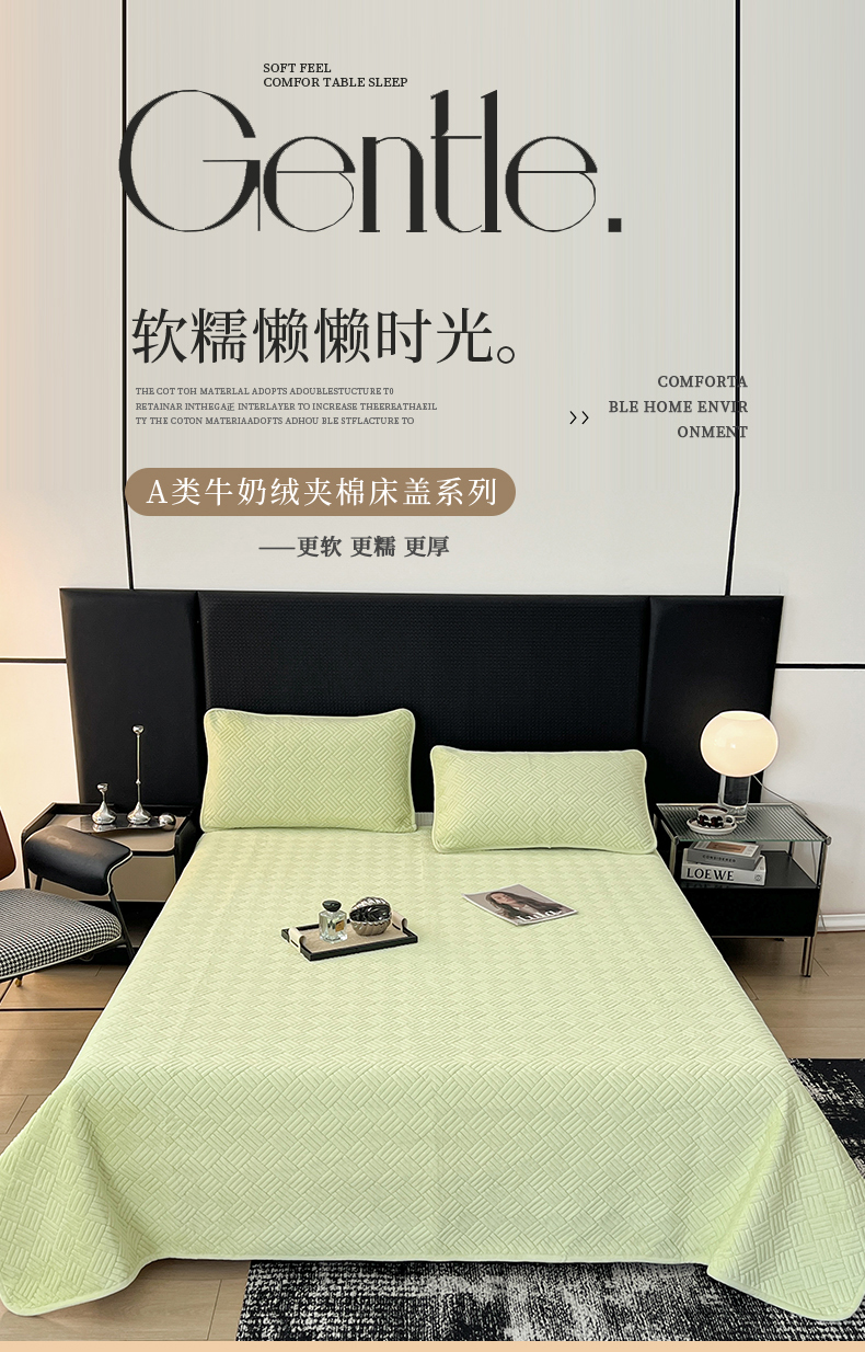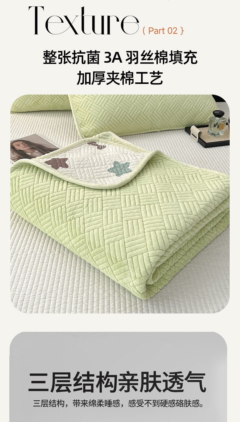 • 91家纺网 家纺一手货源 找家纺 茉夕家纺 2025新款云朵系列棉+牛奶绒单床盖 床盖单件 云朵-青果绿