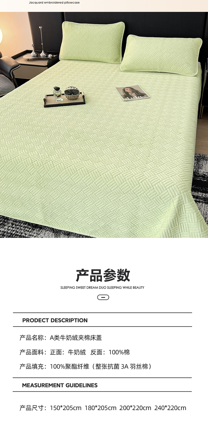 茉夕家纺 2025新款云朵系列棉+牛奶绒单床盖 床盖单件 云朵-青果绿
