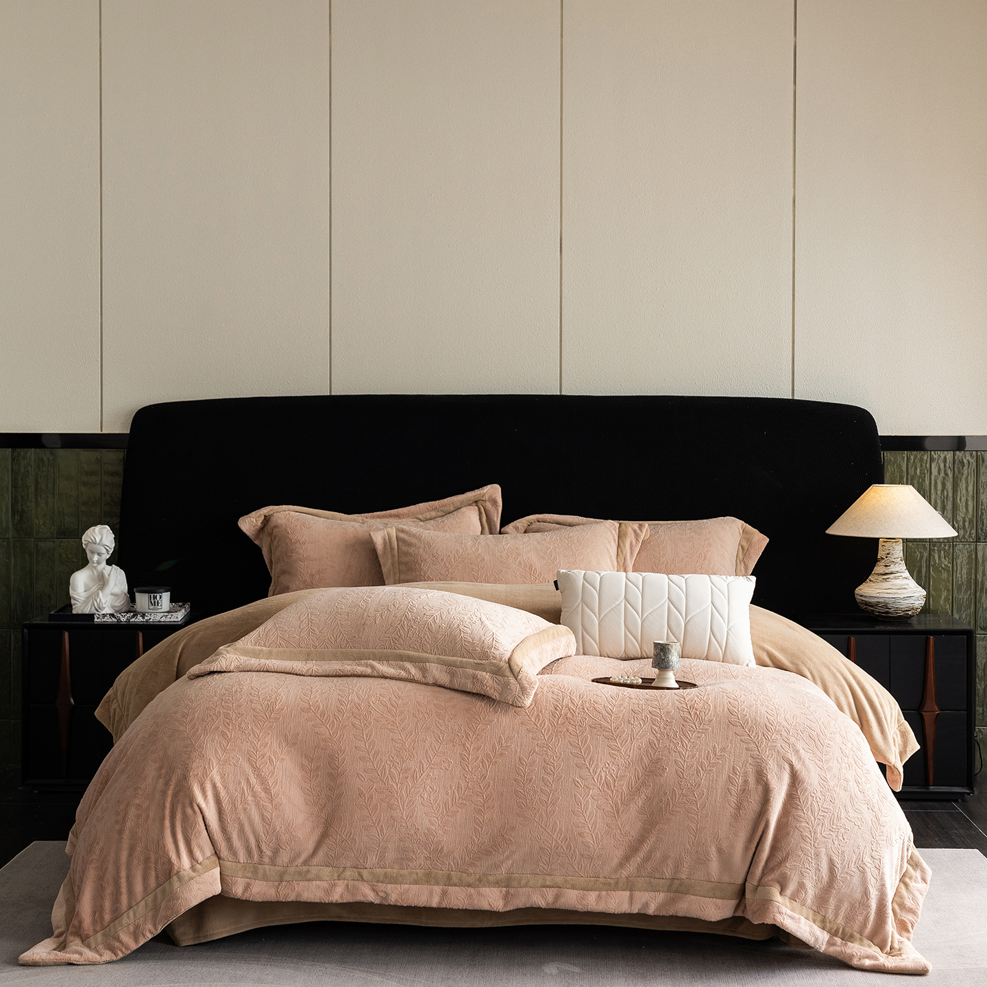 商品名称:蓝梦 2025新款全消光雕花牛奶绒系列-唛叶 浅灰绿