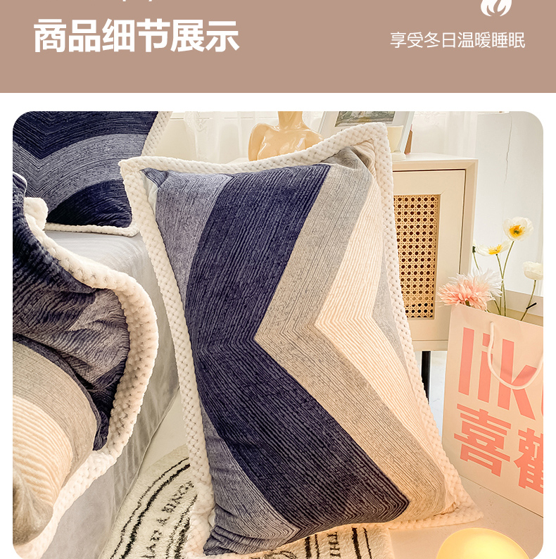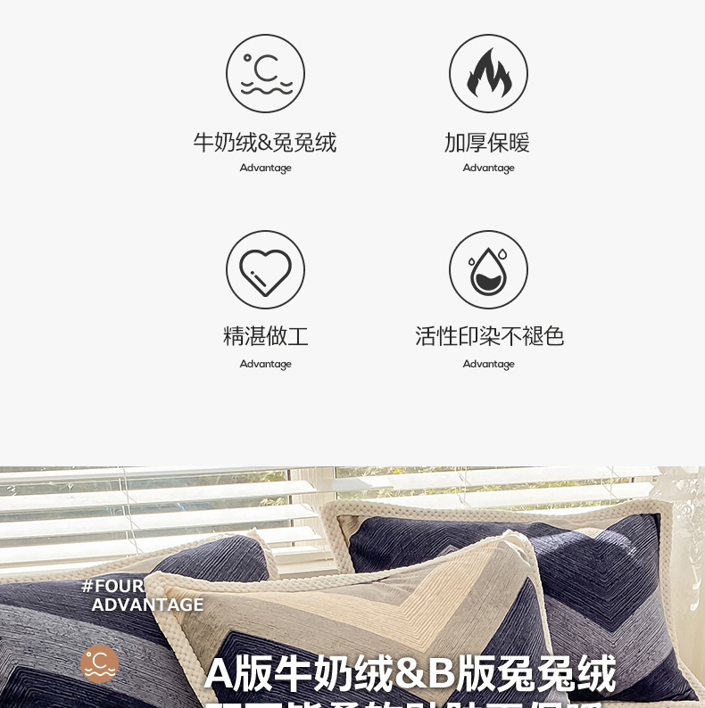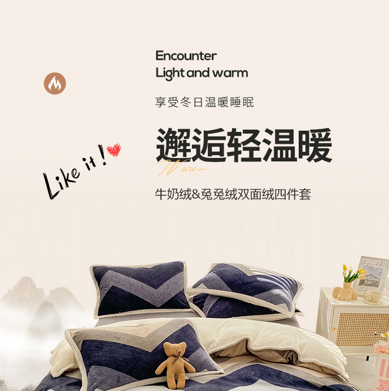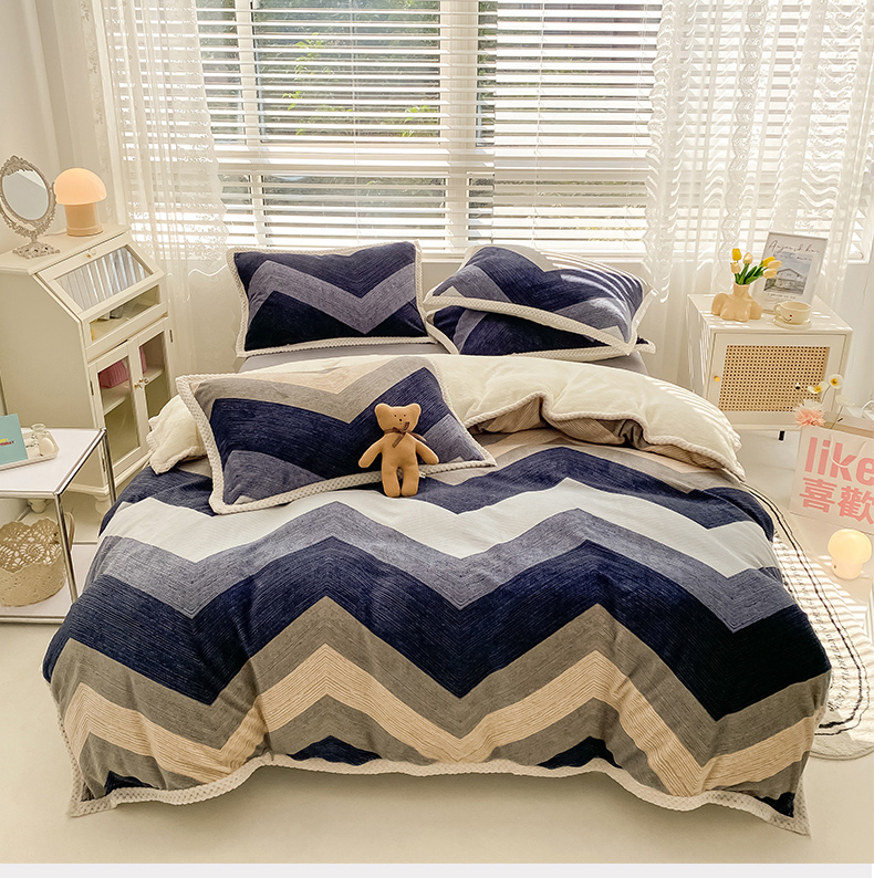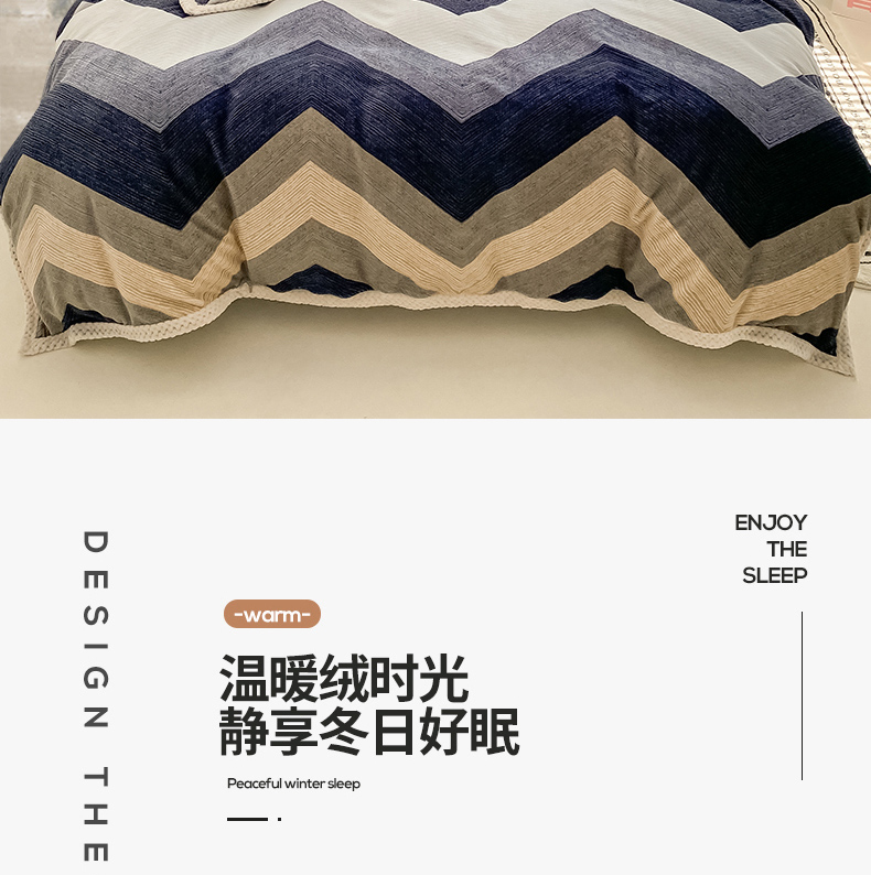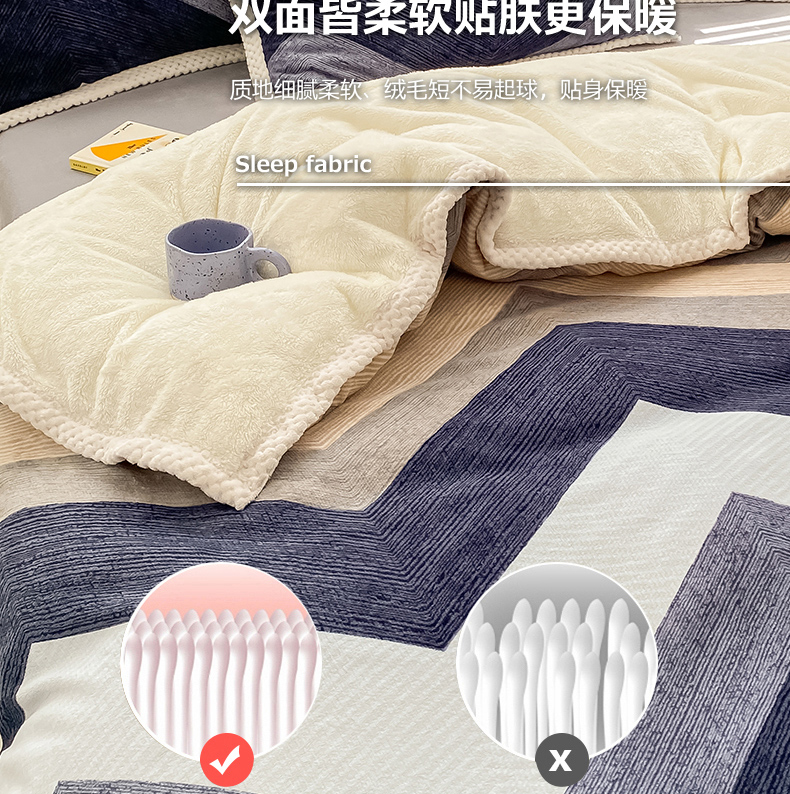 商品名称:琪格格纺织 2025新款A牛奶绒B兔兔绒保暖印花四件套 大包边绒几何时尚