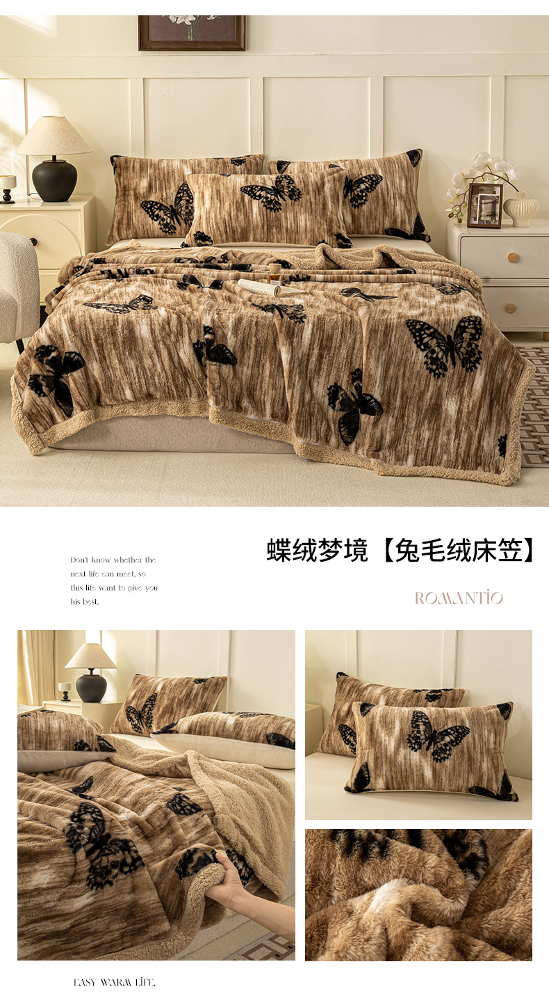 • 91家纺网 家纺一手货源 找家纺 眠势力 2025新款兔毛绒毛毯冬季加绒加厚盖毯兔兔绒保暖毯子带拉链-美拉德系列 蝶绒梦境【兔毛绒毛毯拉链款】