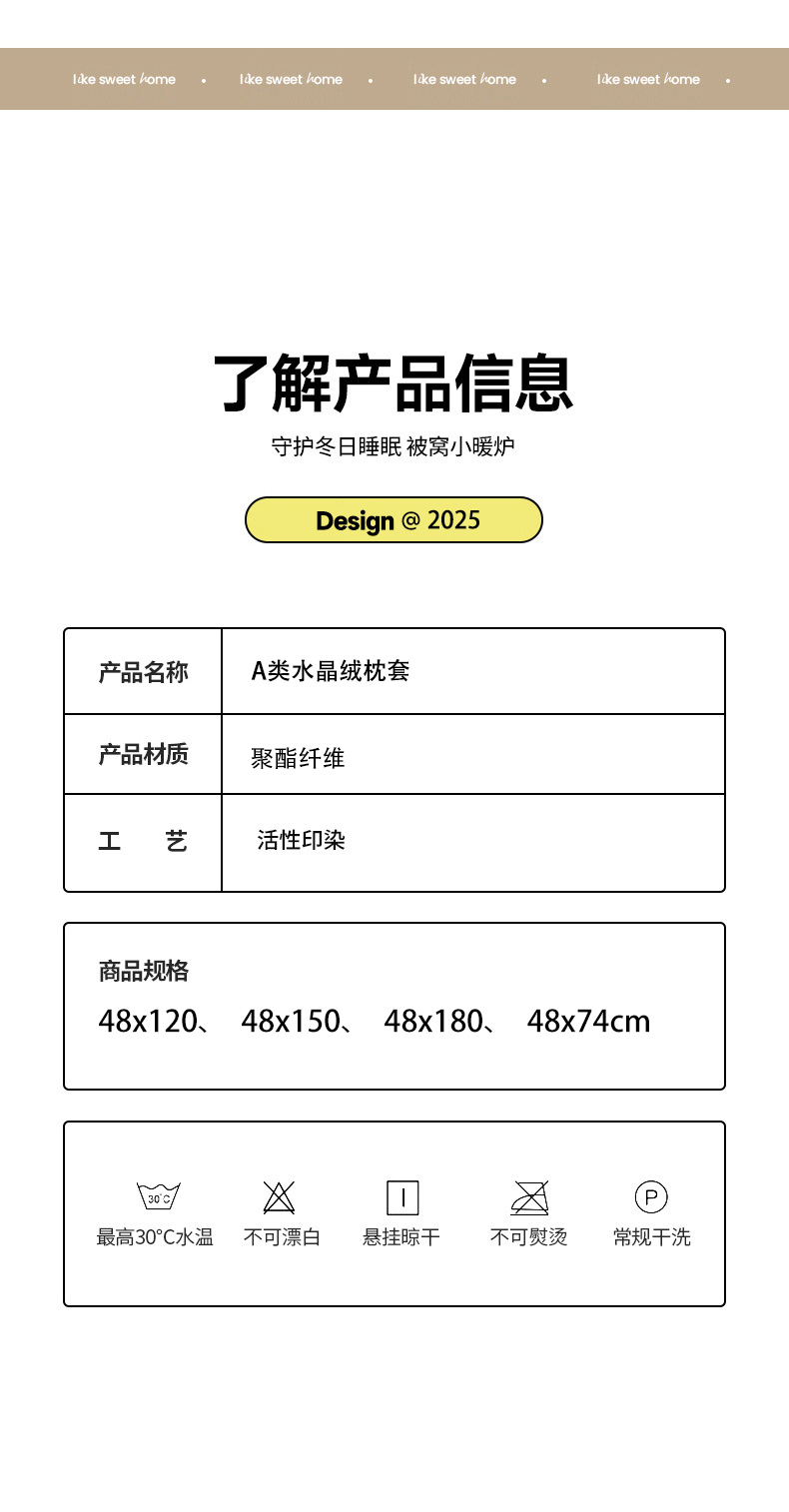 48x180cmA类水晶绒枕套/只