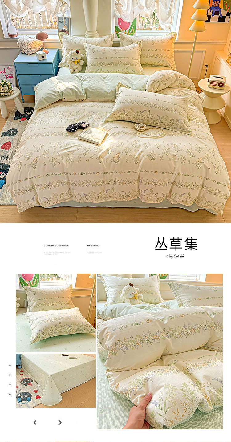 当前位置: 91家纺网 > 商品网购 > 床品套件 > 四件套 > 全棉普通四件套 > 卡普纯棉全棉四件套13070喷气床单款床笠款三件套 丛草集