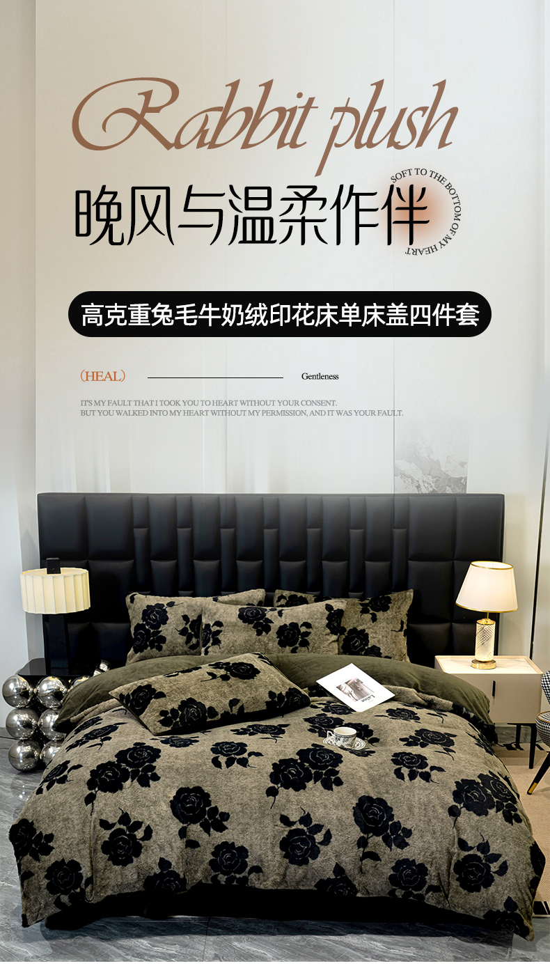 当前位置: 91家纺网 > 商品网购 > 床品套件 > 四件套 > 牛奶绒四件套 > 元禾家纺 2025新款法式美拉德高克重兔毛床盖款四件套兔毛简单款 玫瑰庄园
