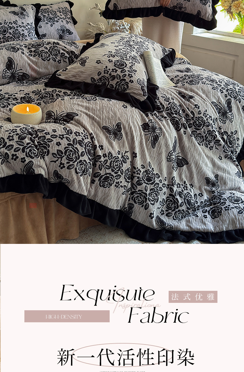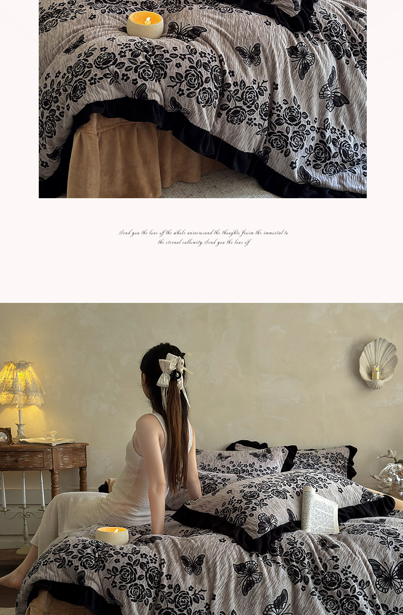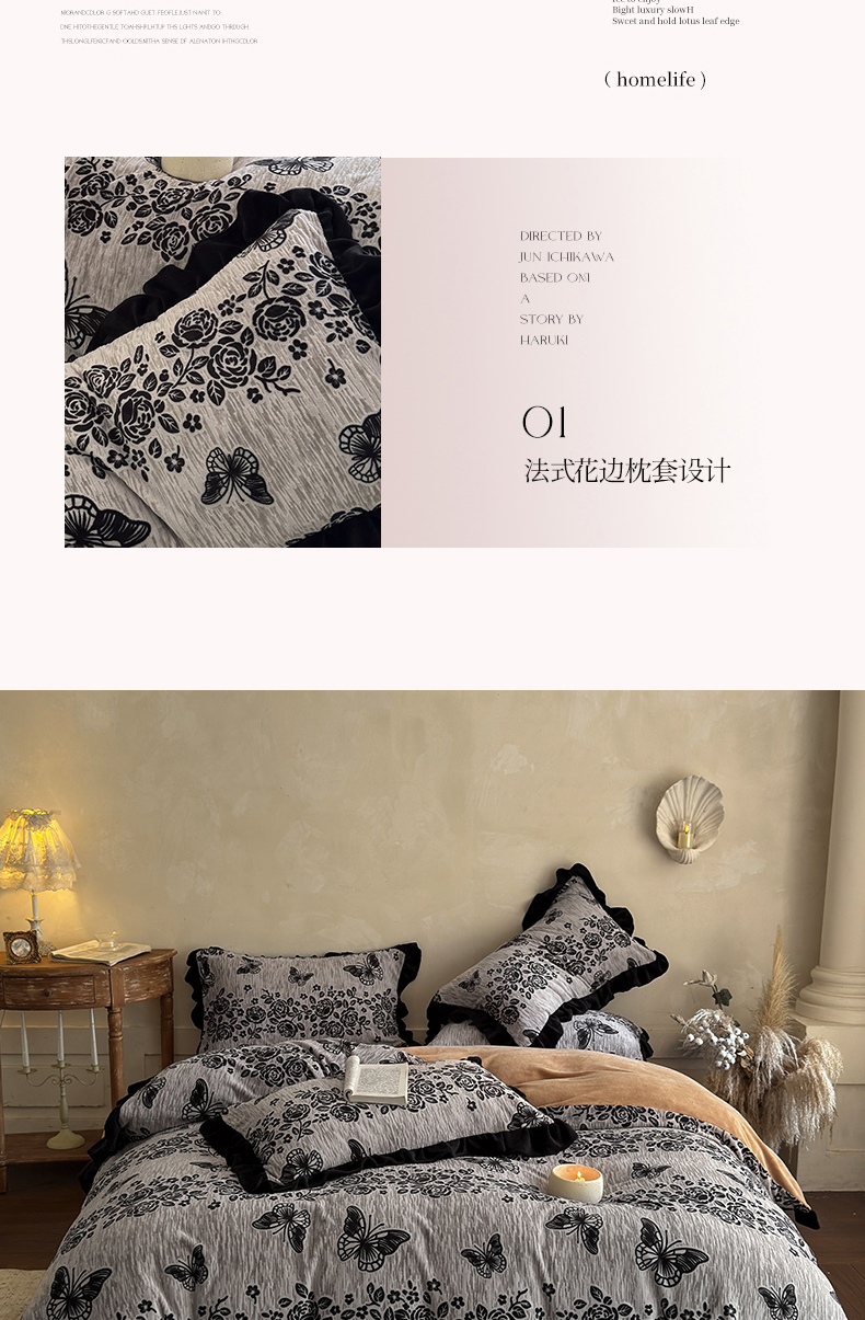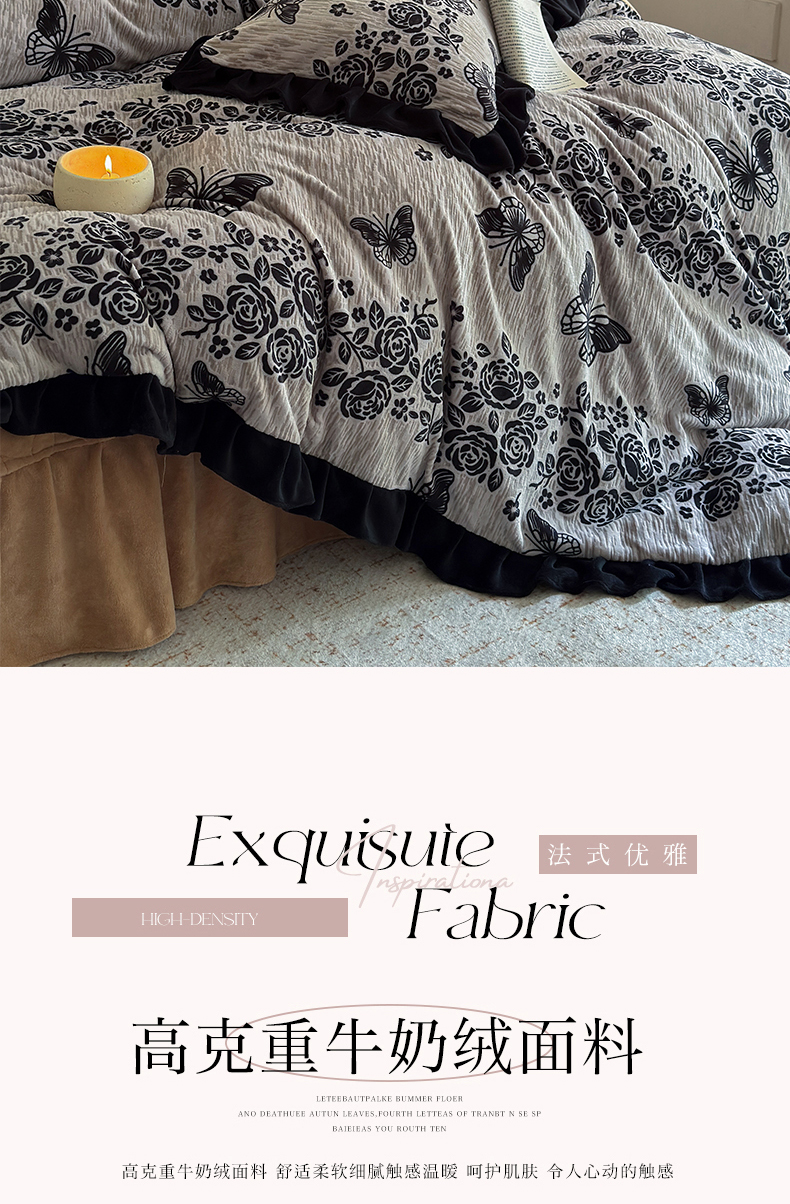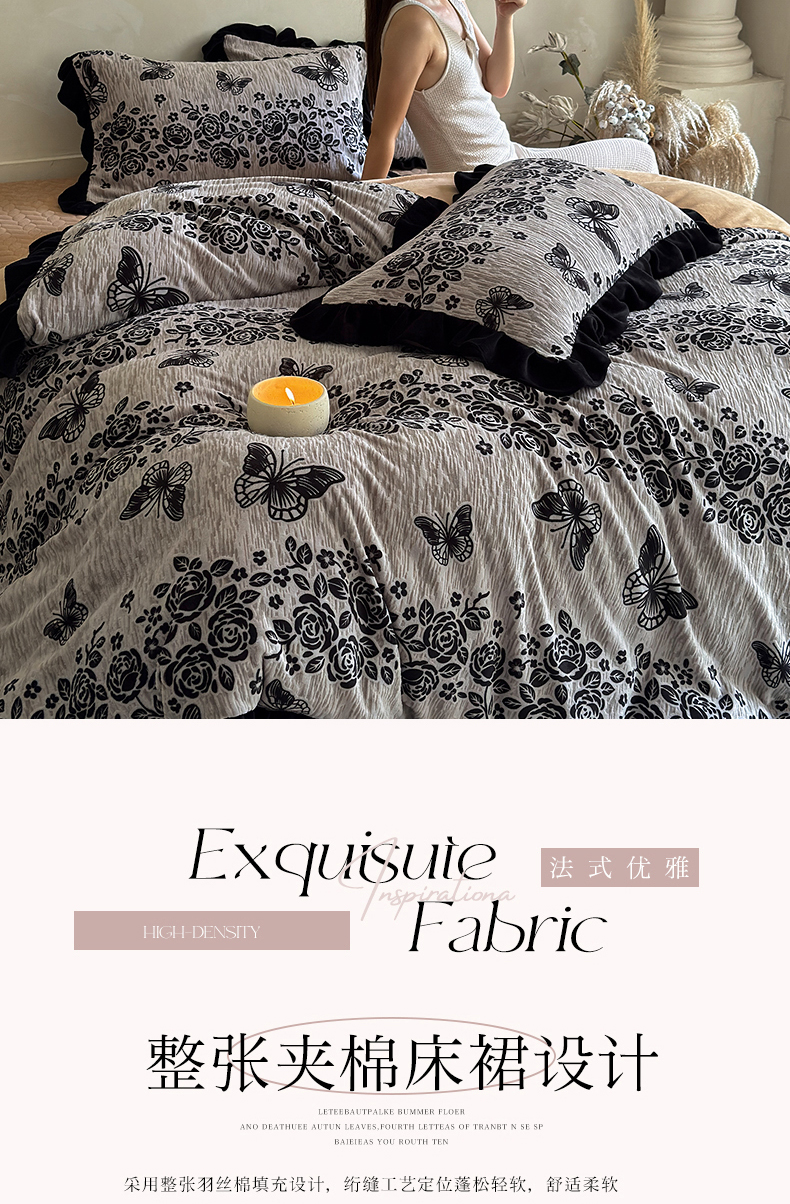 商品名称:野合家纺 2025新款加厚雕花牛奶绒床盖款四件套 蝶恋花语-灰