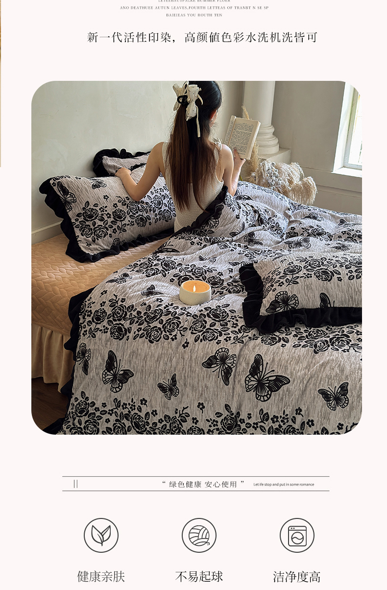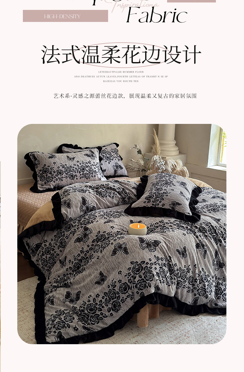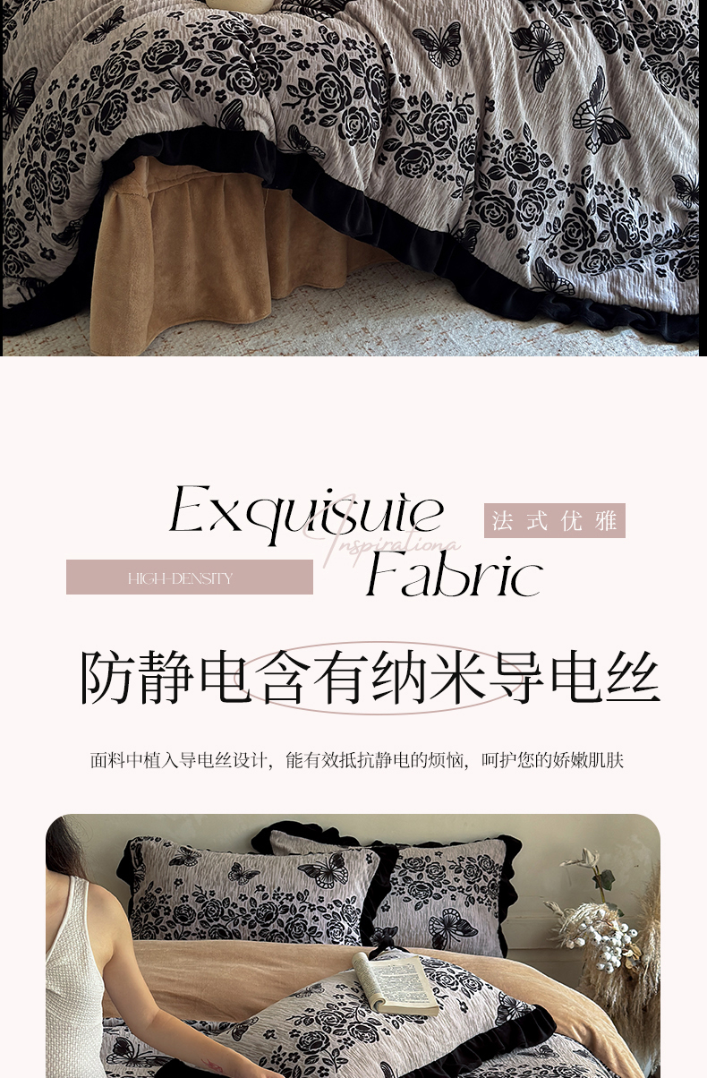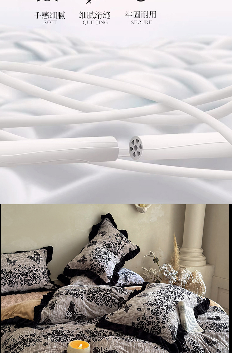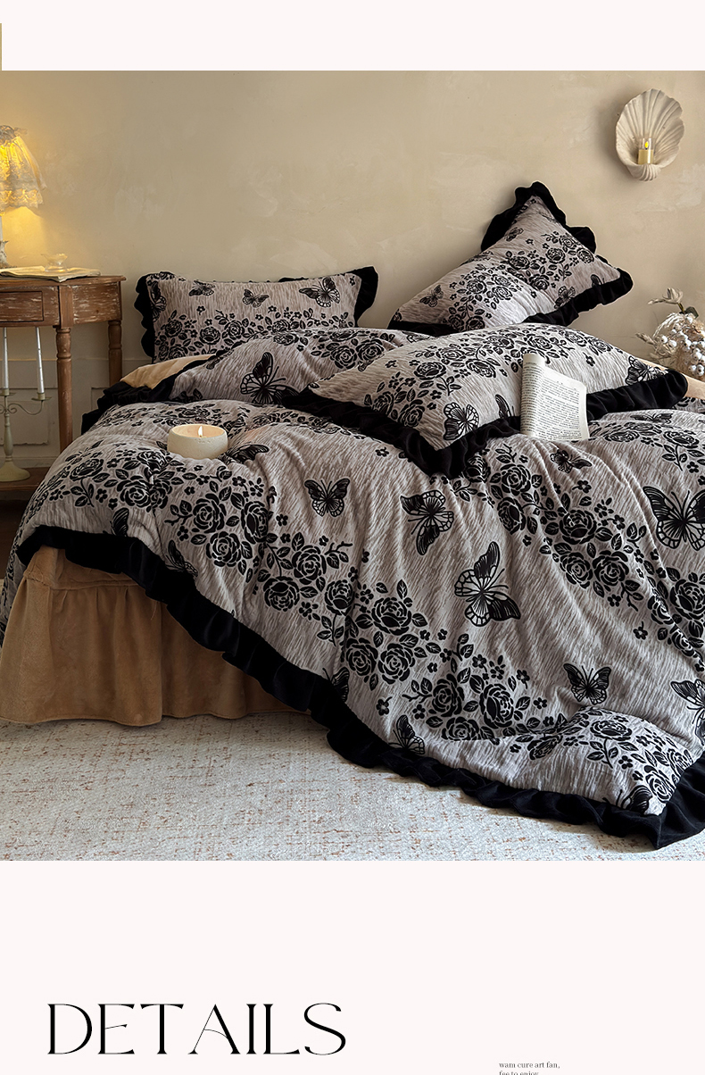 商品名称:野合家纺 2025新款加厚雕花牛奶绒床盖款四件套 蝶恋花语-灰