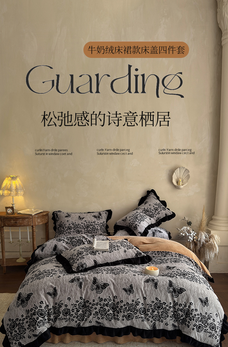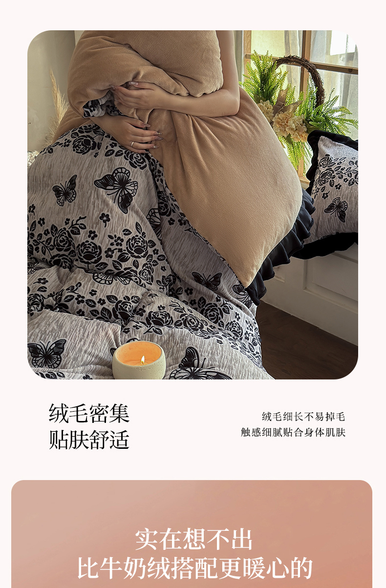 (总)野合家纺 2025新款加厚雕花牛奶绒床盖款四件套,不止玫瑰-咖,叶语悠然-绿,叶霖-灰,春和漫叶-兰,半夏风情-绿,半夏风情-粉,叶伴花香-灰,蝶恋花语-灰
