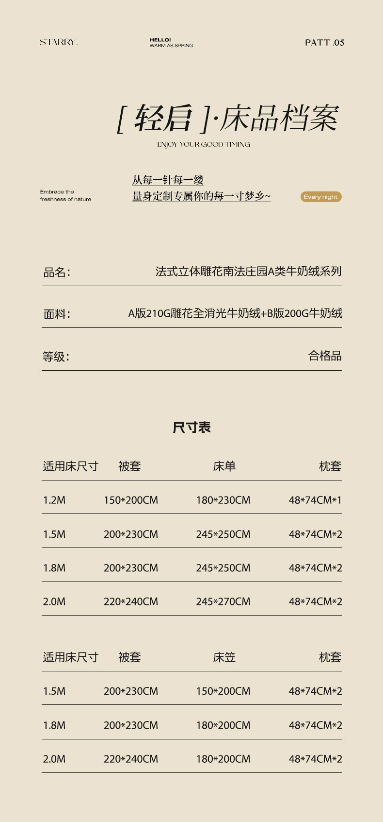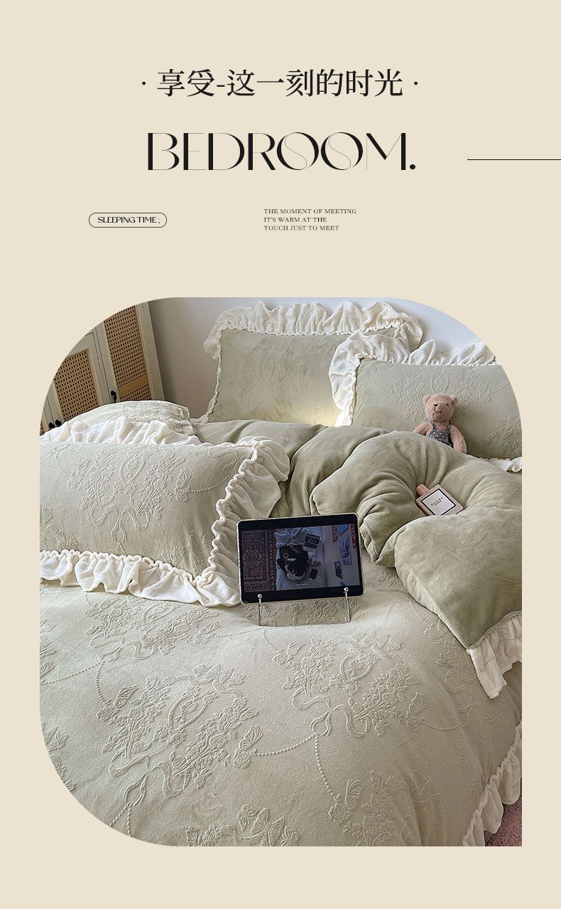 商品名称:(总)六巷胡同 2025新款法式立体雕花南法庄园A类210g全消光牛奶绒四件套