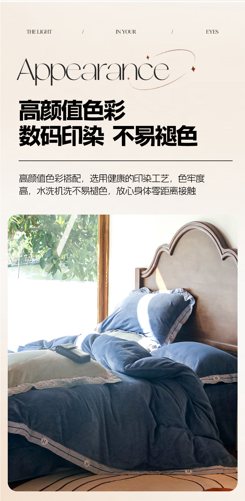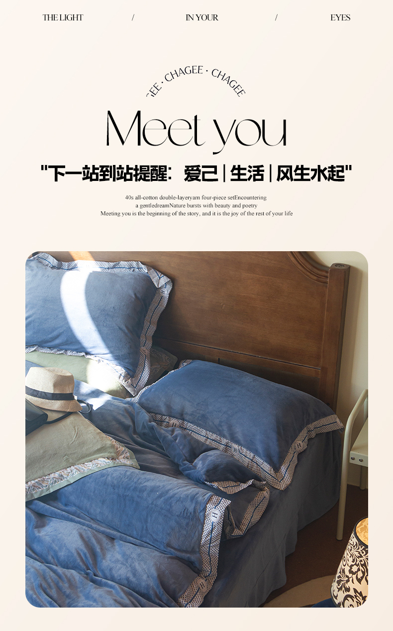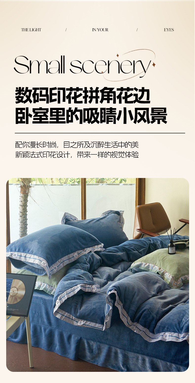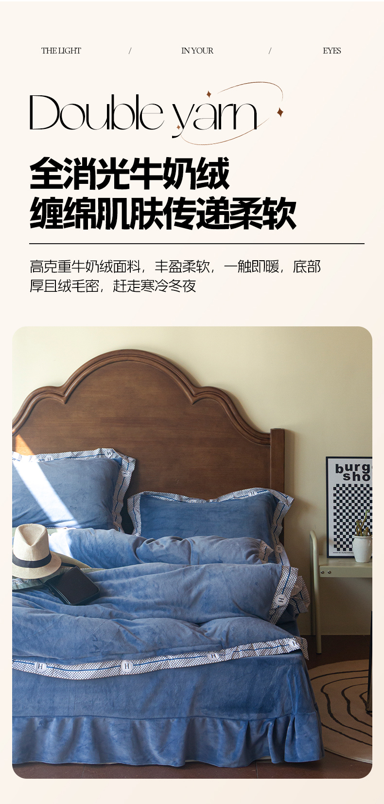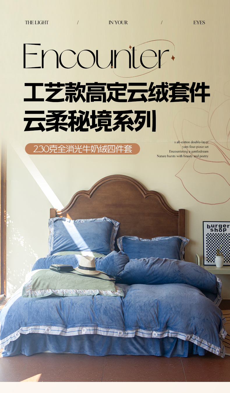 当前位置: 91家纺网 > 商品网购 > 床品套件 > 四件套 > 牛奶绒四件套 > 绒梦里 2025新款高克重全消光工艺款高定云绒牛奶绒四件套云柔秘境 云柔秘境-蓝