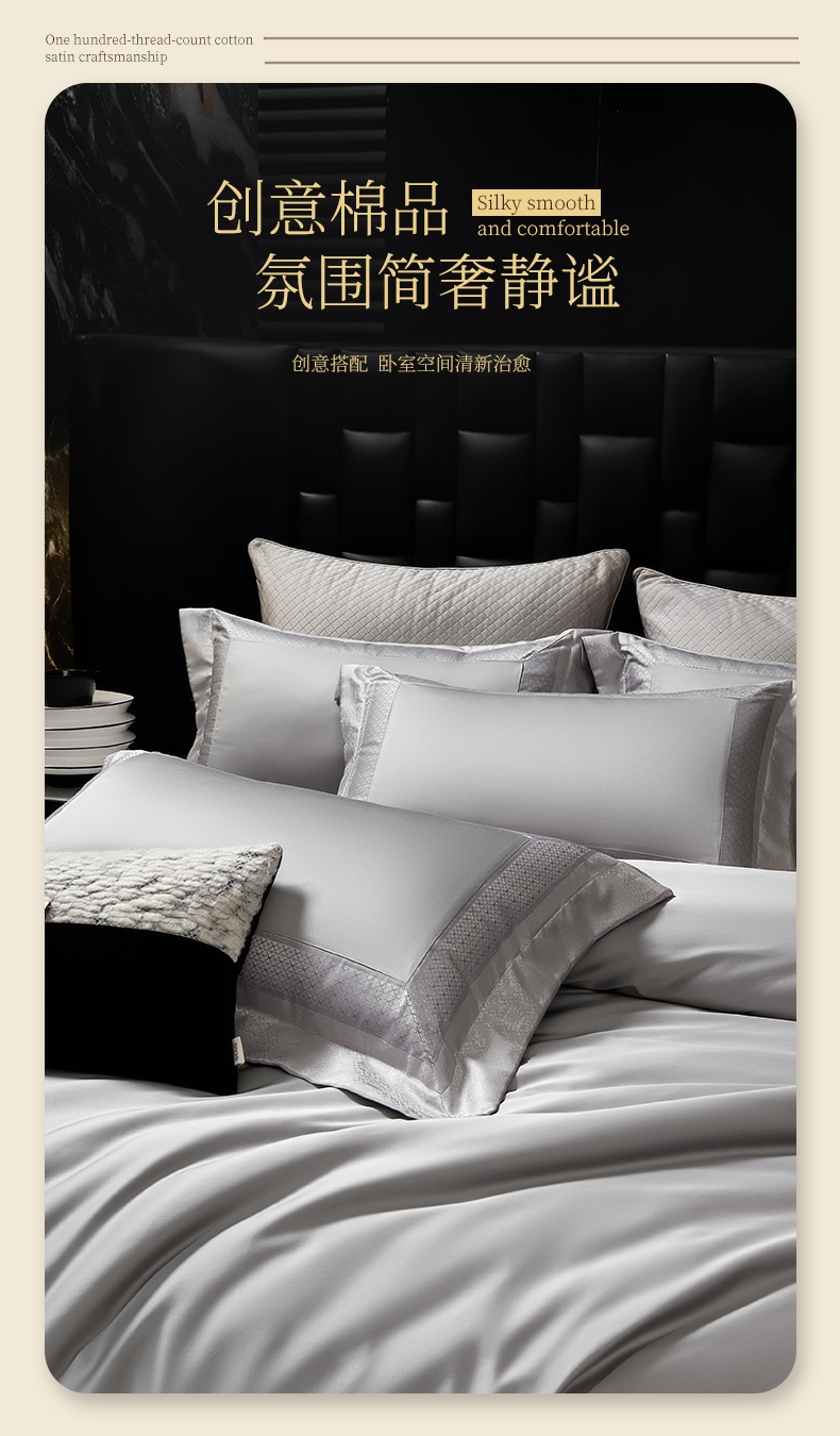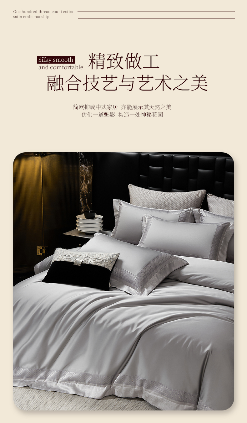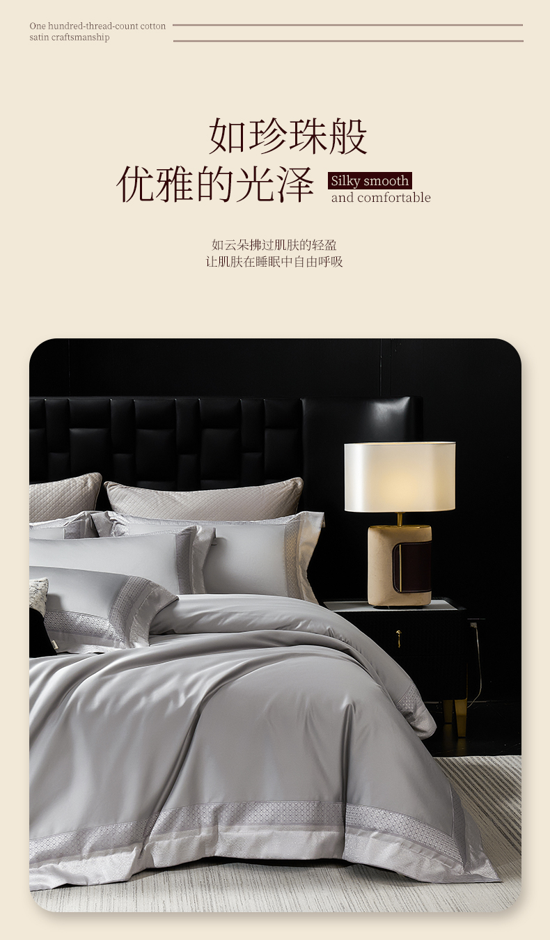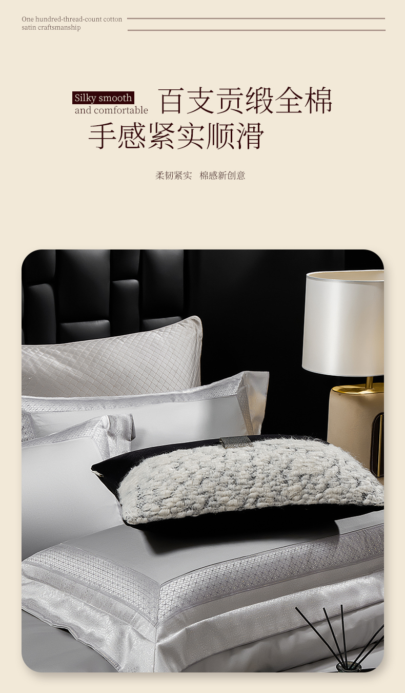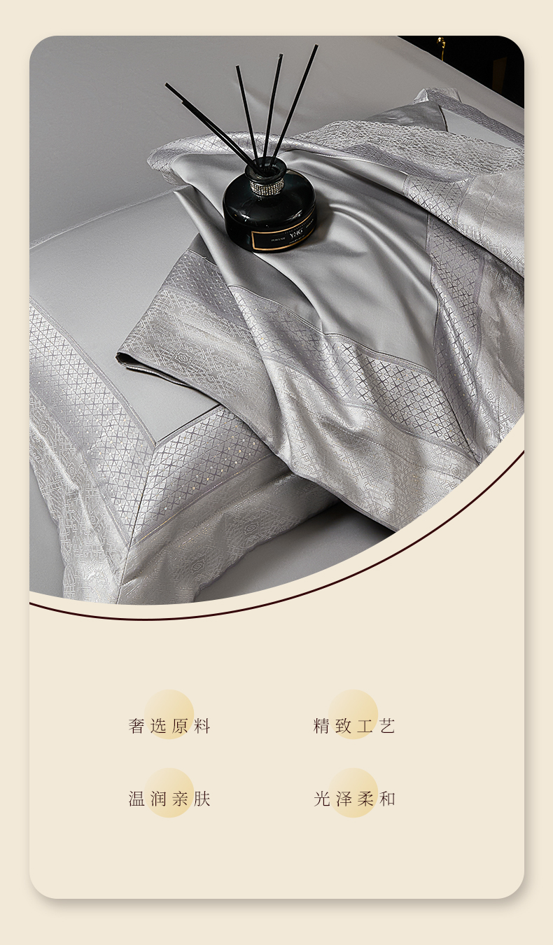 (总)元元家居(元元被业) 2025秋冬新款百支长绒棉纯棉贡缎工艺款四件套-魅影系列,魅影-布鲁灰,魅影-典雅白,魅影-香槟金,魅影-优雅粉