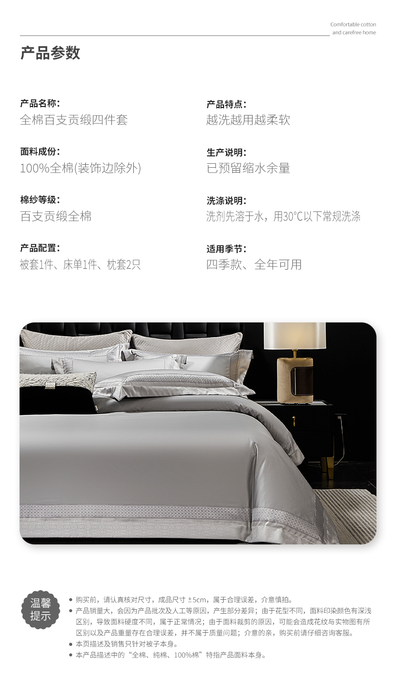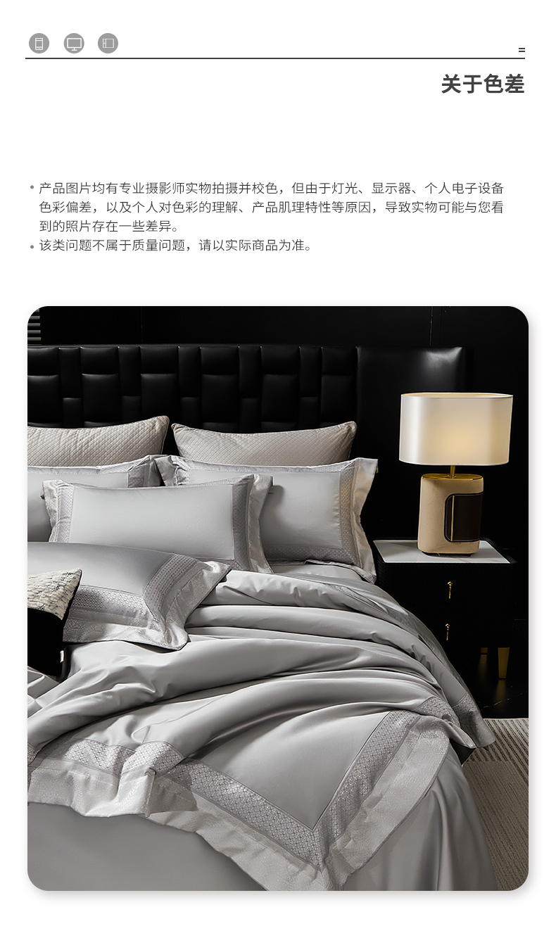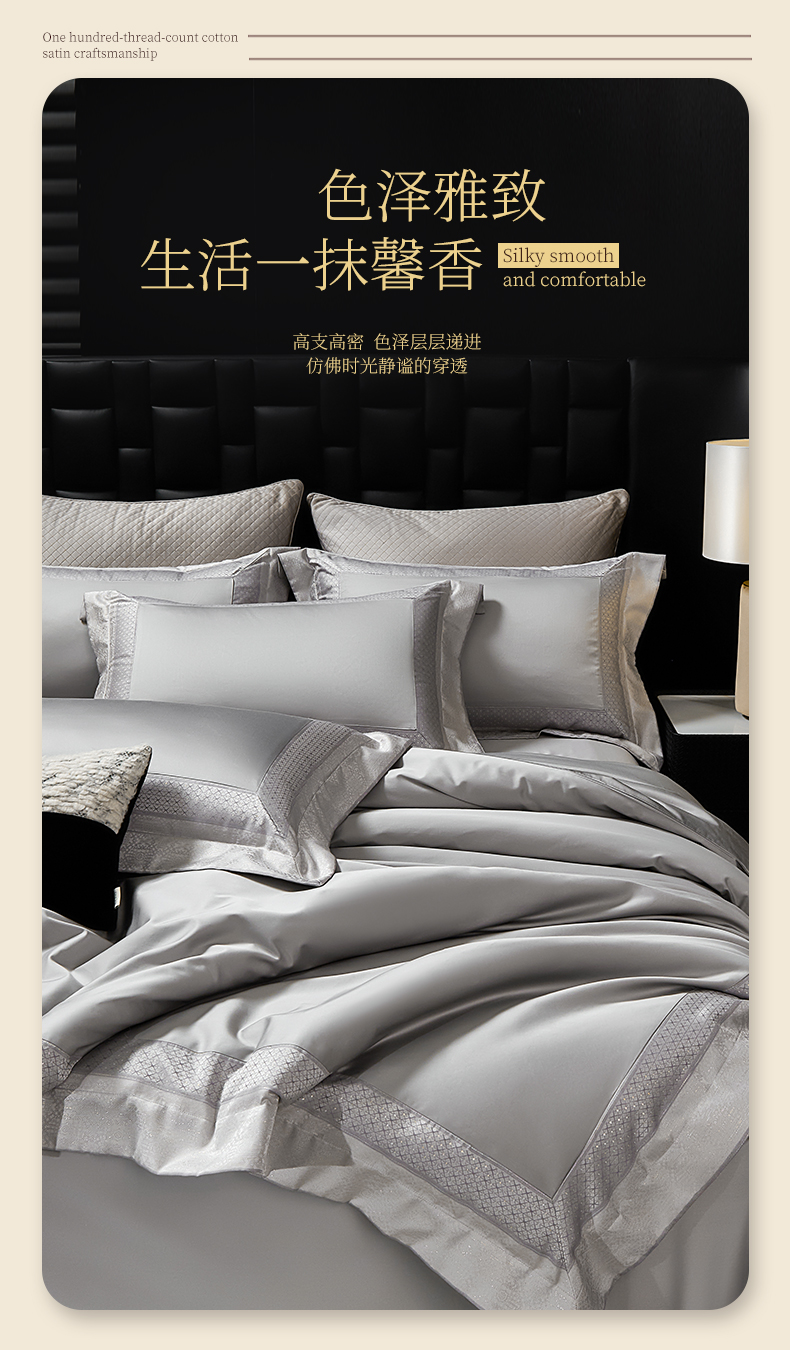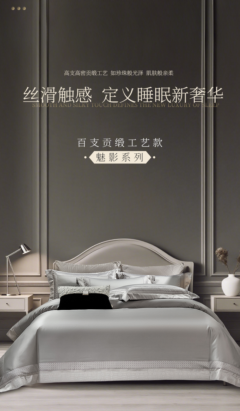 商品名称:元元家居(元元被业) 2025秋冬新款百支长绒棉纯棉贡缎工艺款四件套-魅影系列 魅影-布鲁灰