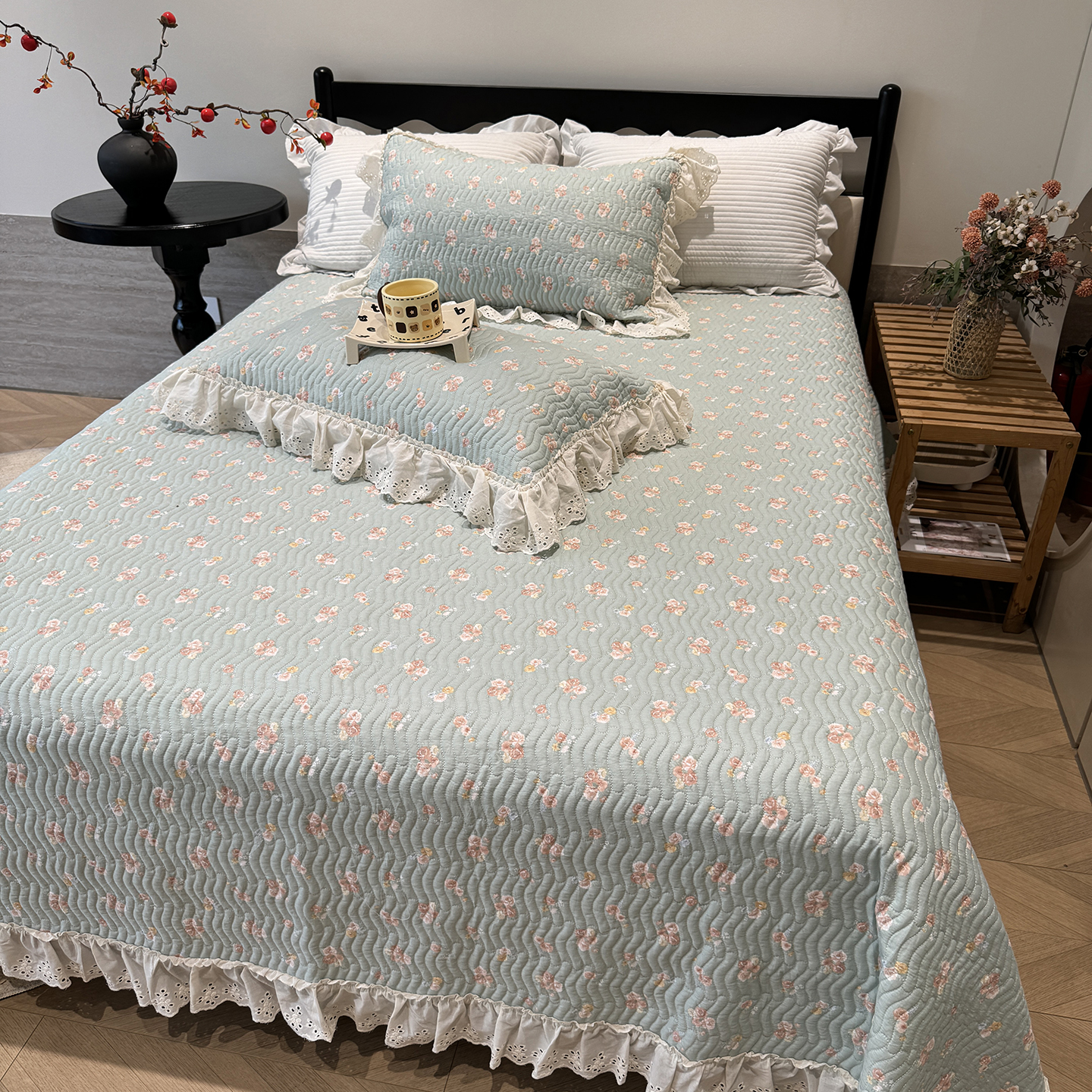 莱豫家纺 2025秋冬新款纯棉床盖三件套可配同款四季被同款被套 千野绿
