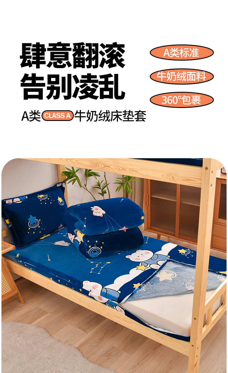 (总)居尚家纺 2025新款牛奶绒学生三件套床褥套床笠三件套,可爱熊,灰兰格,一鹿有你-灰,晚安,绅士灰,绅士格,极简主义,欢乐兔,嘟嘟熊,草莓熊