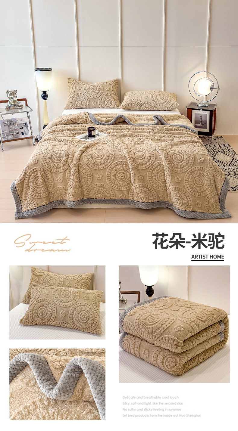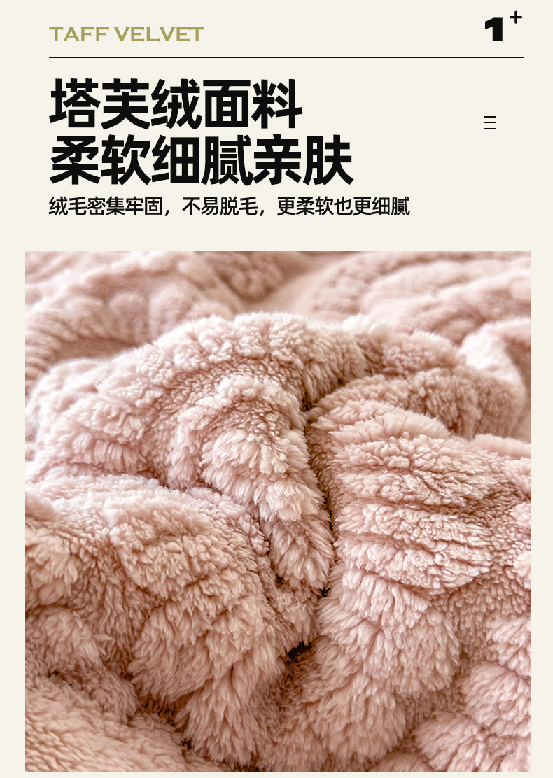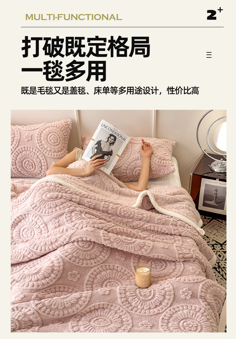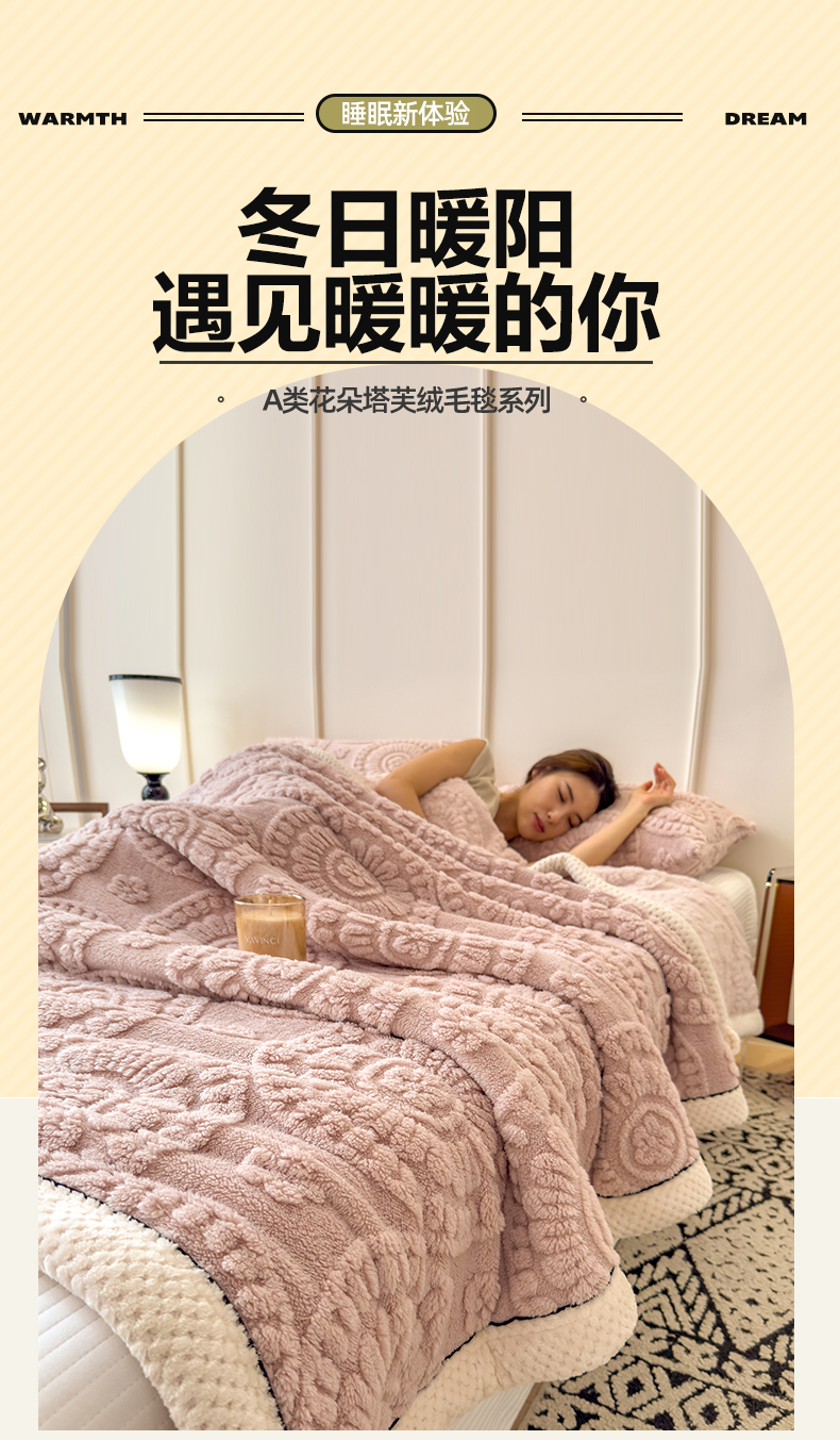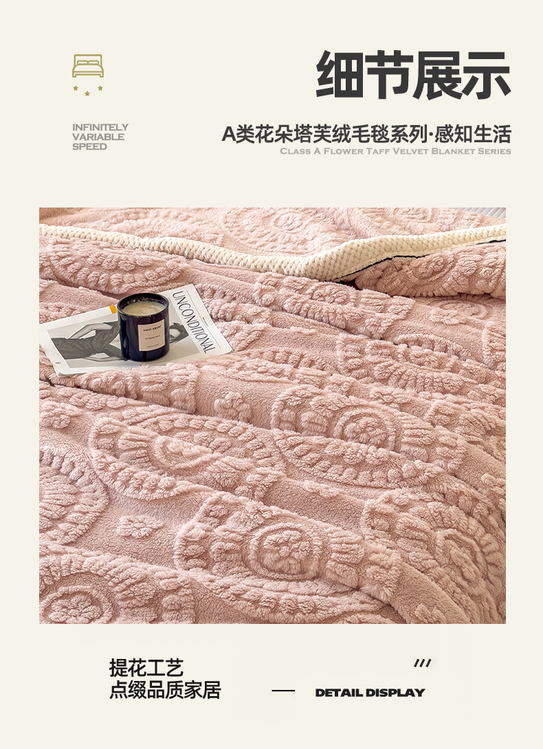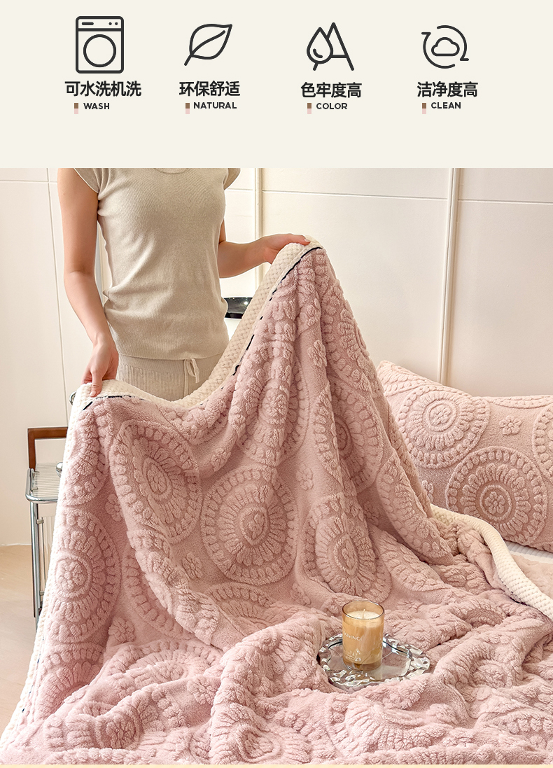 商品名称:莱家富 2026新款新款A类塔芙绒雕花双面毛毯毯子-花朵(可提供跨境压缩) 花朵-粉玉