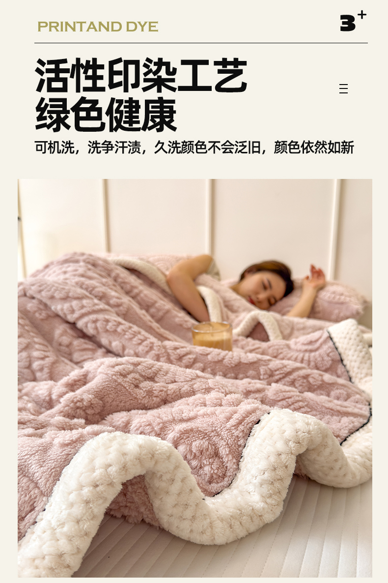 (总)莱家富 2026新款双层加厚阳离子提花毛毯羊羔绒毛毯盖毯办公室午休毯,浔彩-豆沙,浔彩-果绿,浔彩-灰色,浔彩-奶白,浔彩-天蓝,浔彩-驼色