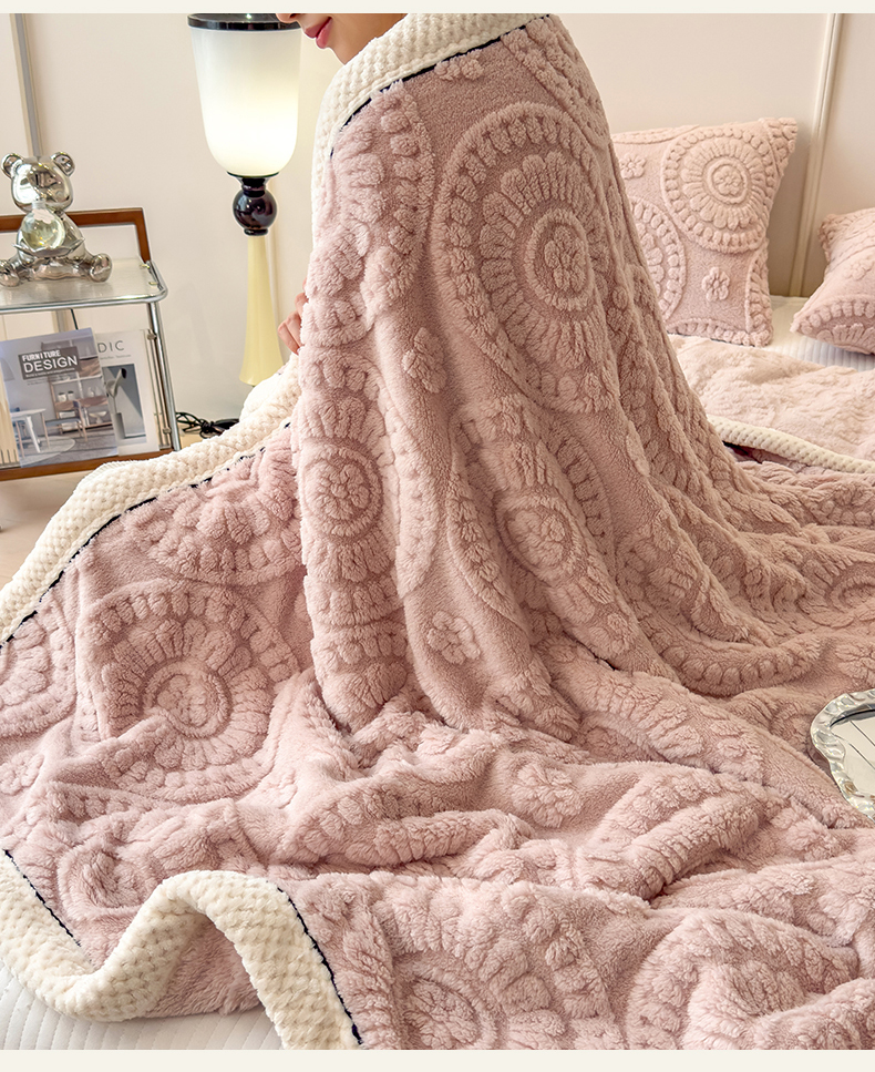 莱家富 2026新款新款A类塔芙绒雕花双面毛毯毯子-花朵(可提供跨境压缩) 花朵-粉玉