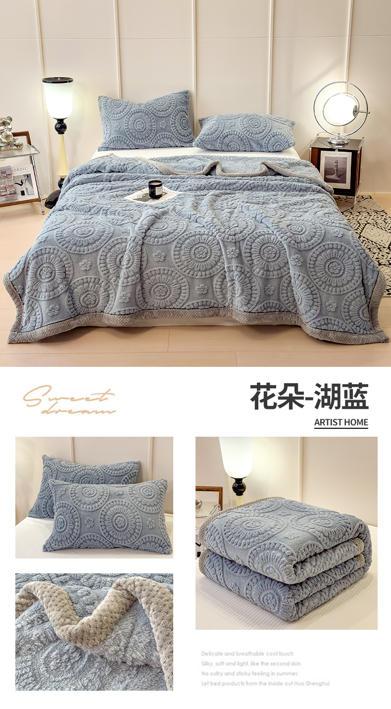 (总)莱家富 2026新款加厚双层复合毯舒棉绒剪花毛毯,兰色,绿色,米色,深灰色,樱花粉,紫色