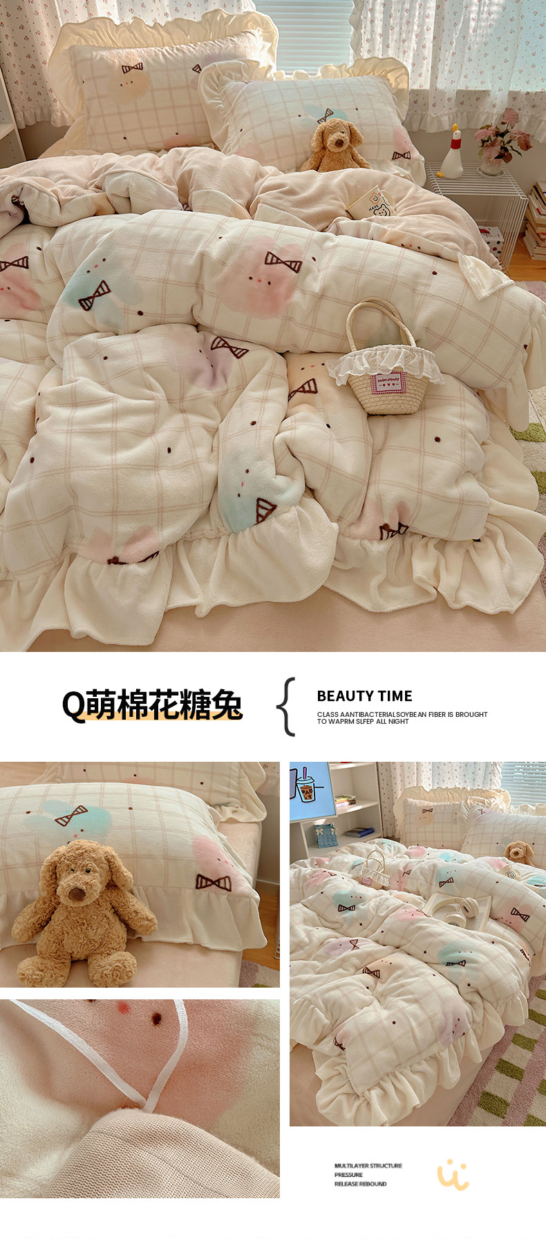 当前位置: 91家纺网 > 商品网购 > 床品套件 > 四件套 > 牛奶绒四件套 > 轻奢坊 2025新款牛奶绒ins博主风卡通印花花边四件套 Q萌碎花小兔