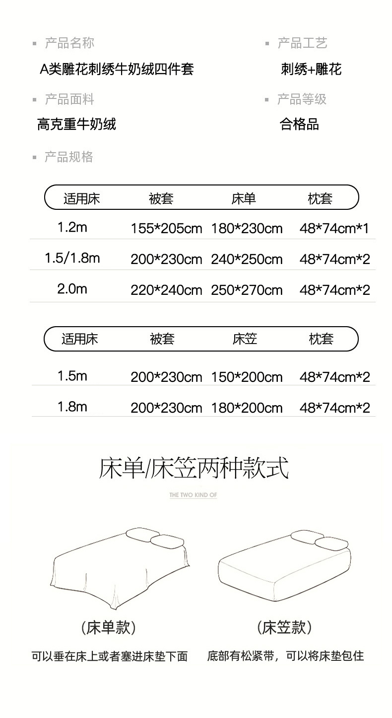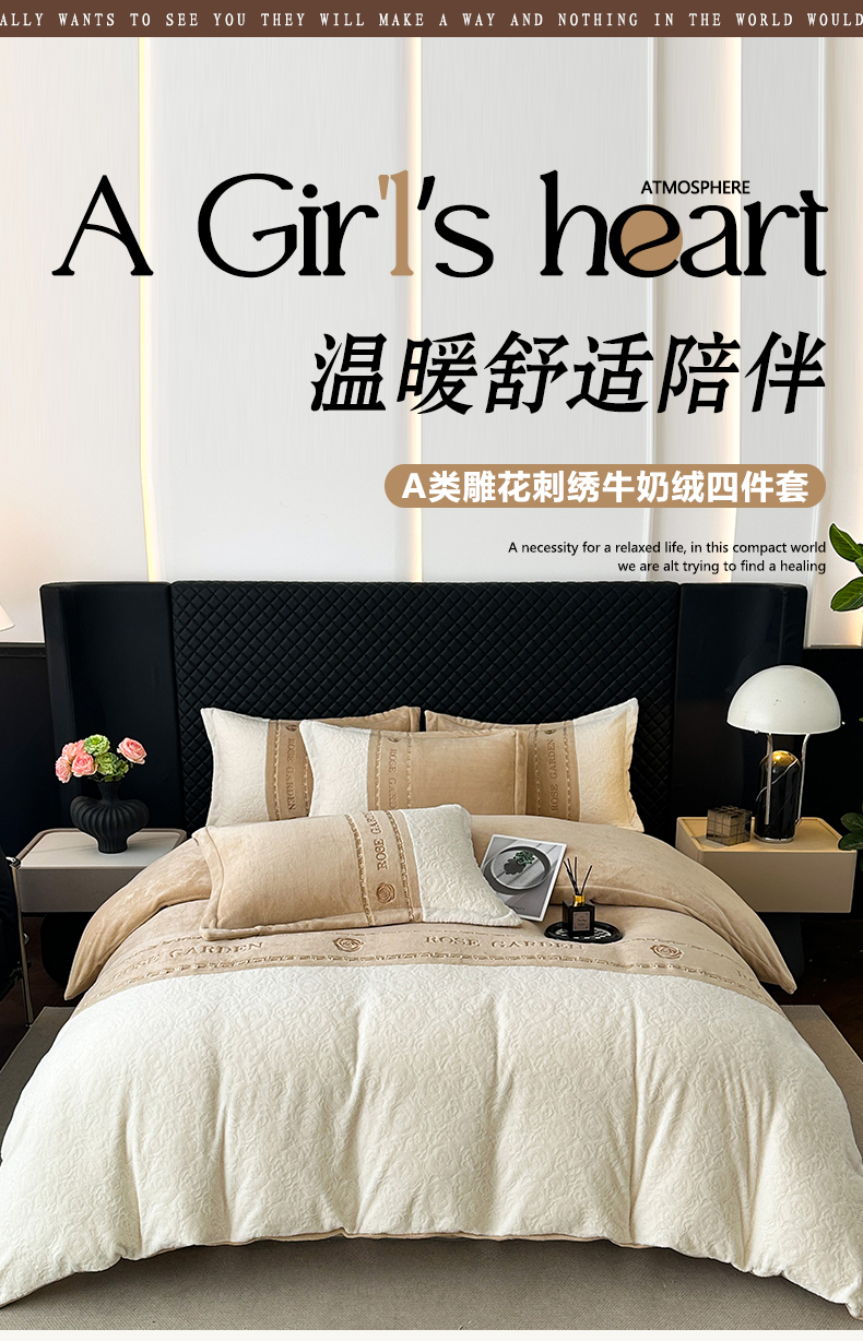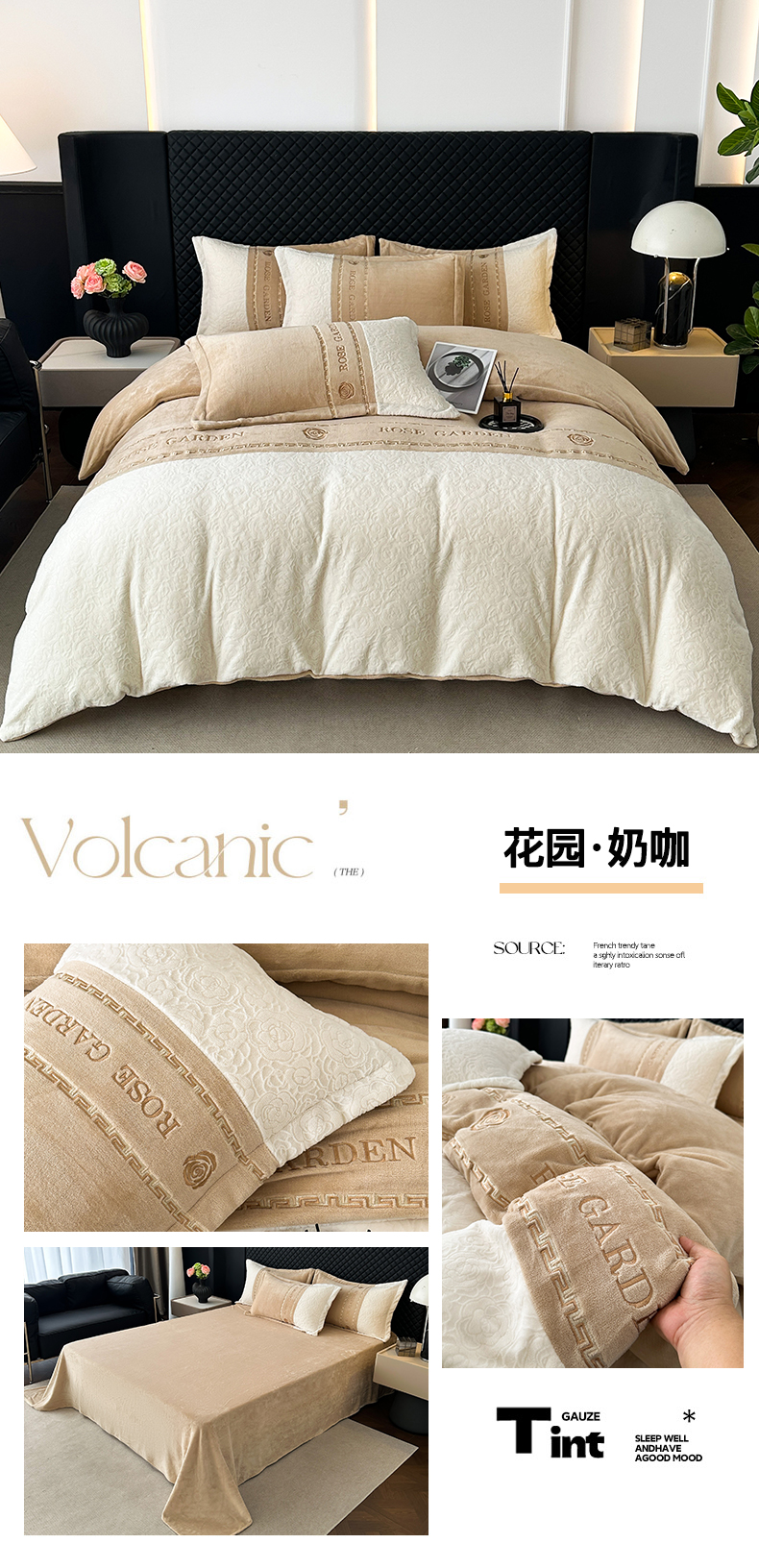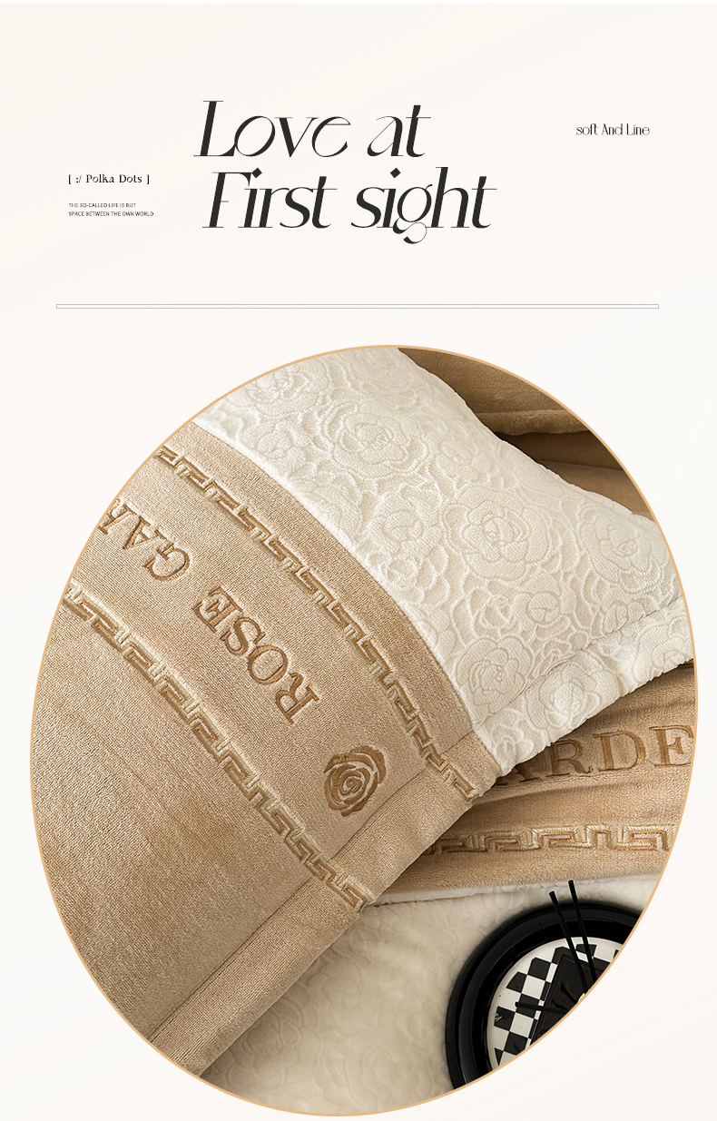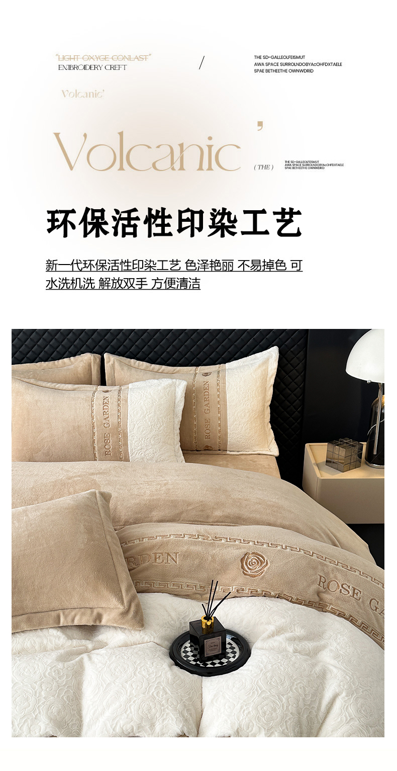 商品名称:沐棉家居 2025新款字母刺绣雕花牛奶绒四件套 花园·奶咖